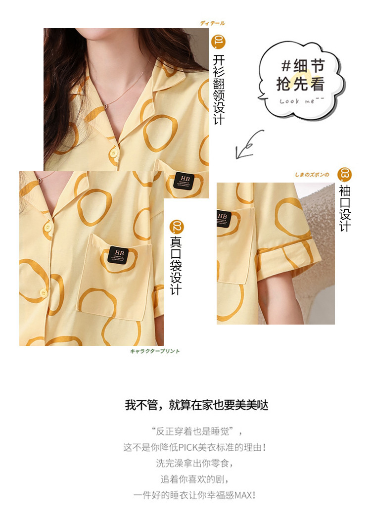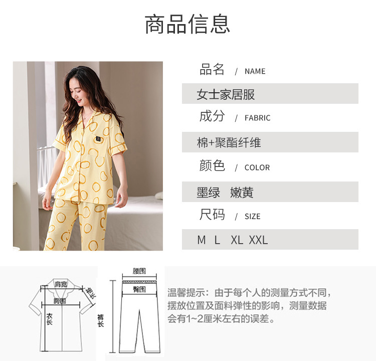 商品名称:【棉感亲肤】春夏简约舒适居家短袖长裤可外穿女士睡衣家居服套装 156254