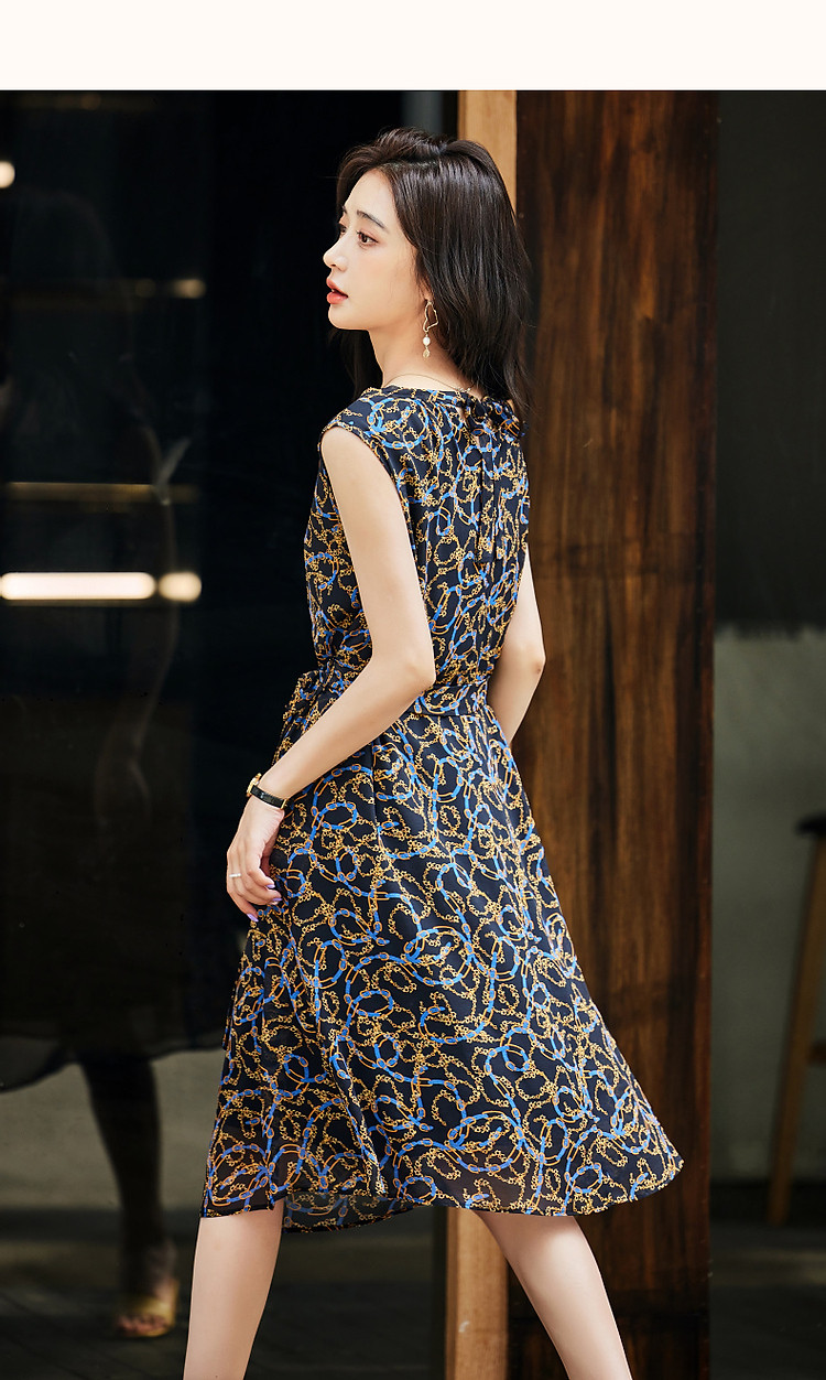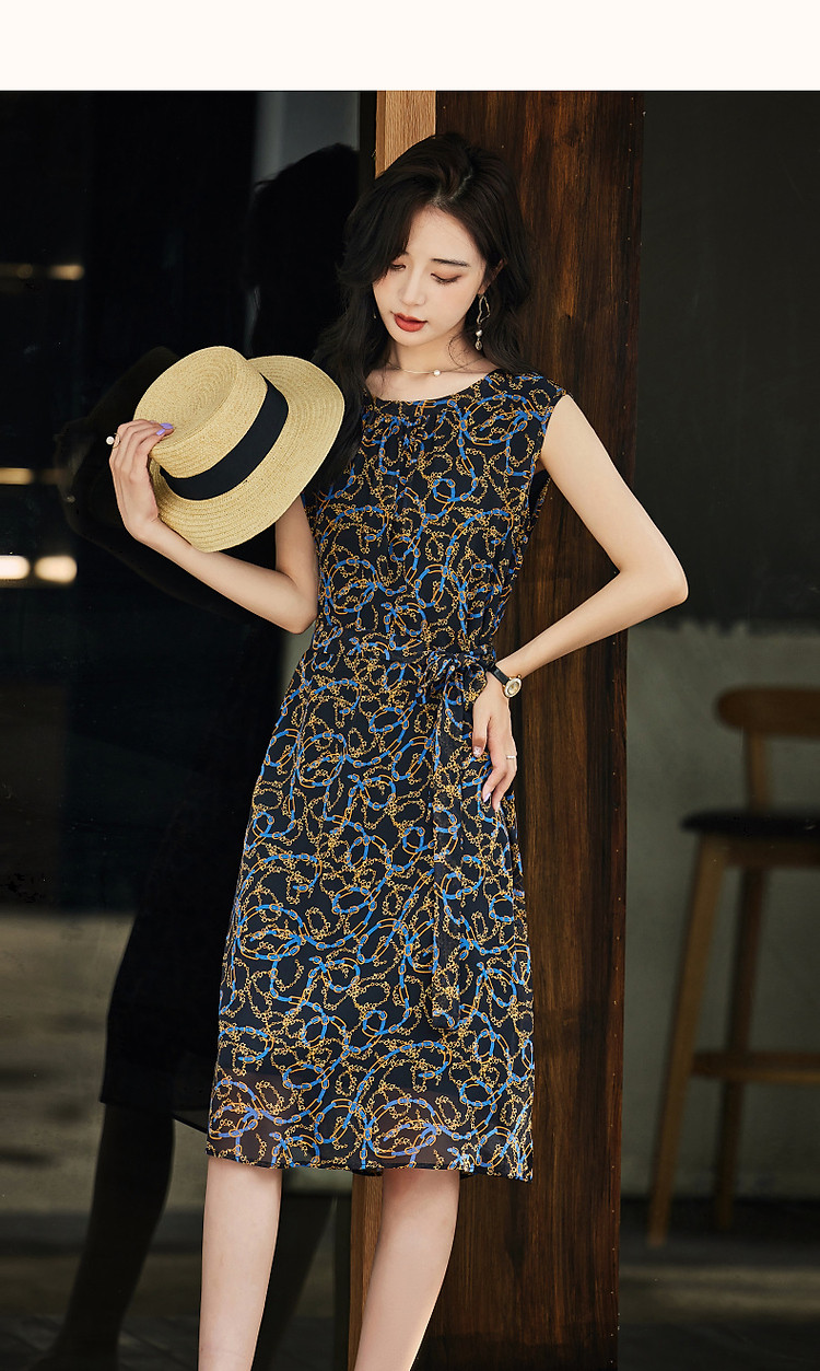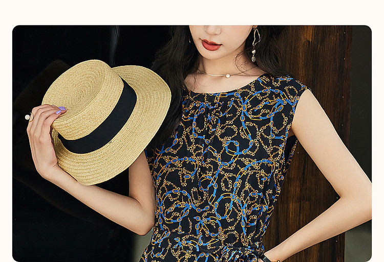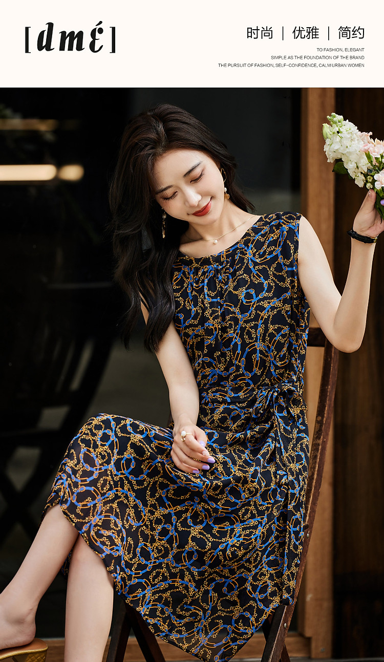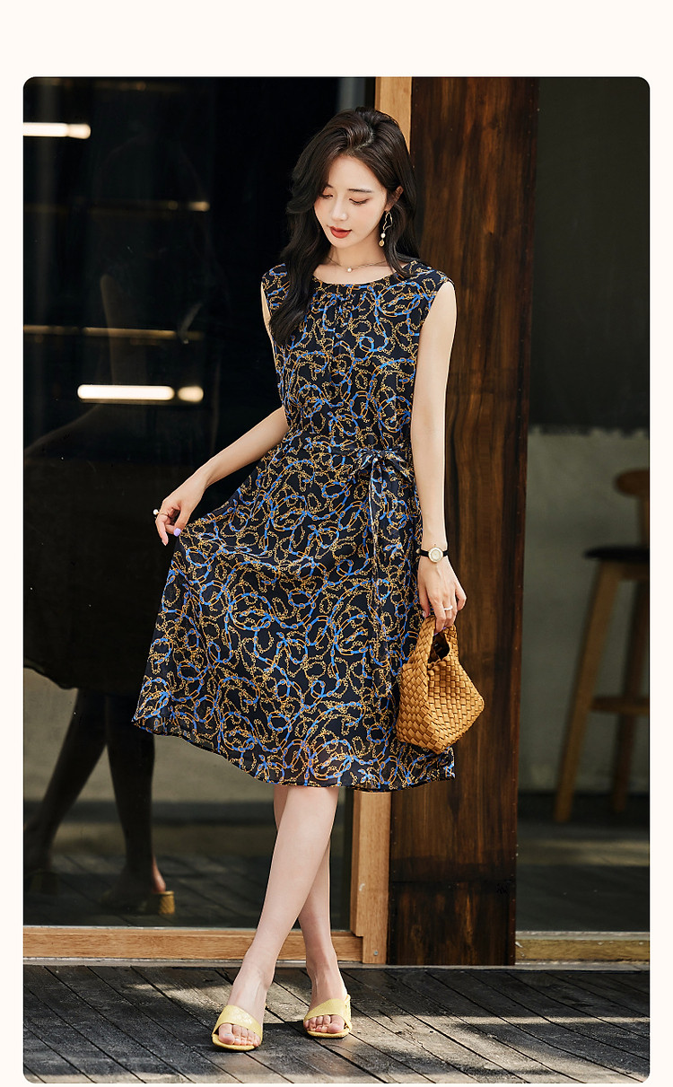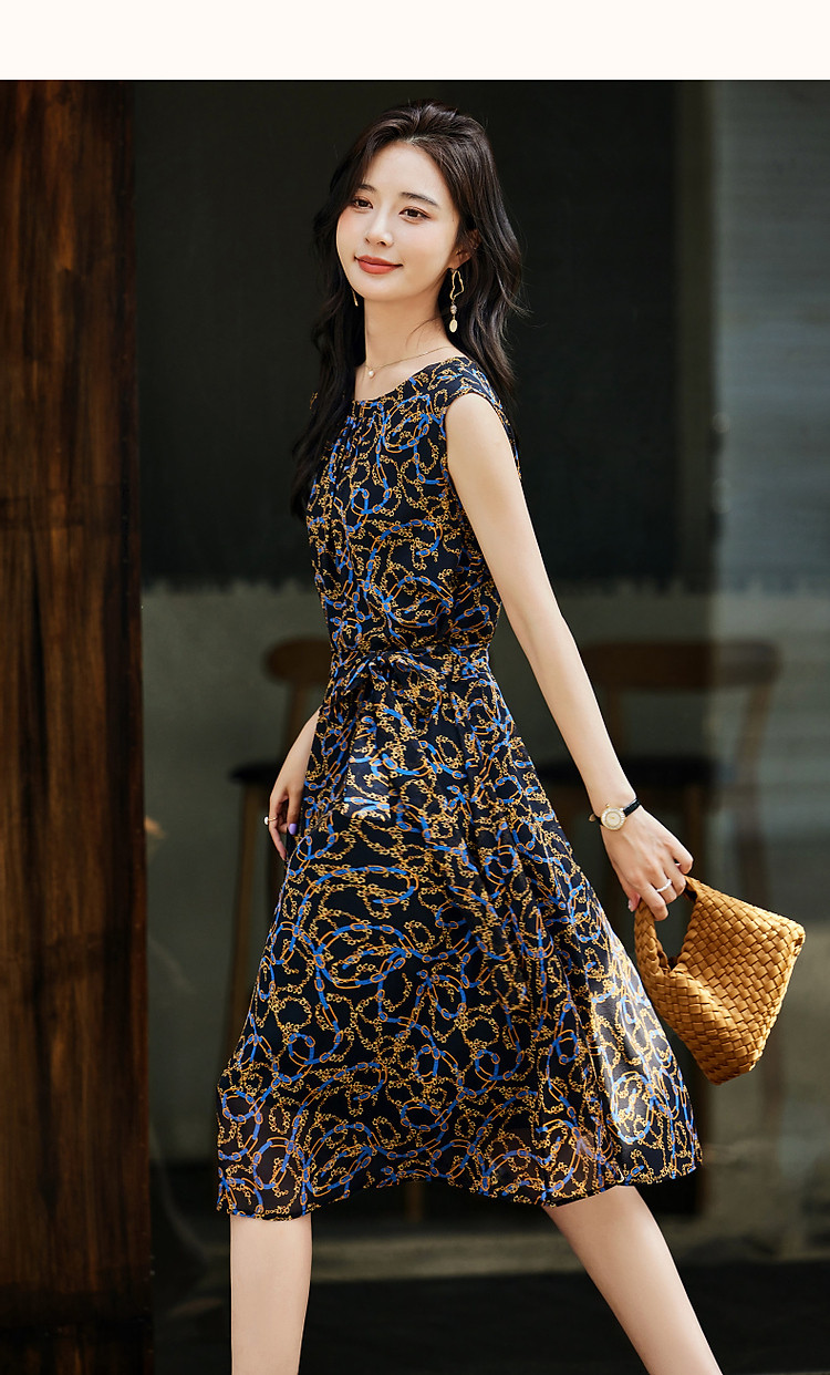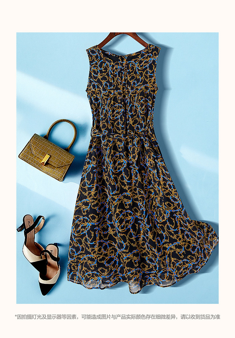 【名媛千金】春圆领桑蚕丝真丝碎花仙女裙腰带连衣裙女 734401