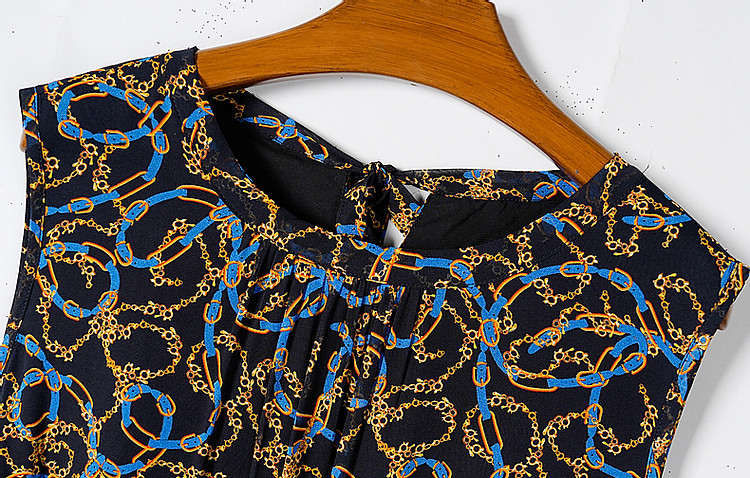 【不规则裙摆】2024春夏简约休闲圆领短袖金属装饰拼接连衣裙 777873