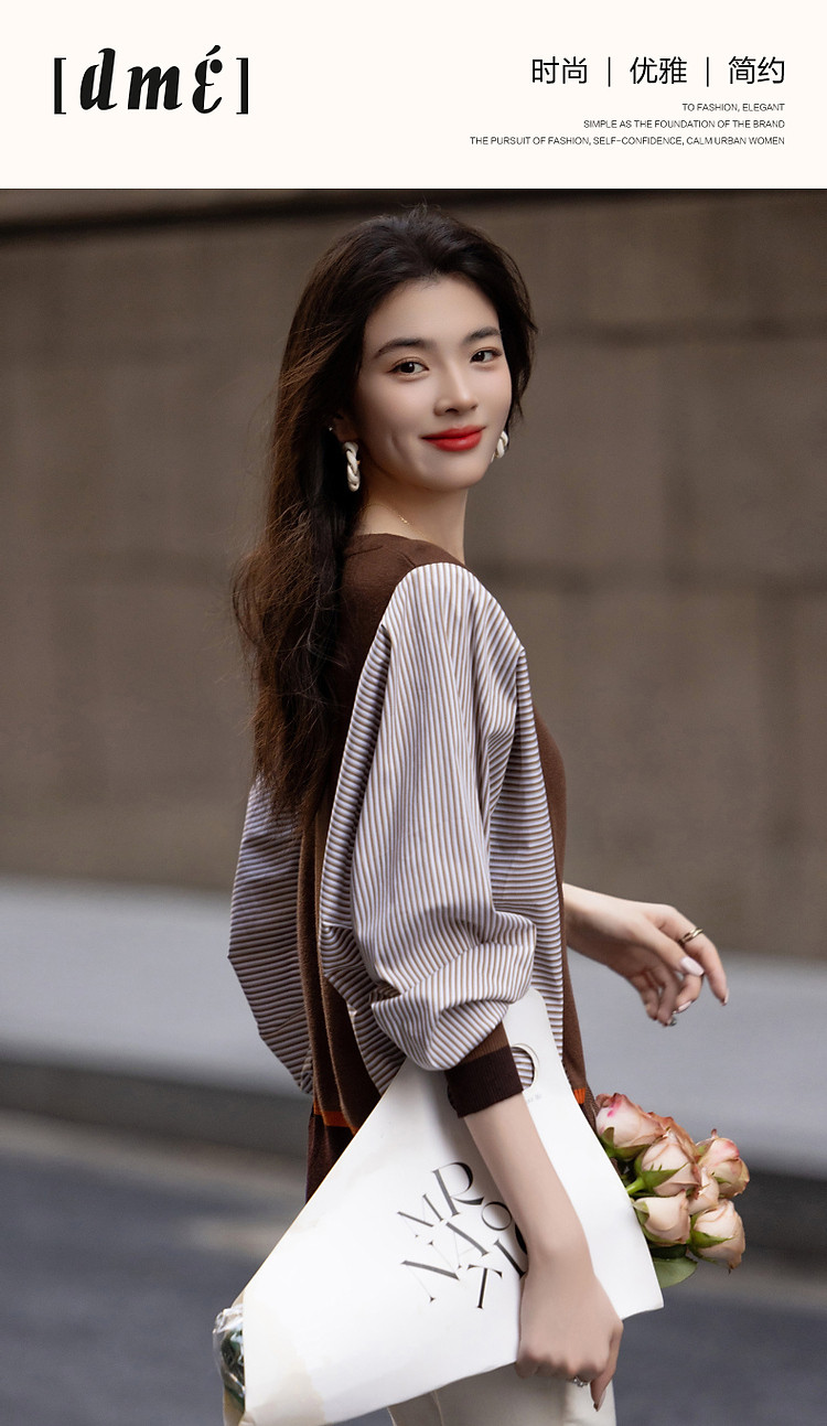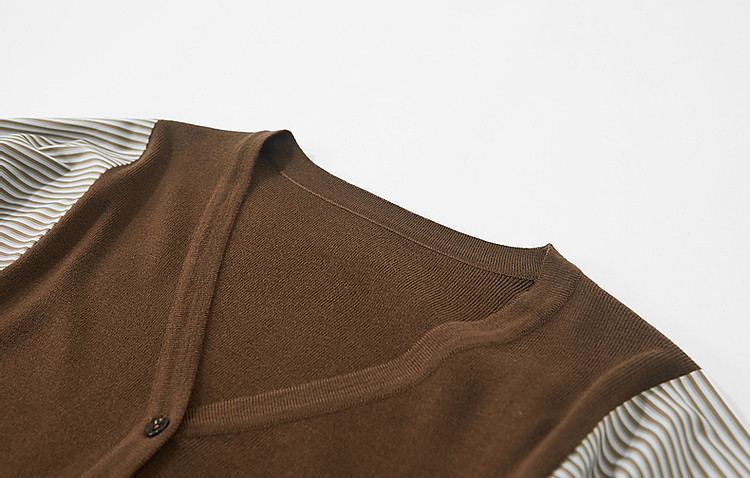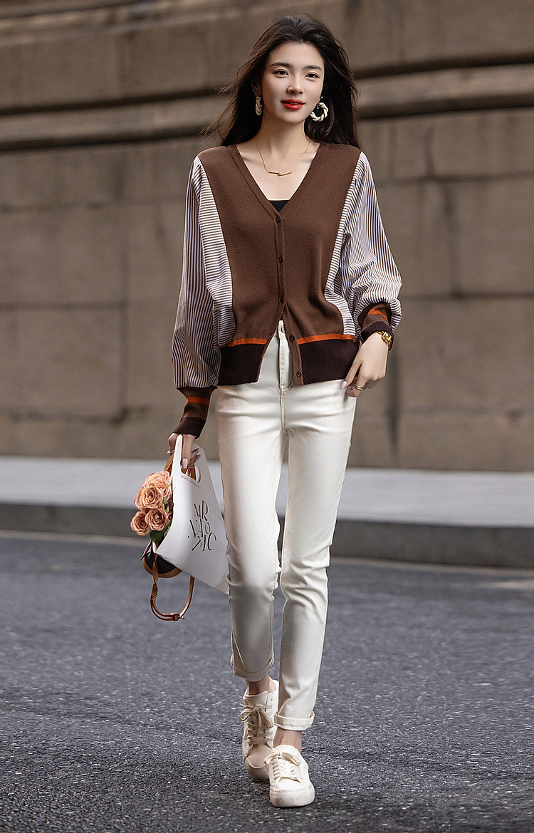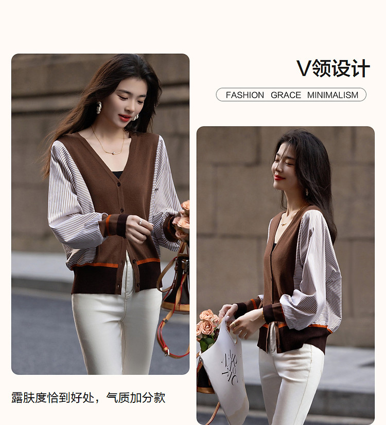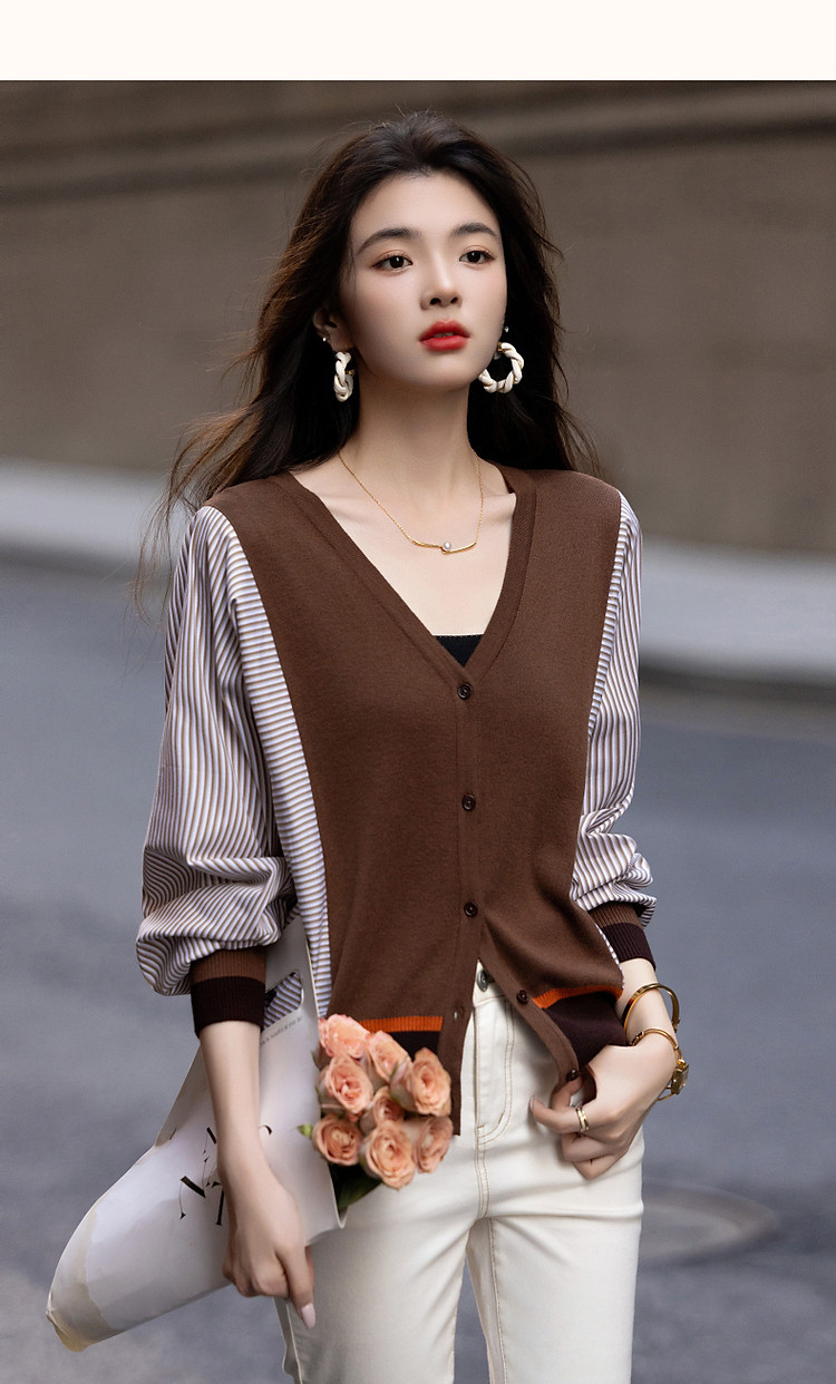 商品名称:【时髦蝙蝠袖拼接开衫】春秋通勤V领线衫舒适不挑人撞色针织衫 206145
