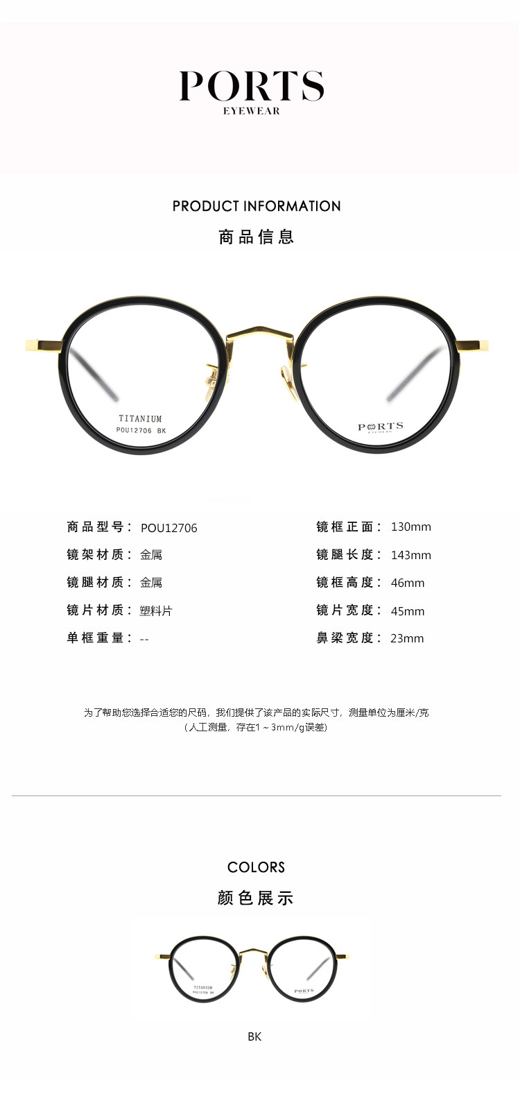 商品名称:PORTS日常女款时尚休闲金属钛眼镜架POU12706 747850