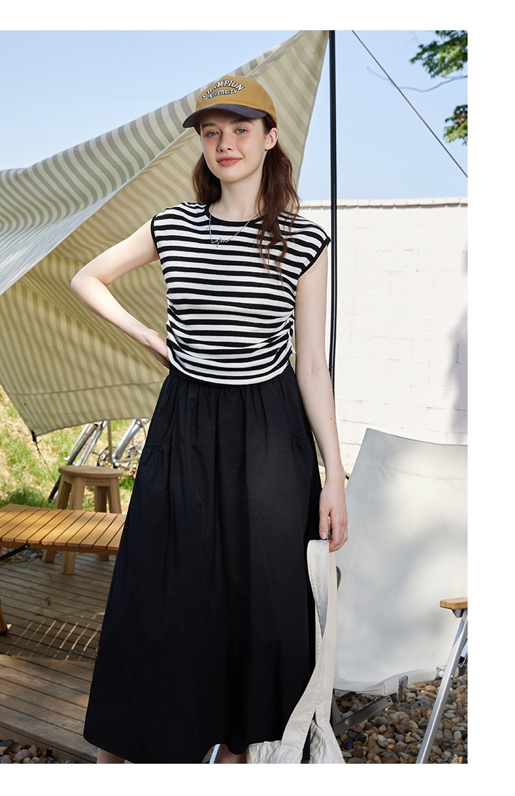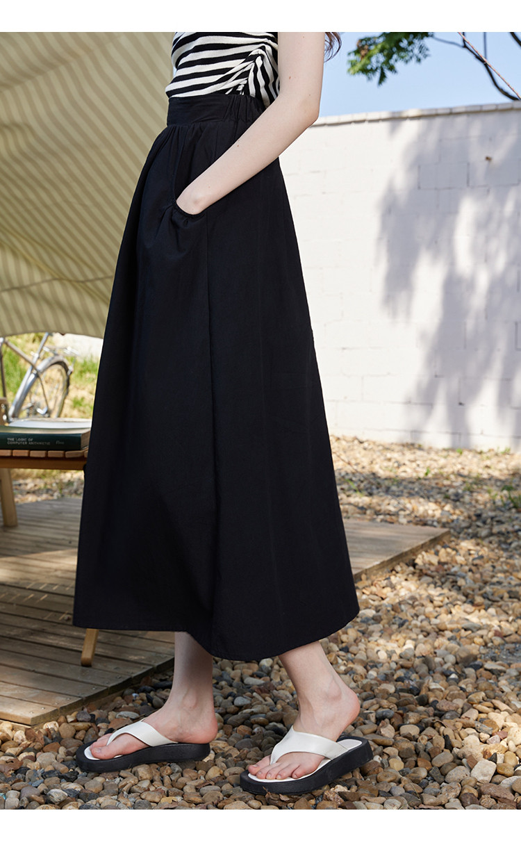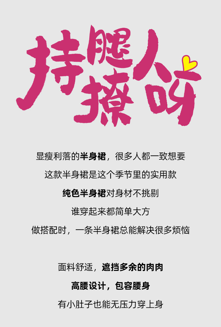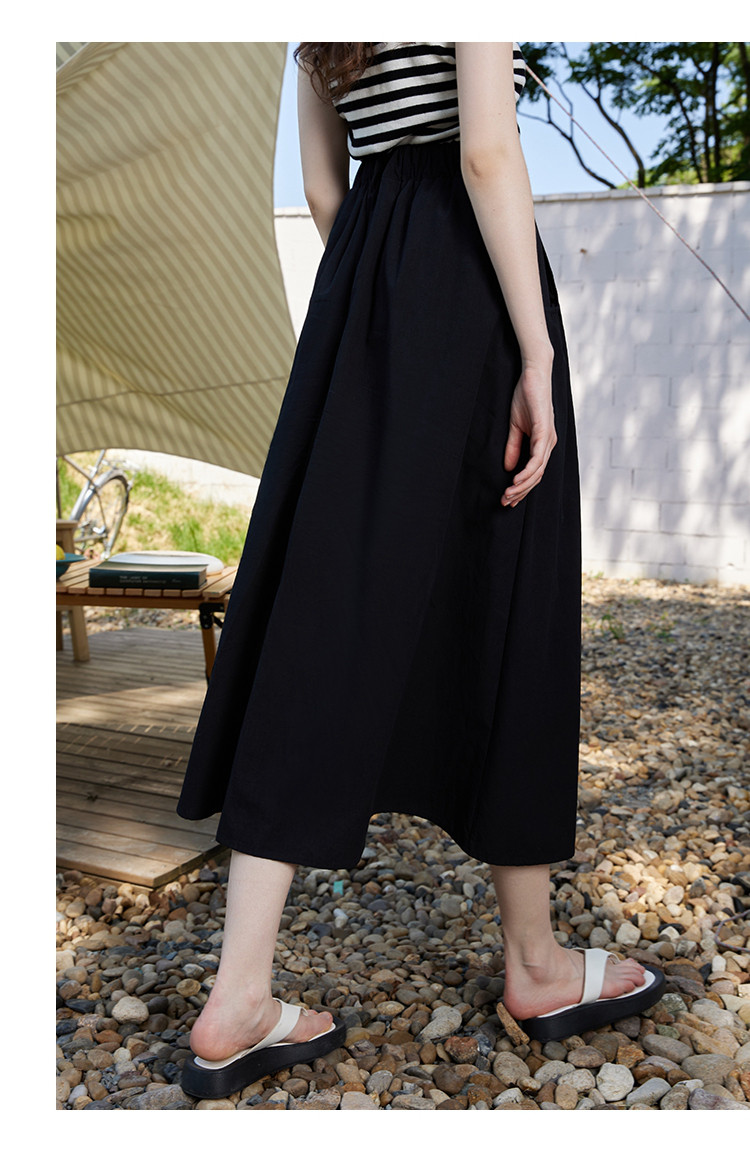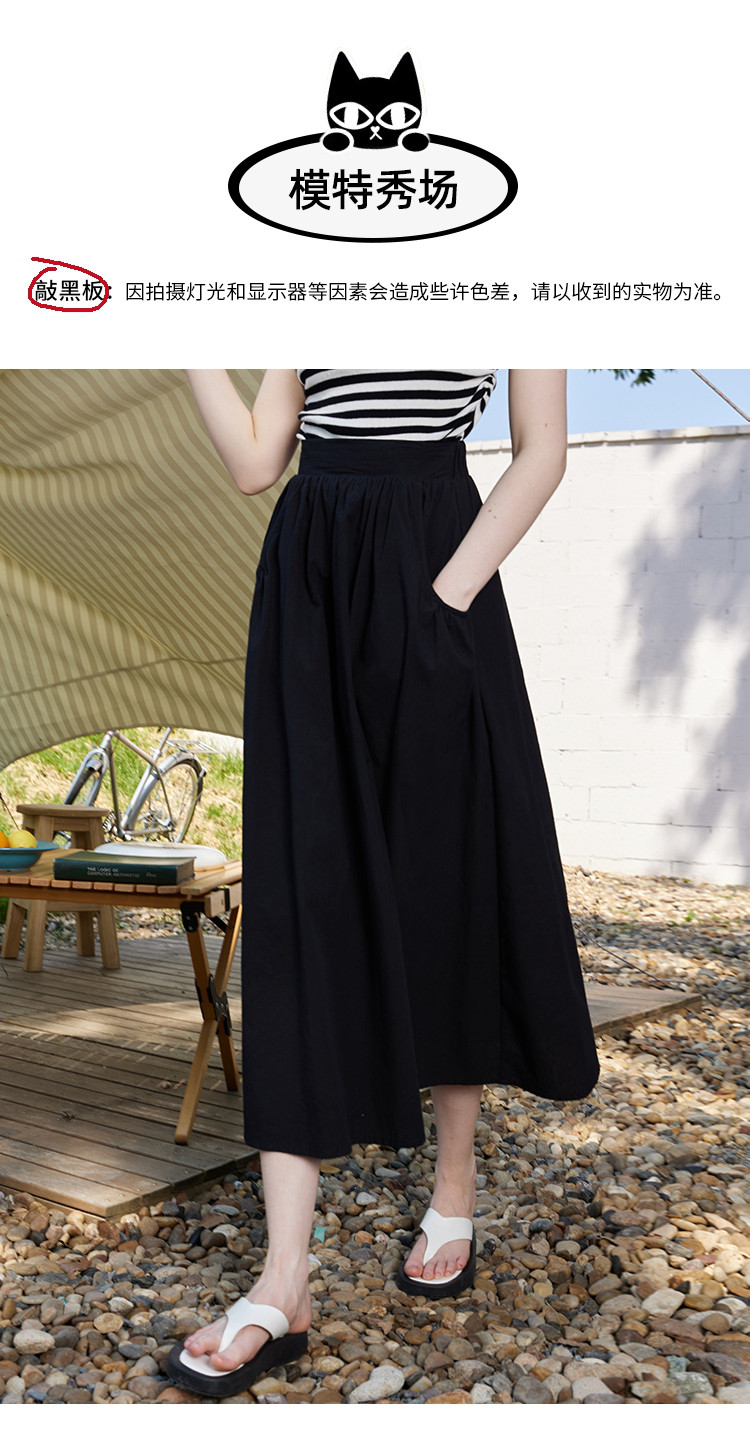 商品名称:高腰休闲遮肉显瘦半身裙夏季纯色简约设计百搭中长半截裙 184861
