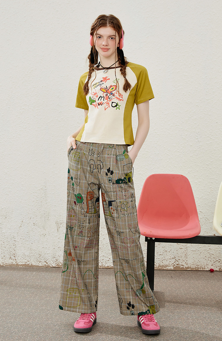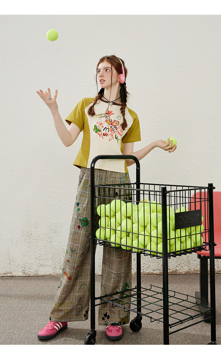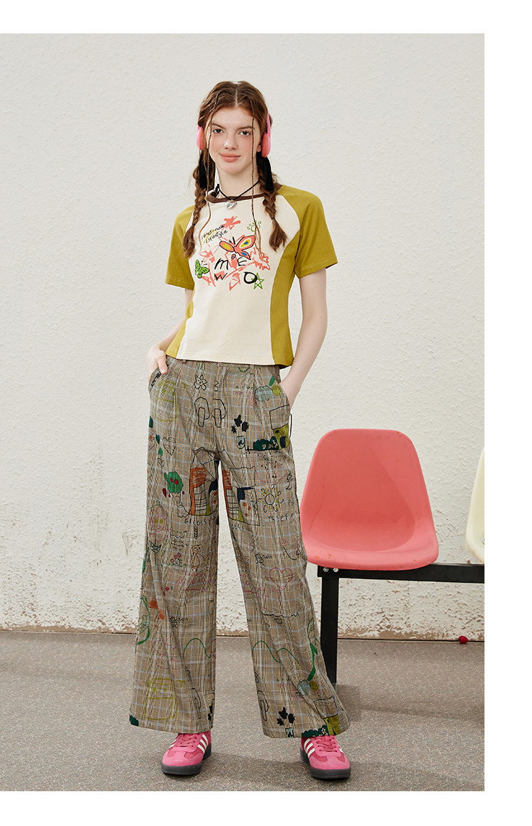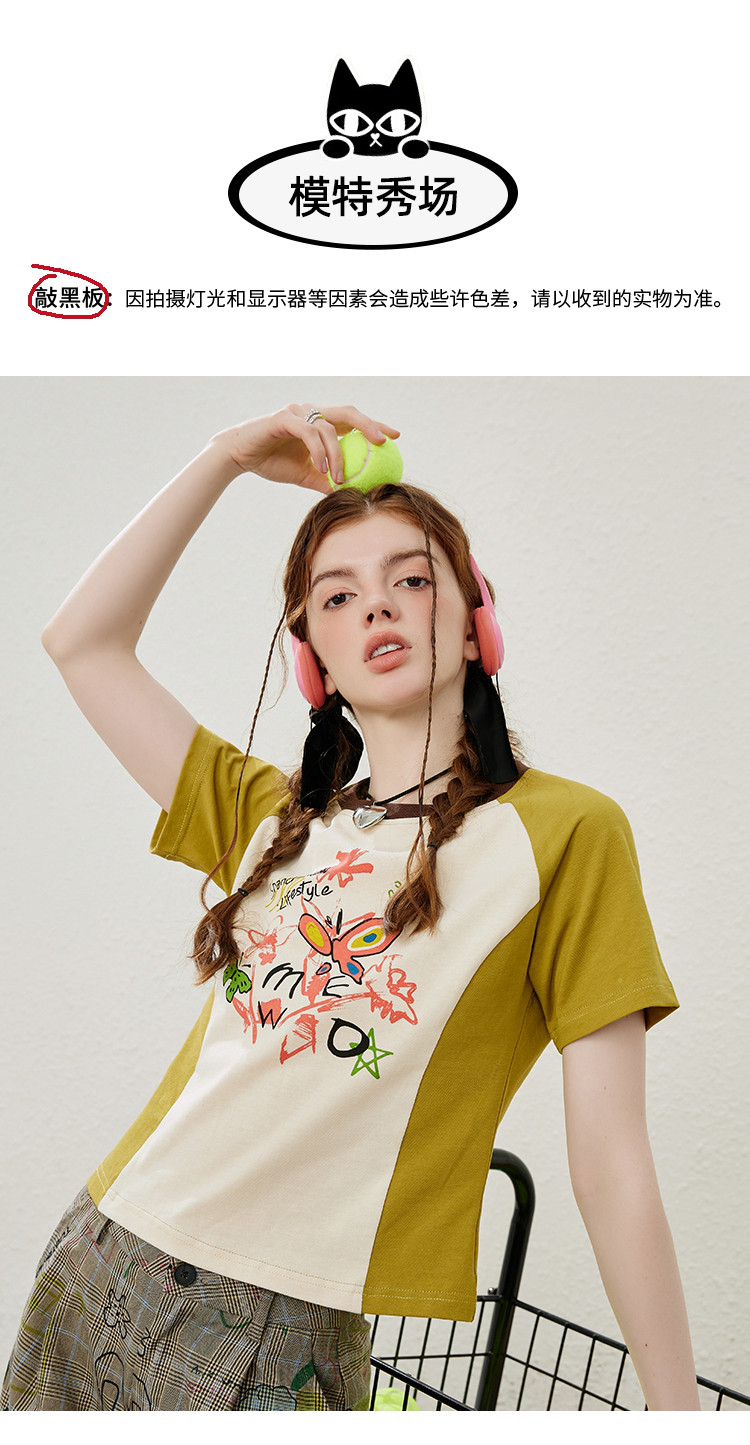 涂鸦印花插肩袖宽松休闲圆领女式T恤夏季休闲短袖上衣 655901