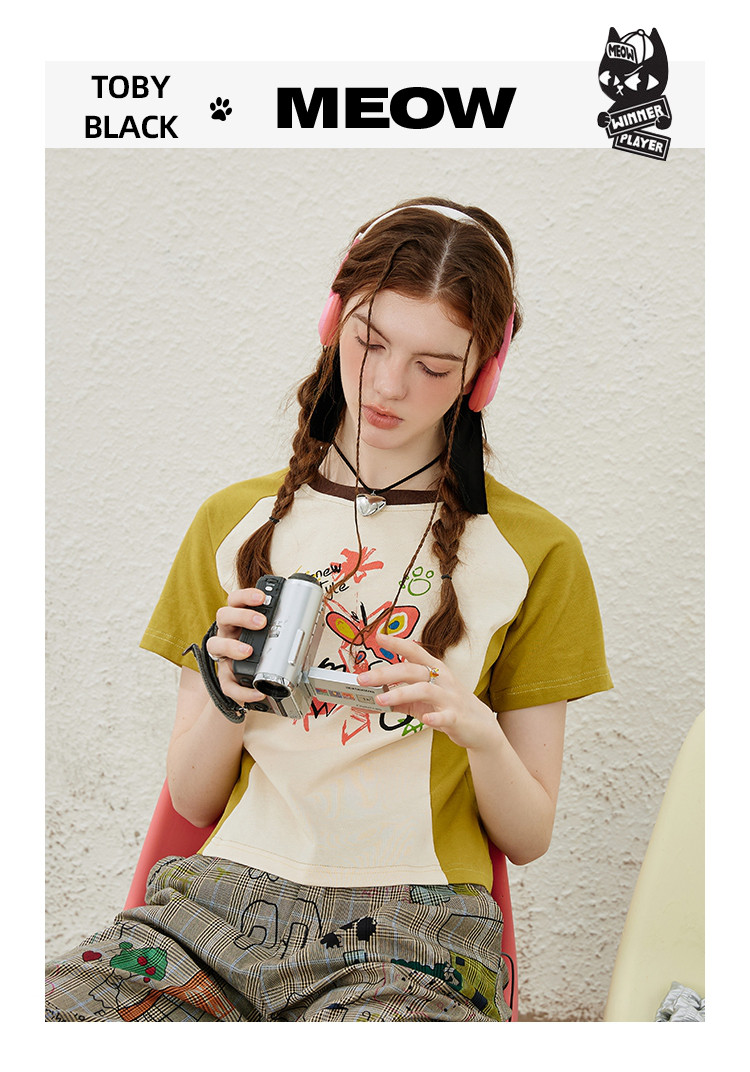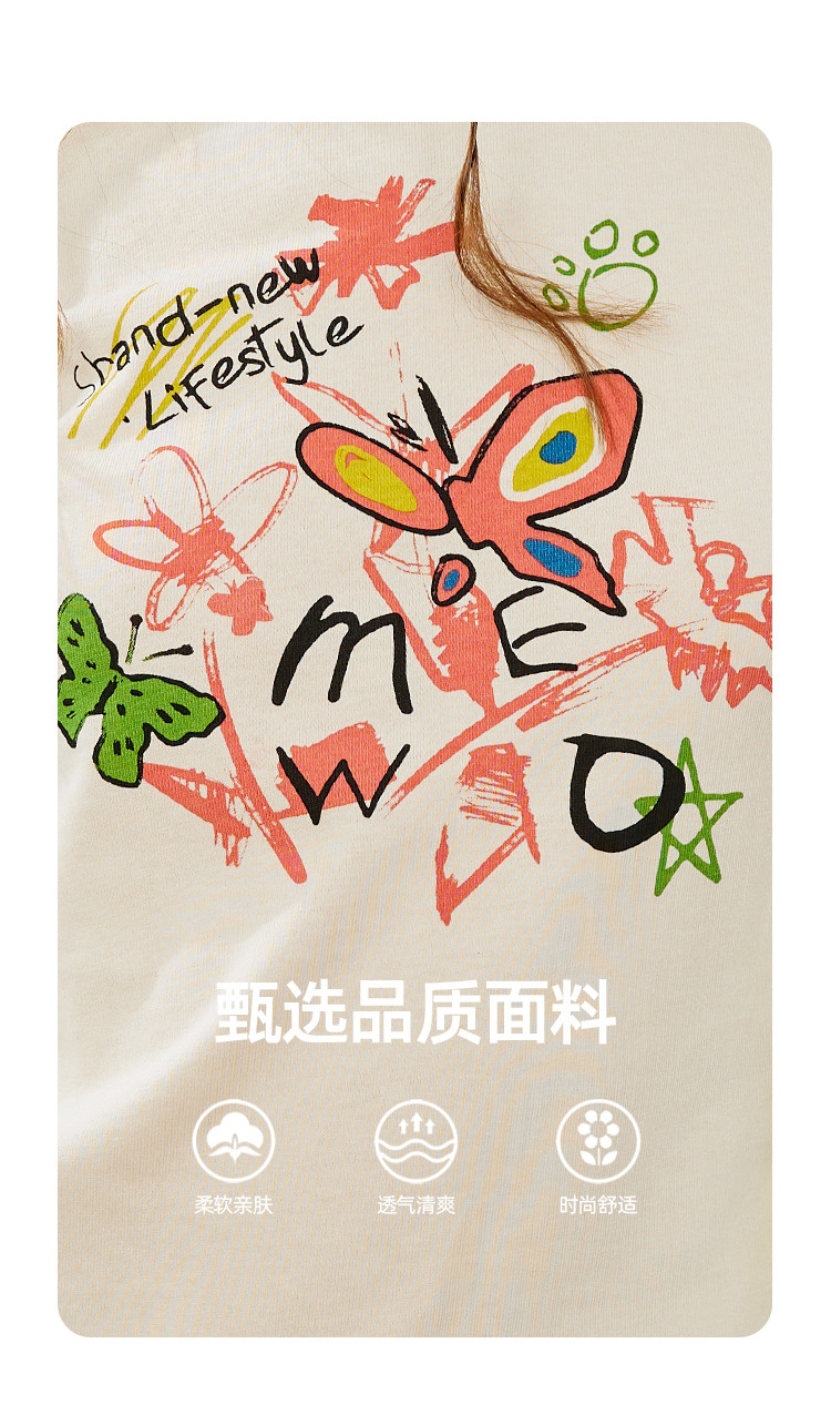 商品名称:涂鸦印花插肩袖宽松休闲圆领女式T恤夏季休闲短袖上衣 655901