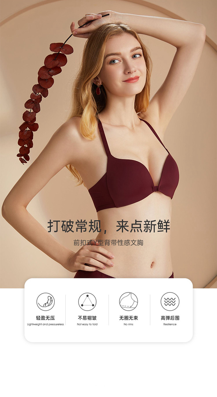 古今内衣女无钢圈胸罩Y肩带交叉美背性感聚拢无痕光面前扣文胸 708555