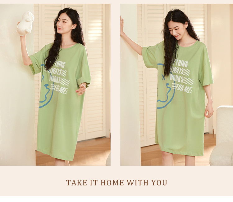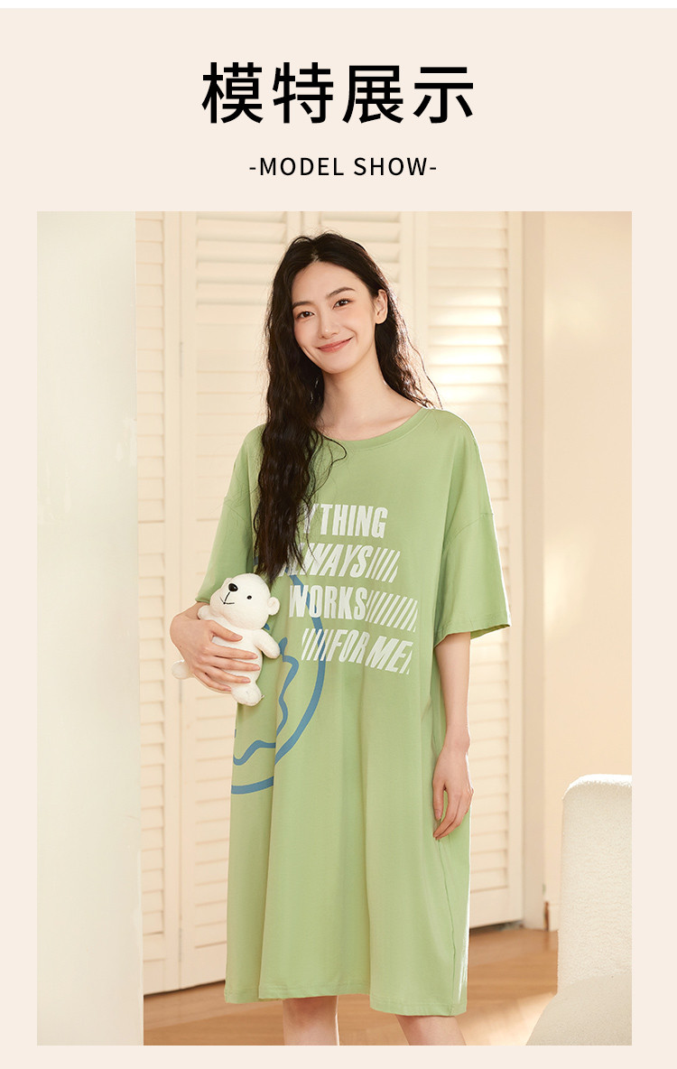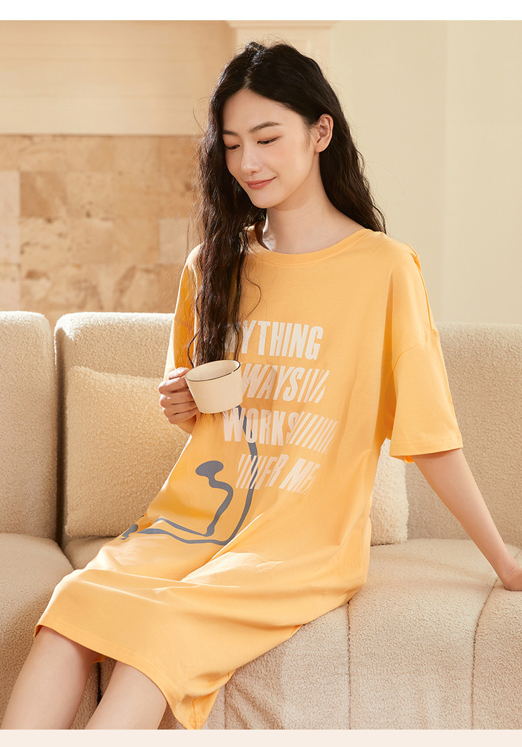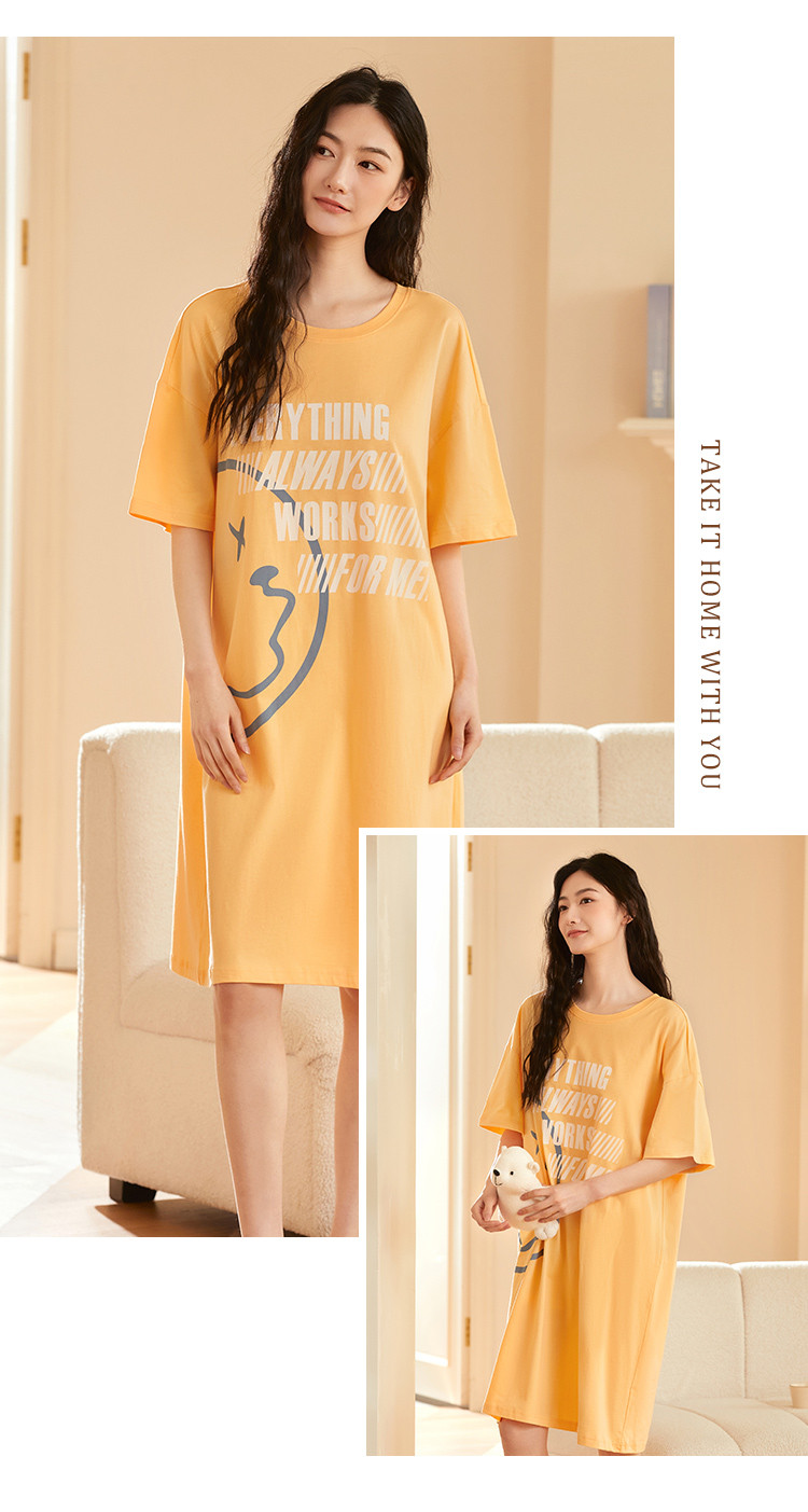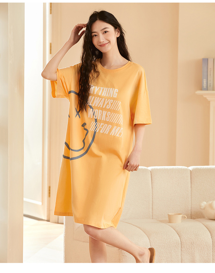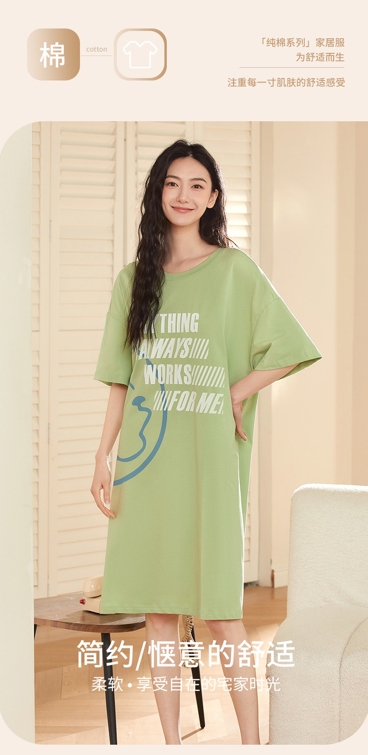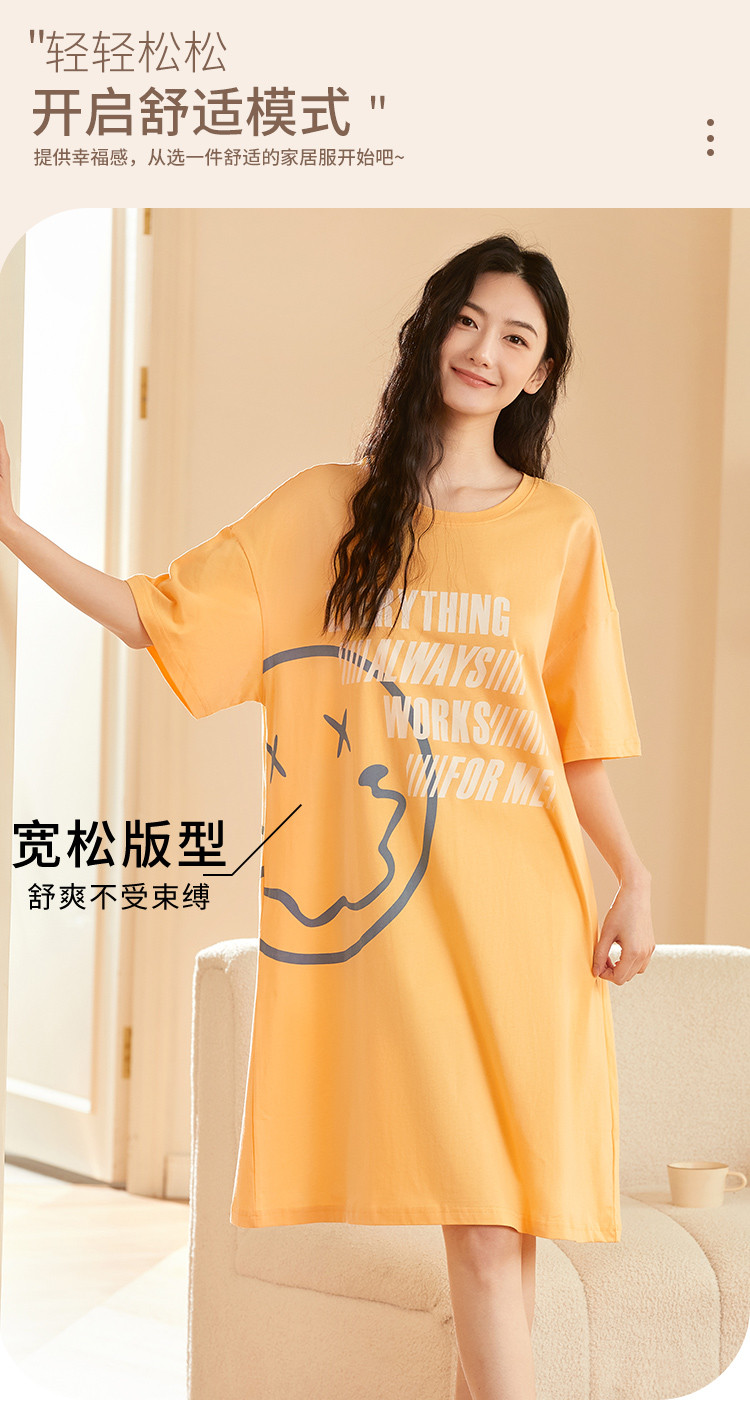 商品名称:【100%棉】圆领小恶魔笑脸涂鸦印花短袖睡裙女士休闲柔软舒适 788235