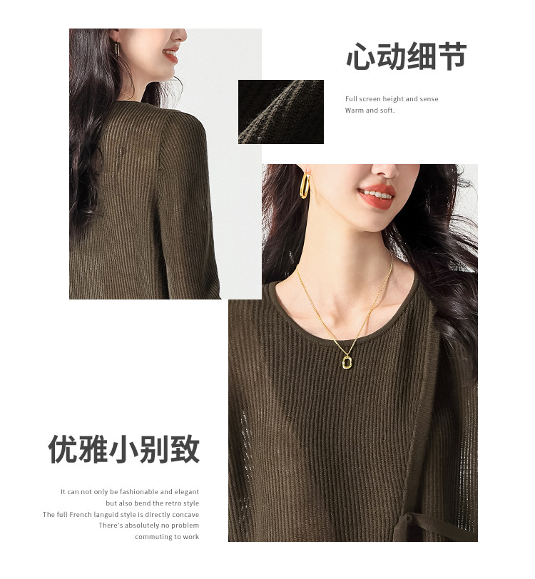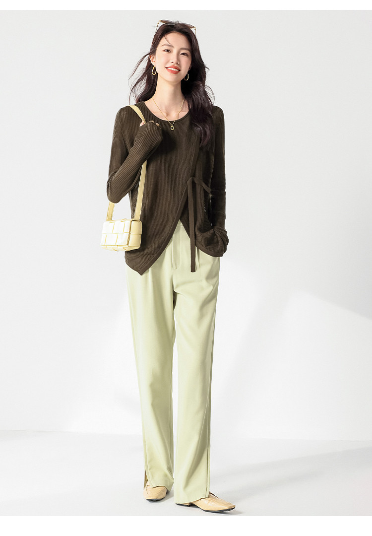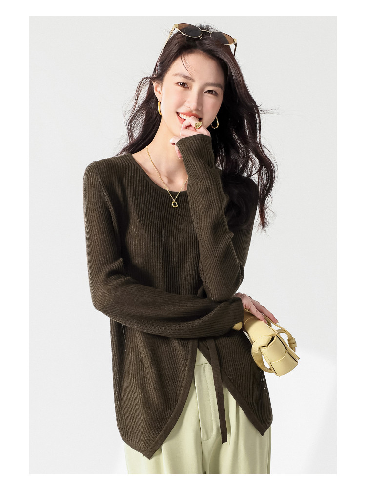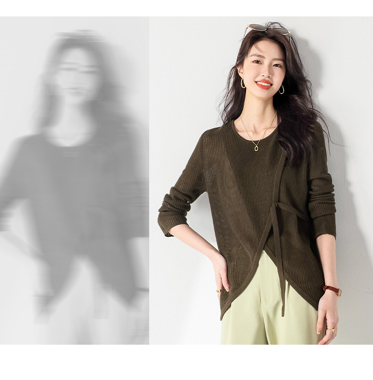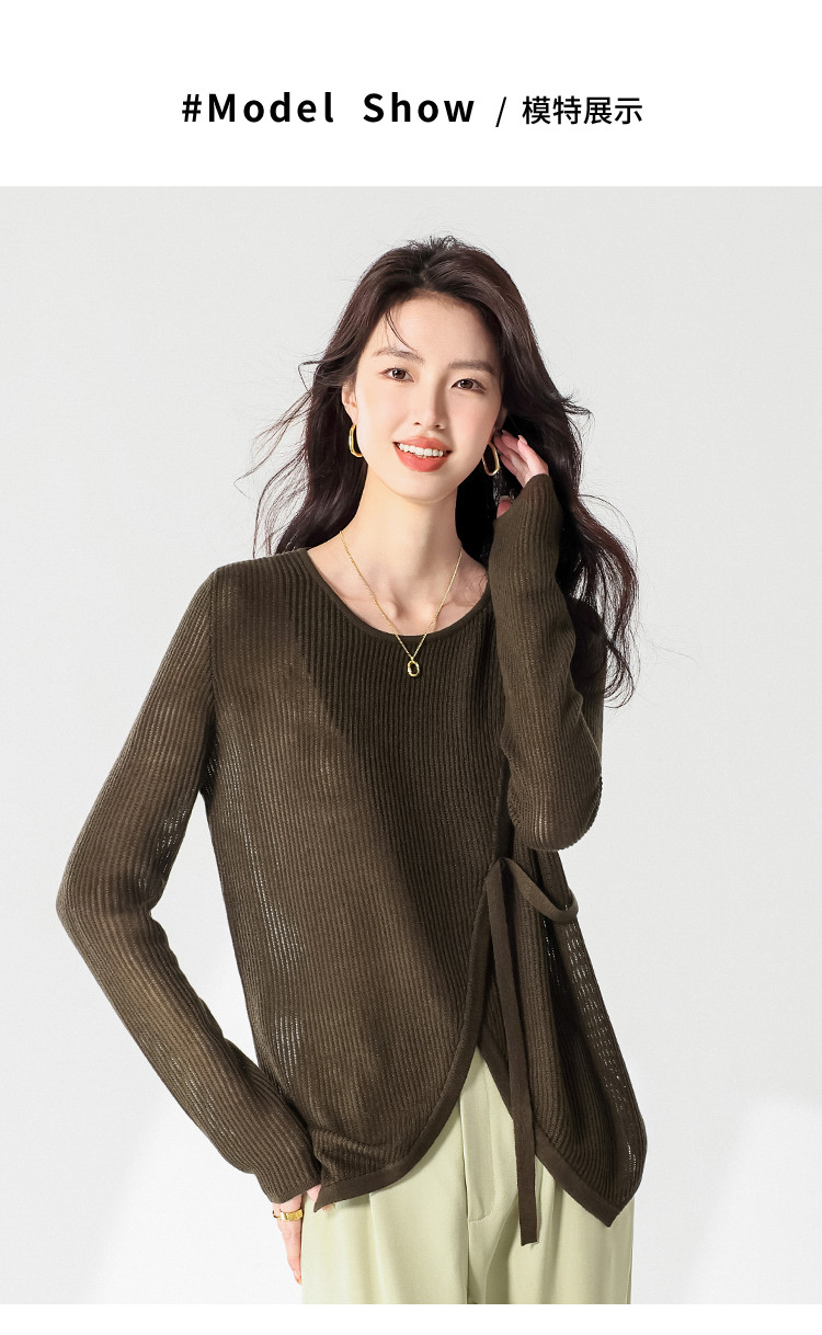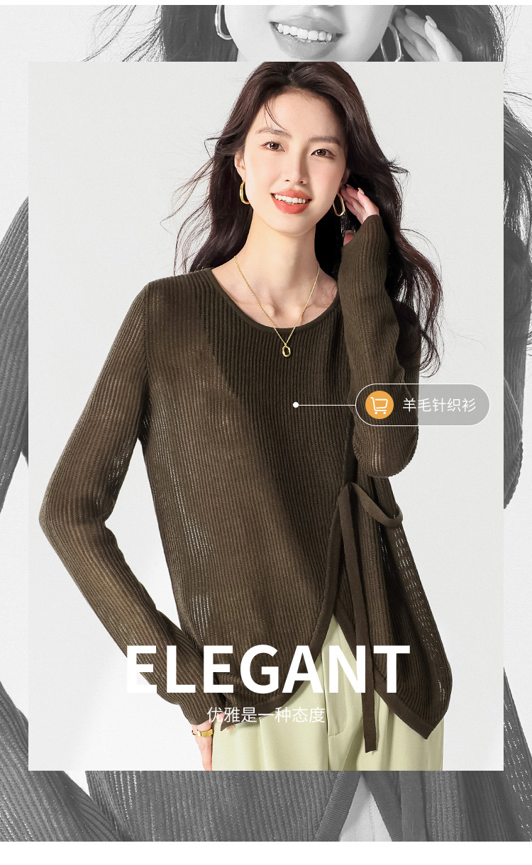 商品名称:简约纯色圆领腰带羊毛针织打底衫毛衣长袖T恤叠穿罩衫设计空调衫 448147
