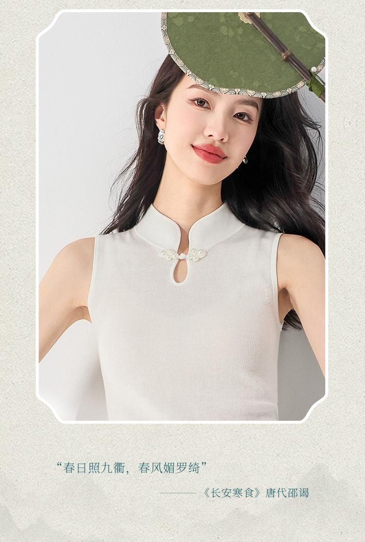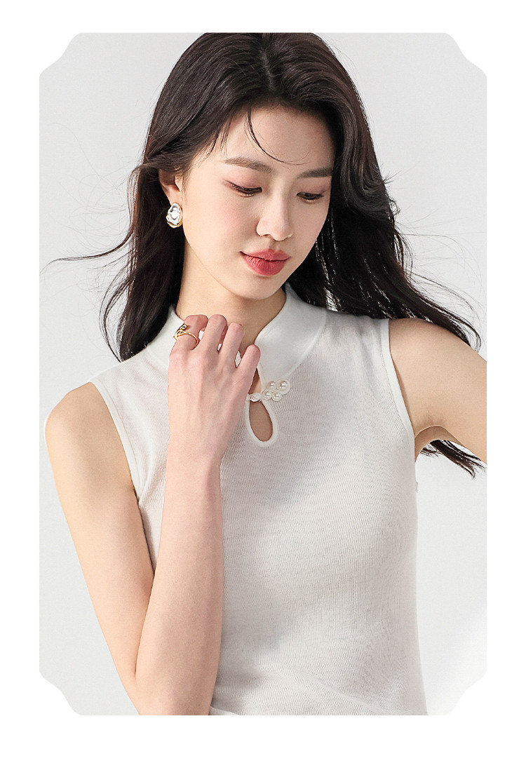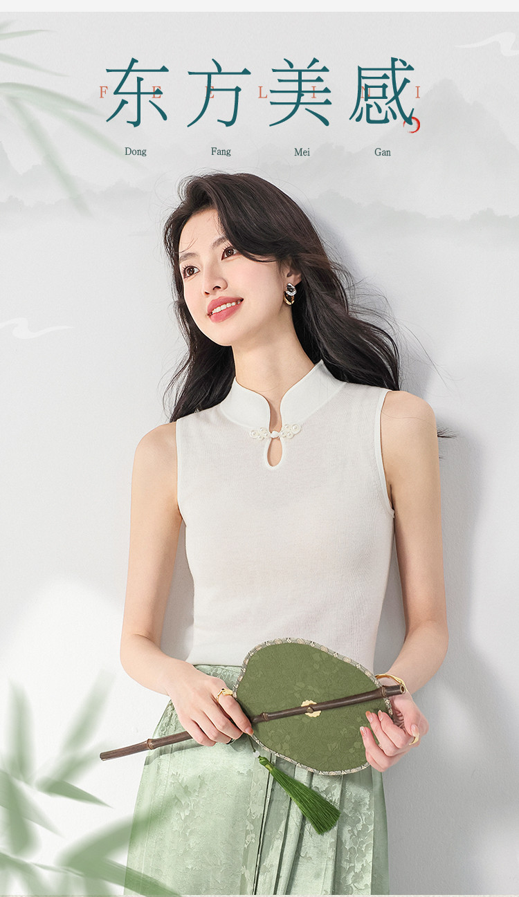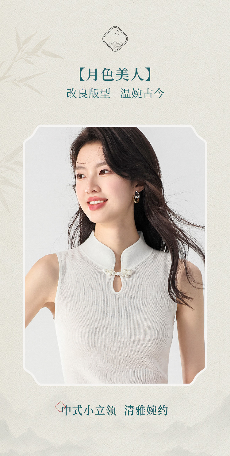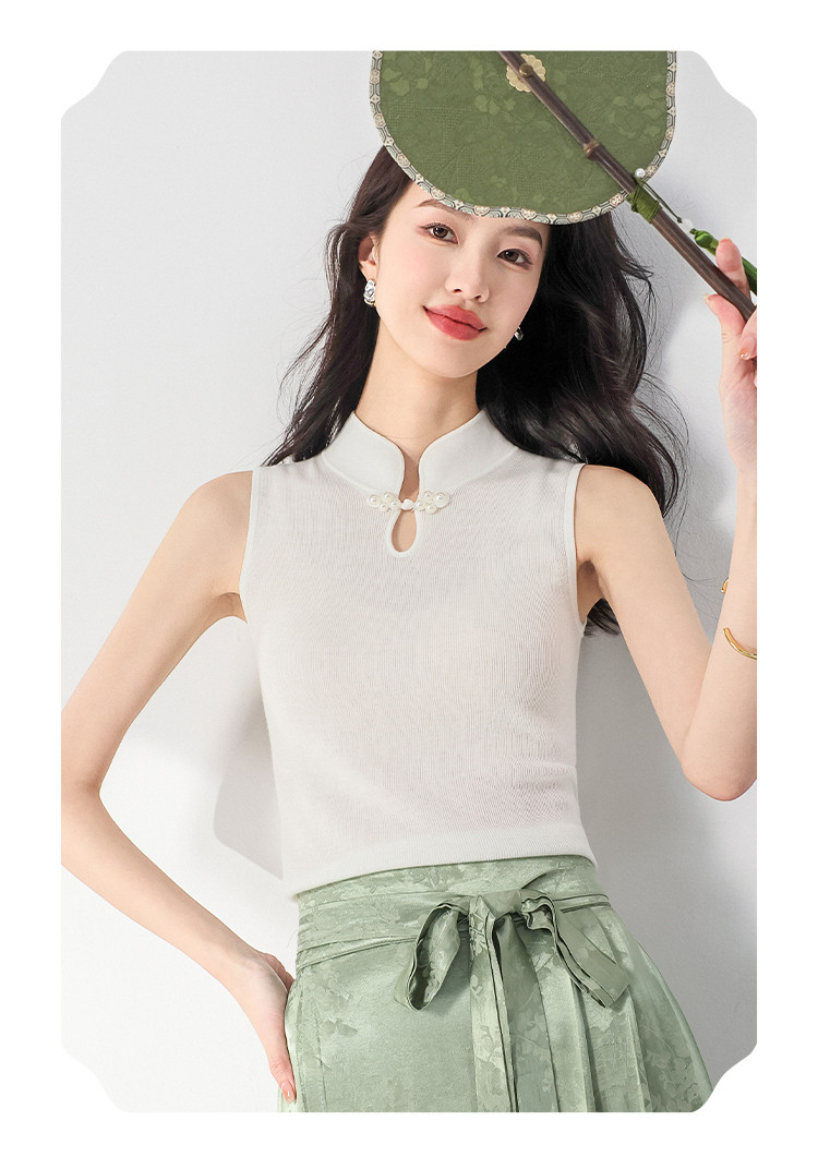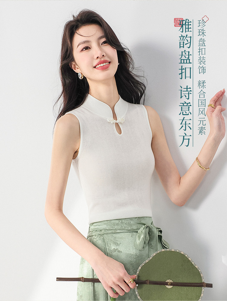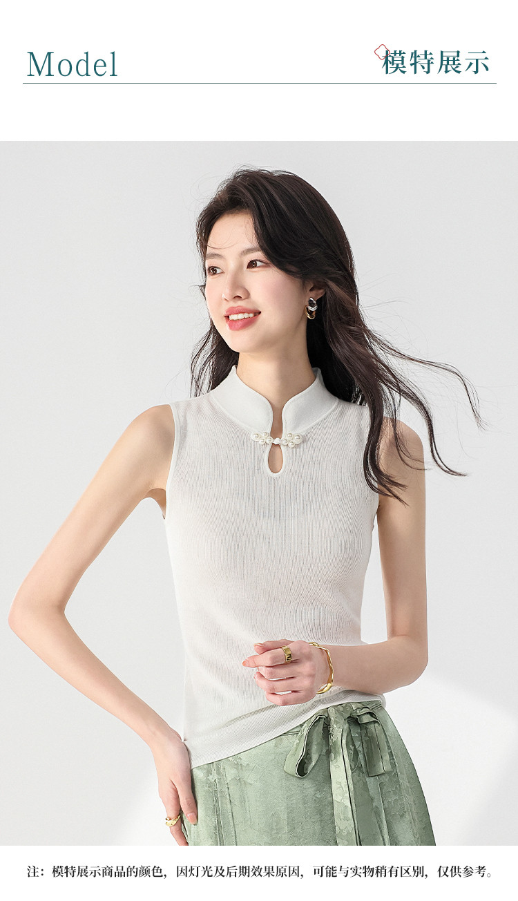 商品名称:【国风】新中式轻薄透气含桑蚕丝立领无袖针织打底衫背心夏款马甲 444819