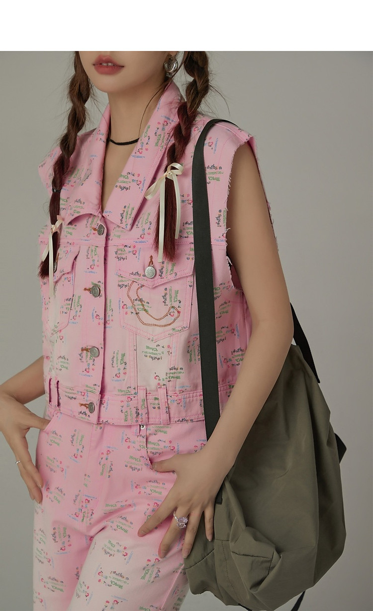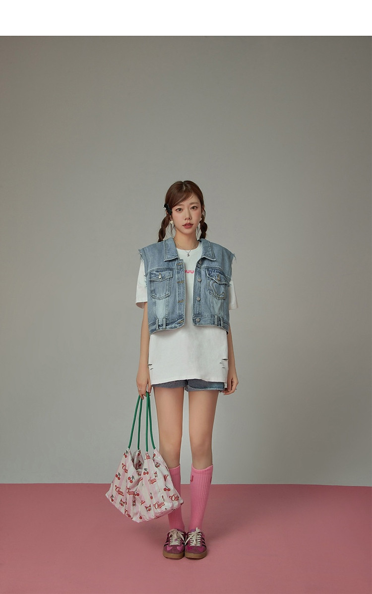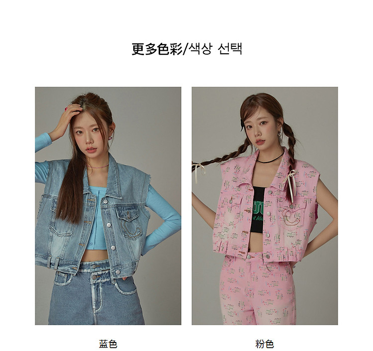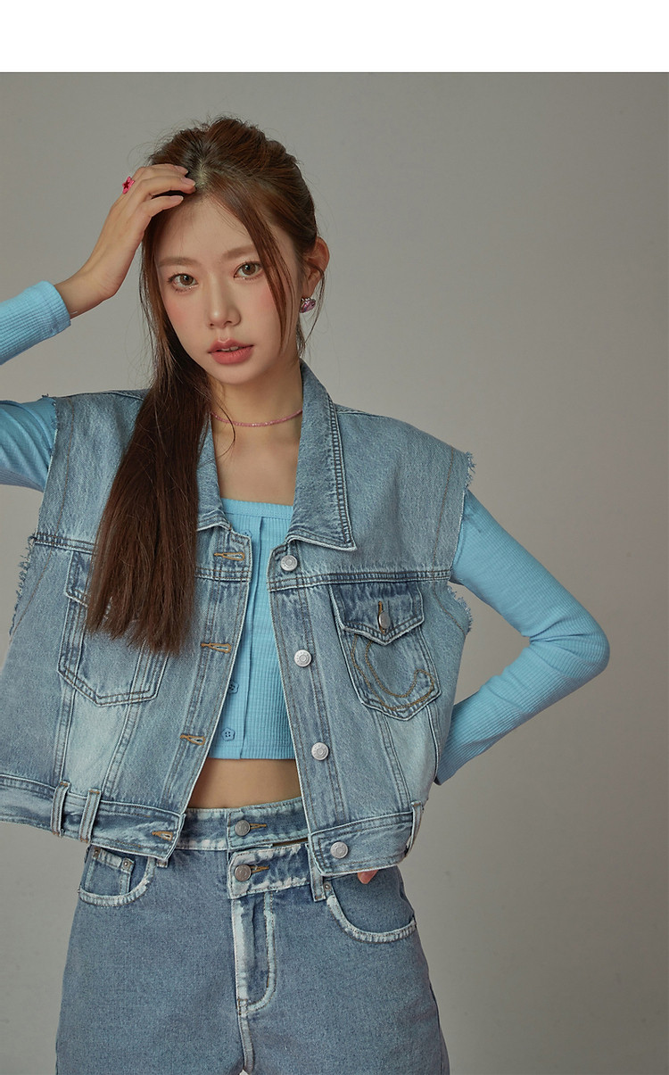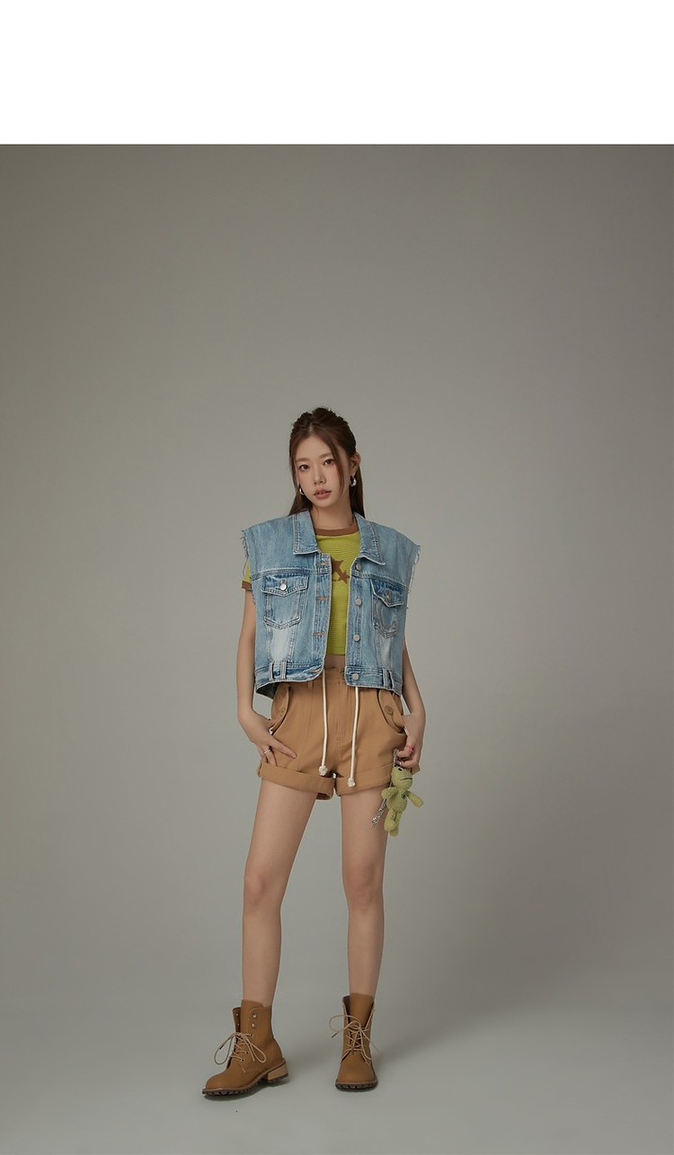 潮酷牛仔马夹女夏洋气减龄百搭别致无袖毛边上衣 744467