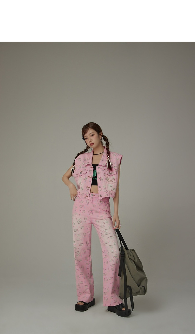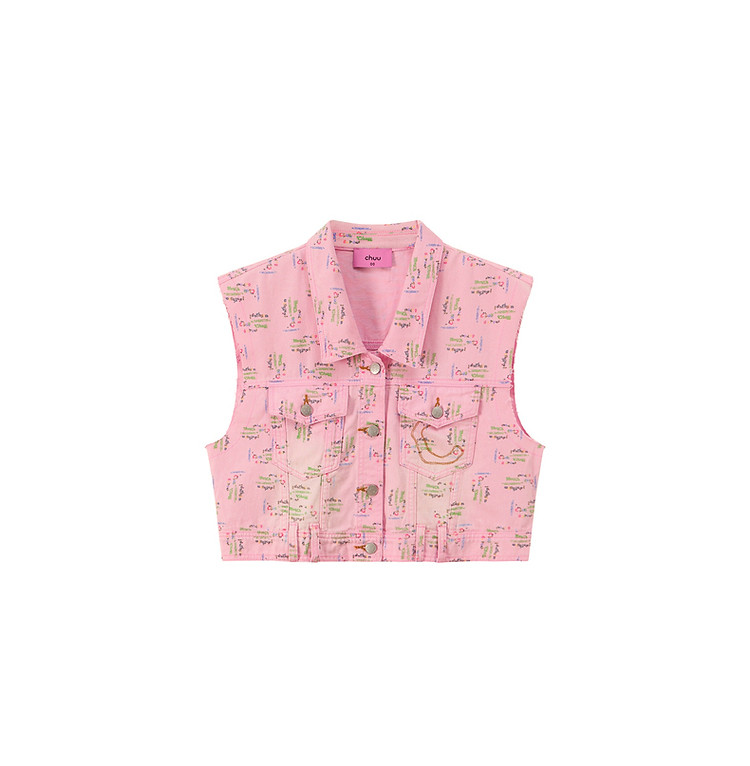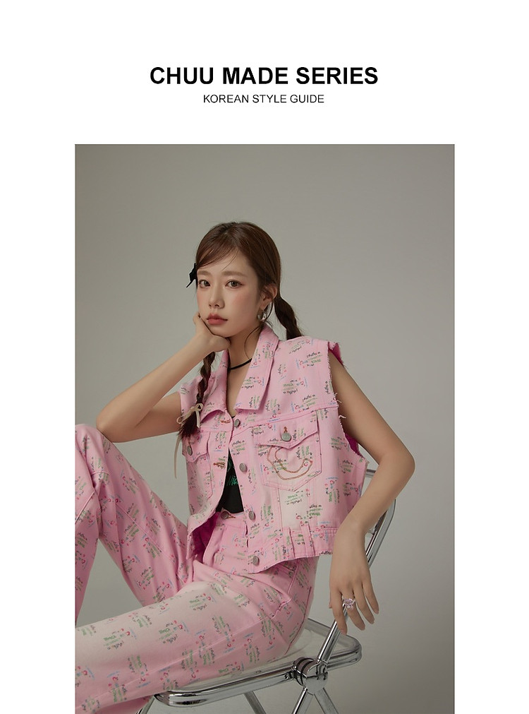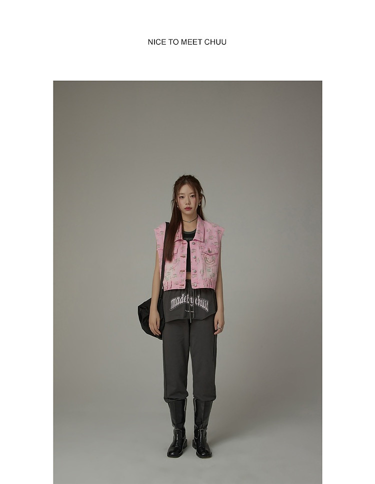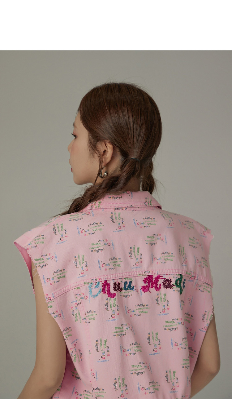 潮酷牛仔马夹女夏洋气减龄百搭别致无袖毛边上衣 744467