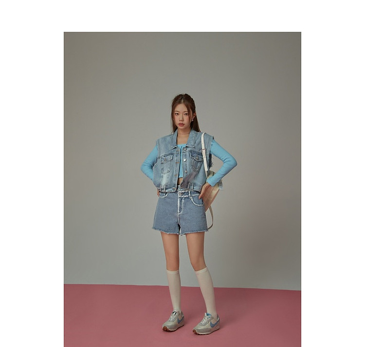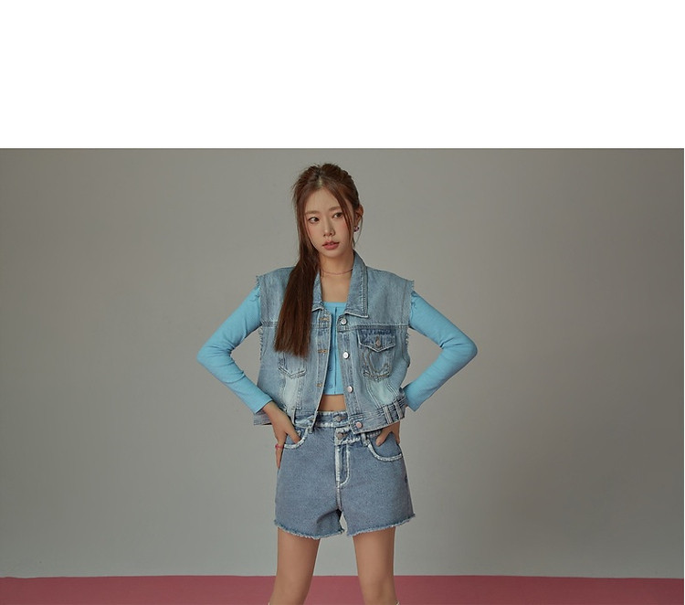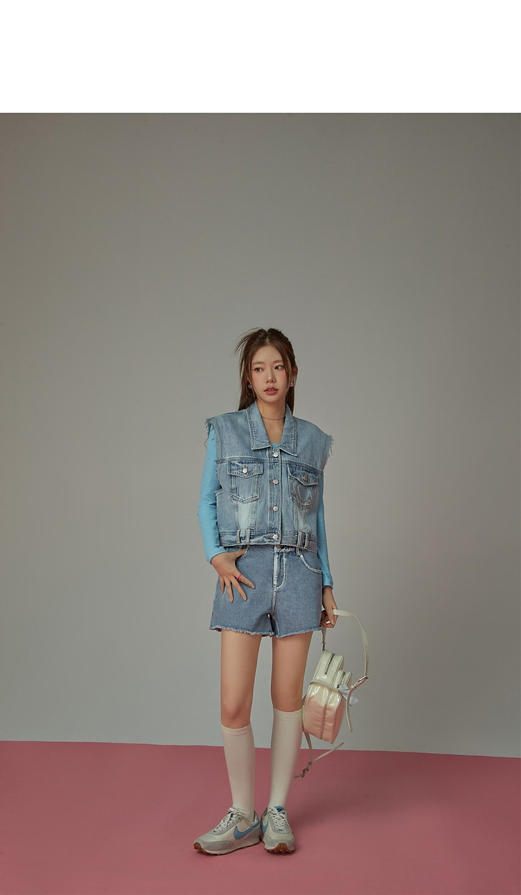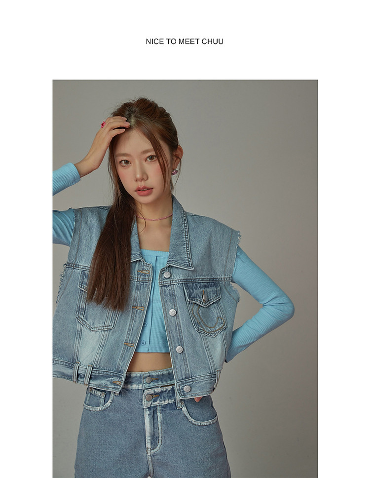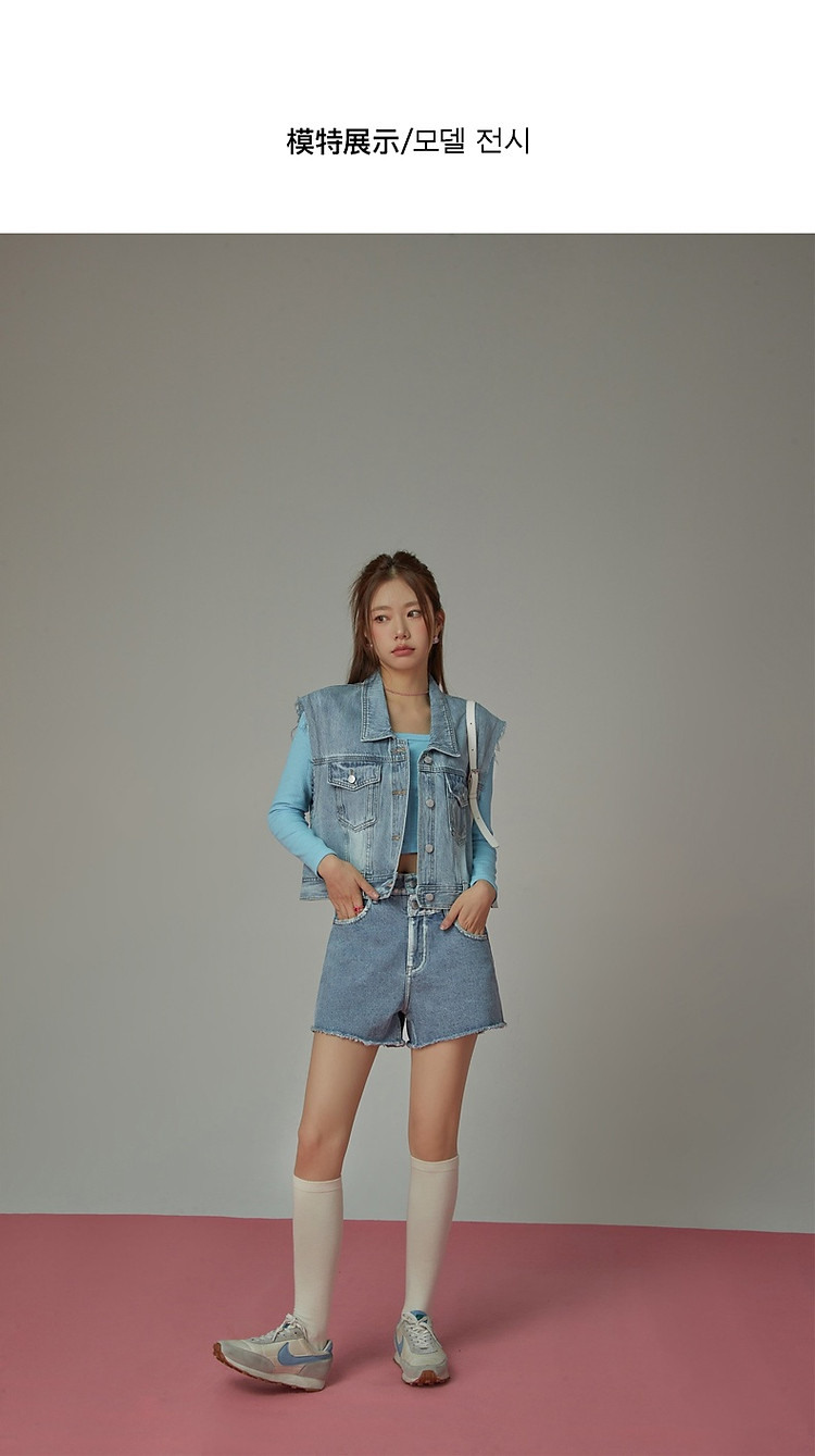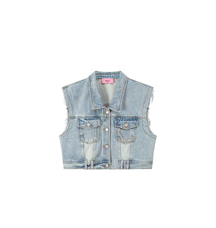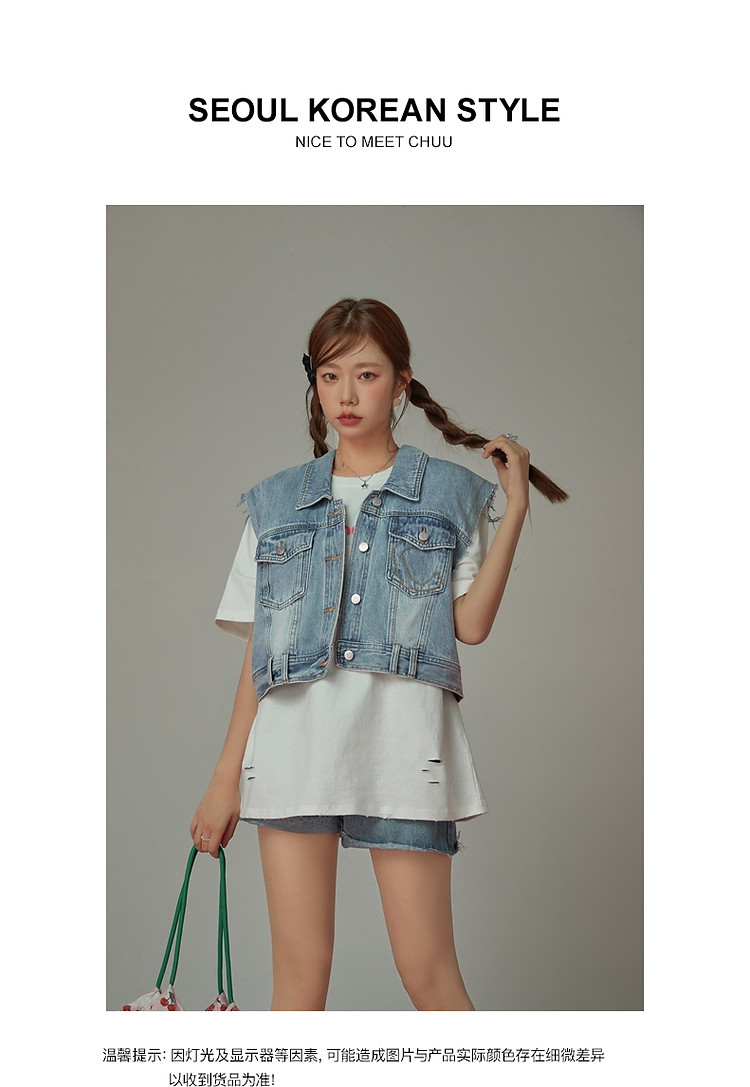商品名称:潮酷牛仔马夹女夏洋气减龄百搭别致无袖毛边上衣 744467