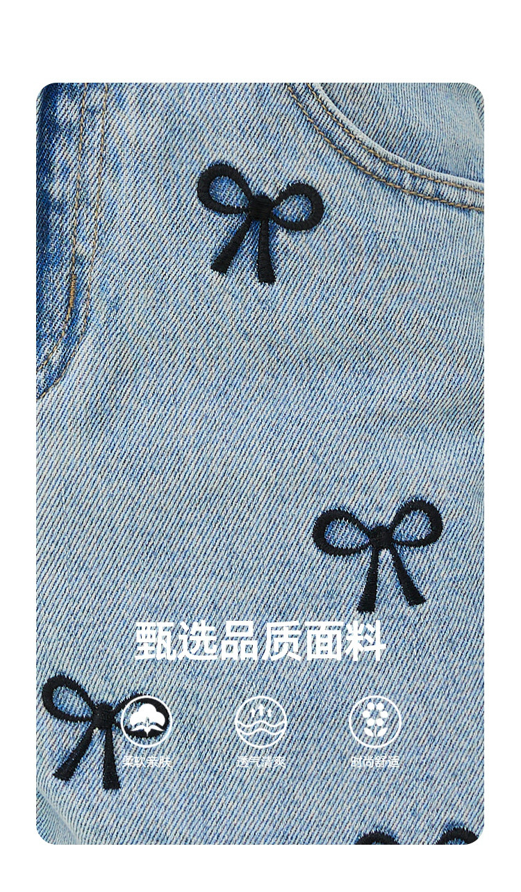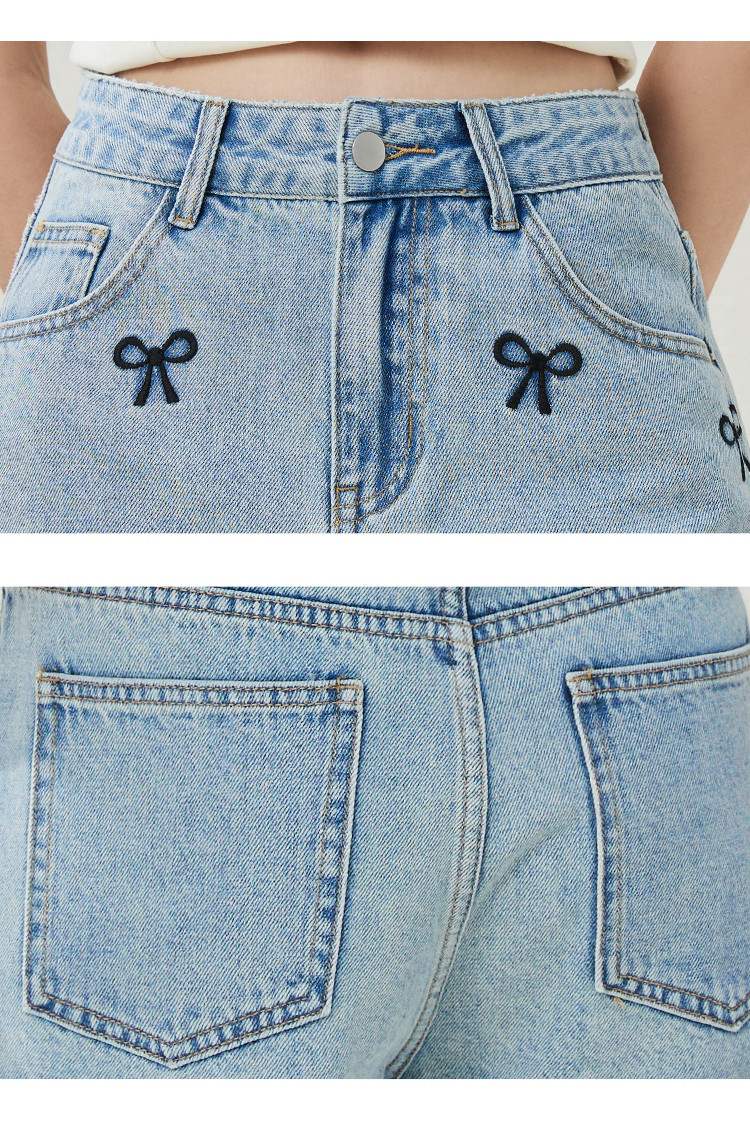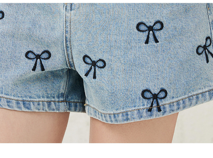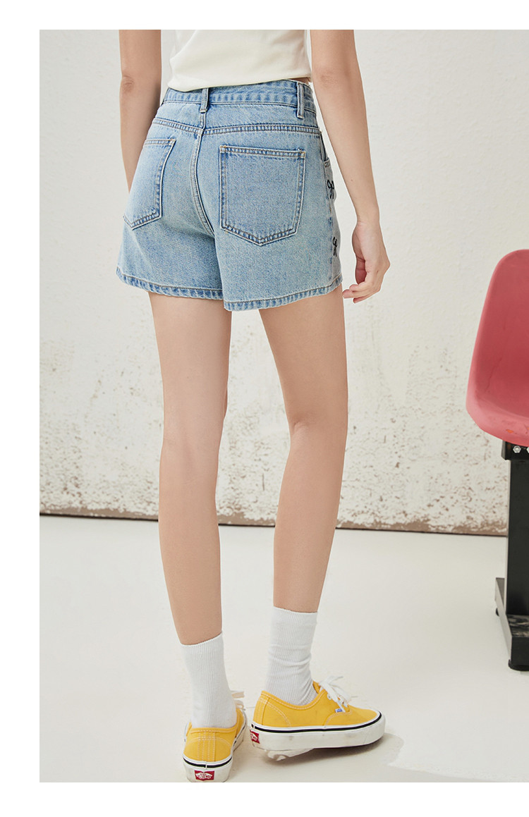 商品名称:个性刺绣装饰设计感女式牛仔裤夏季高腰休闲短款阔腿裤 400349