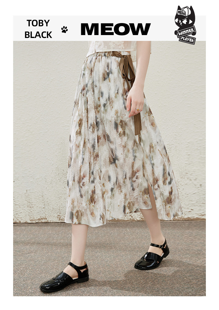 蝴蝶结绑绳设计感显瘦文艺风半截裙夏季优雅中款开叉裙 634077