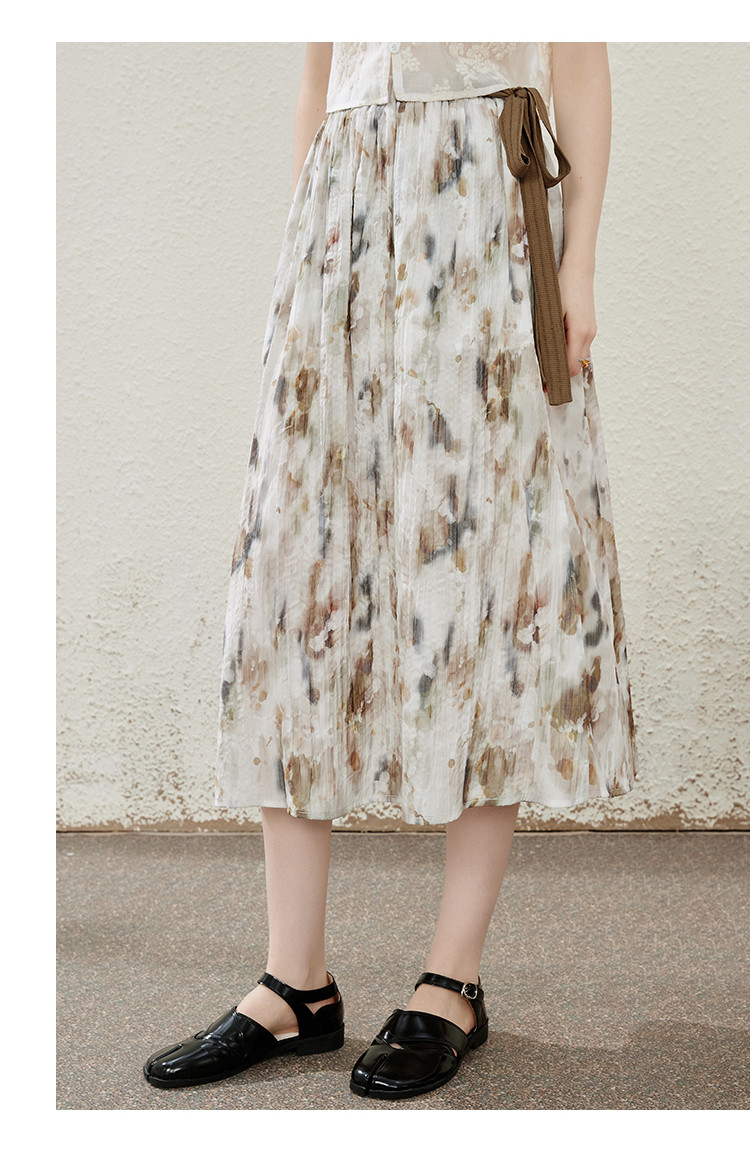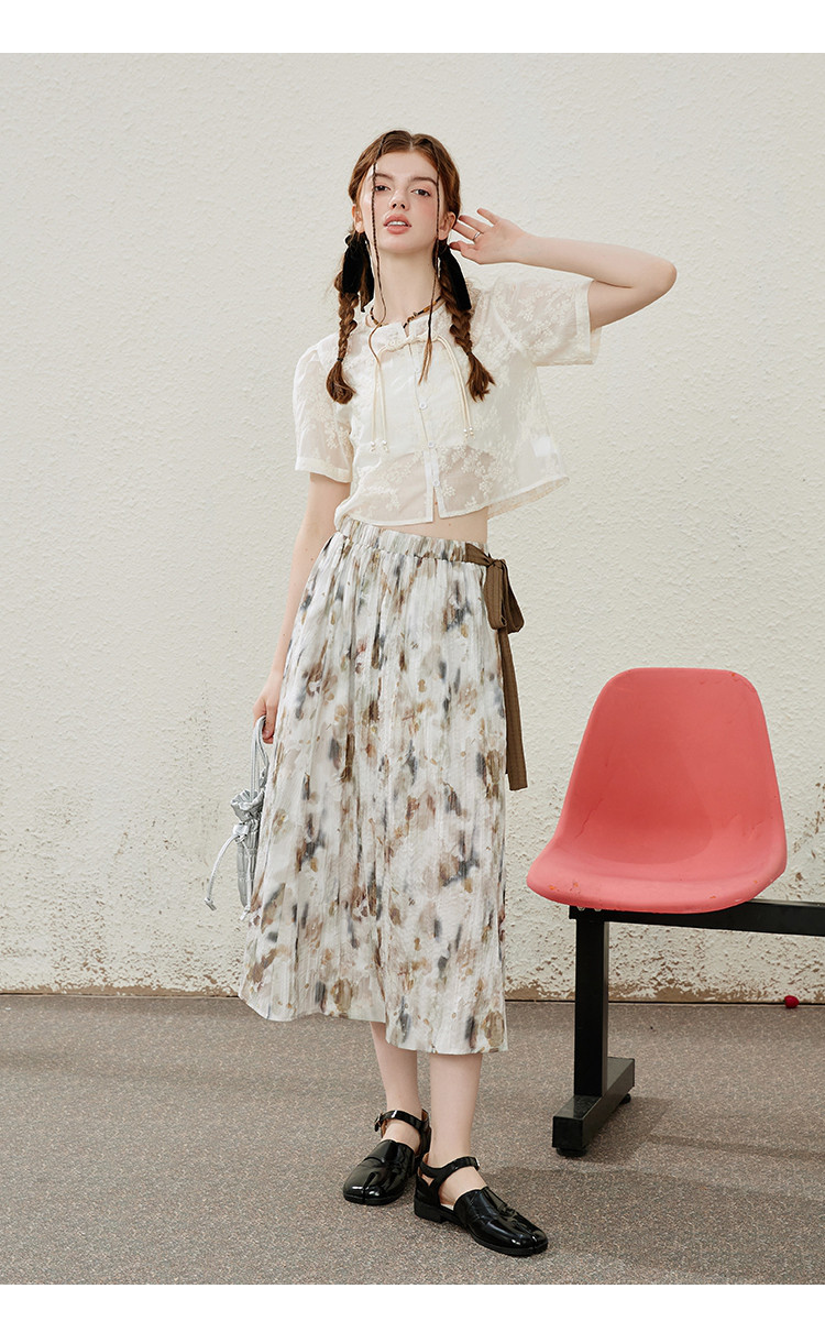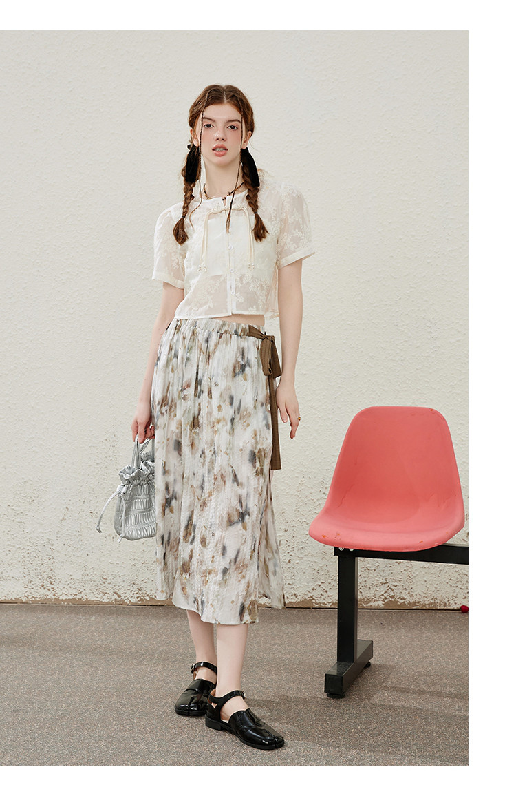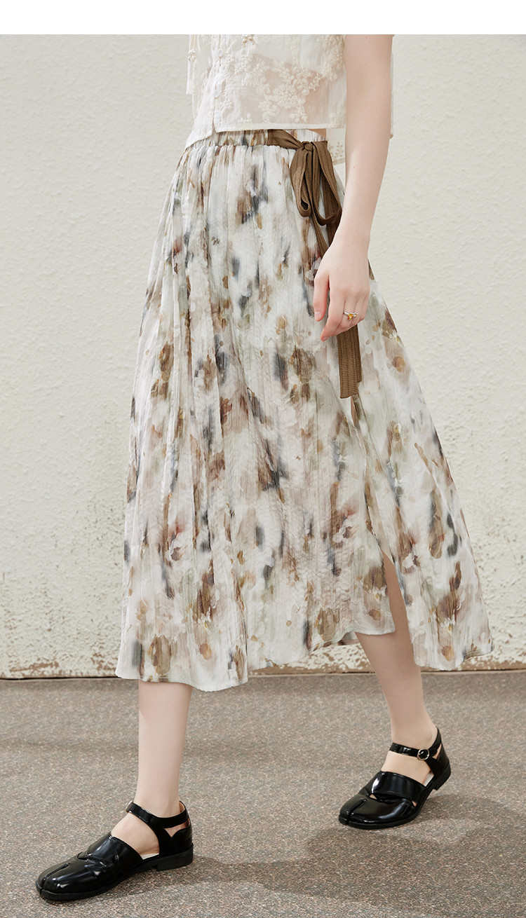 商品名称:蝴蝶结绑绳设计感显瘦文艺风半截裙夏季优雅中款开叉裙 634077
