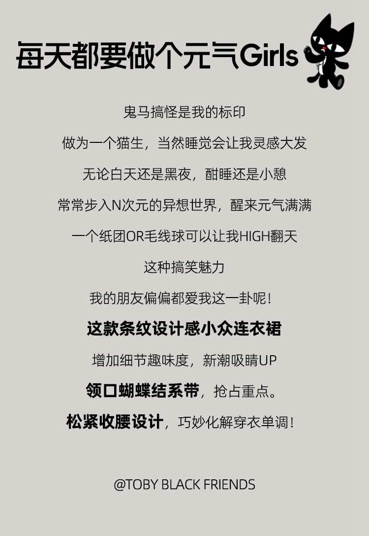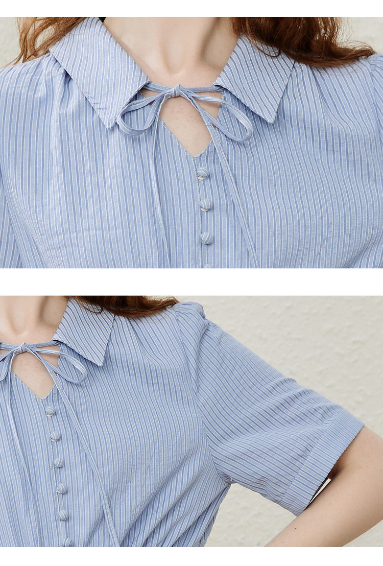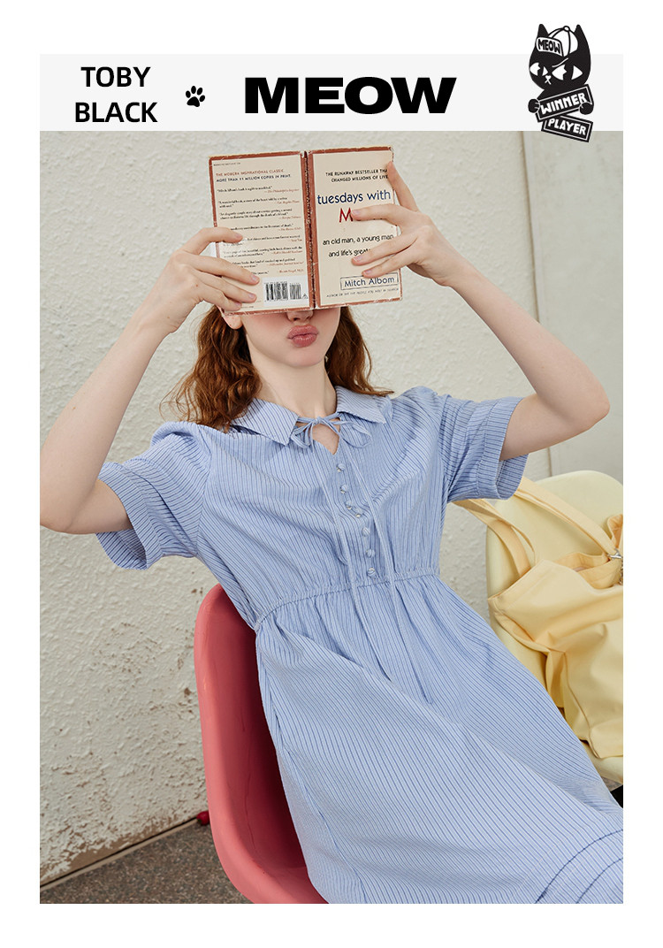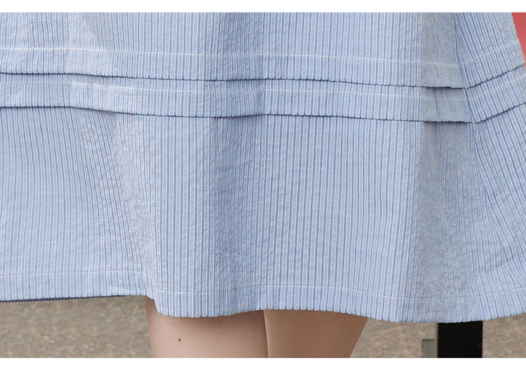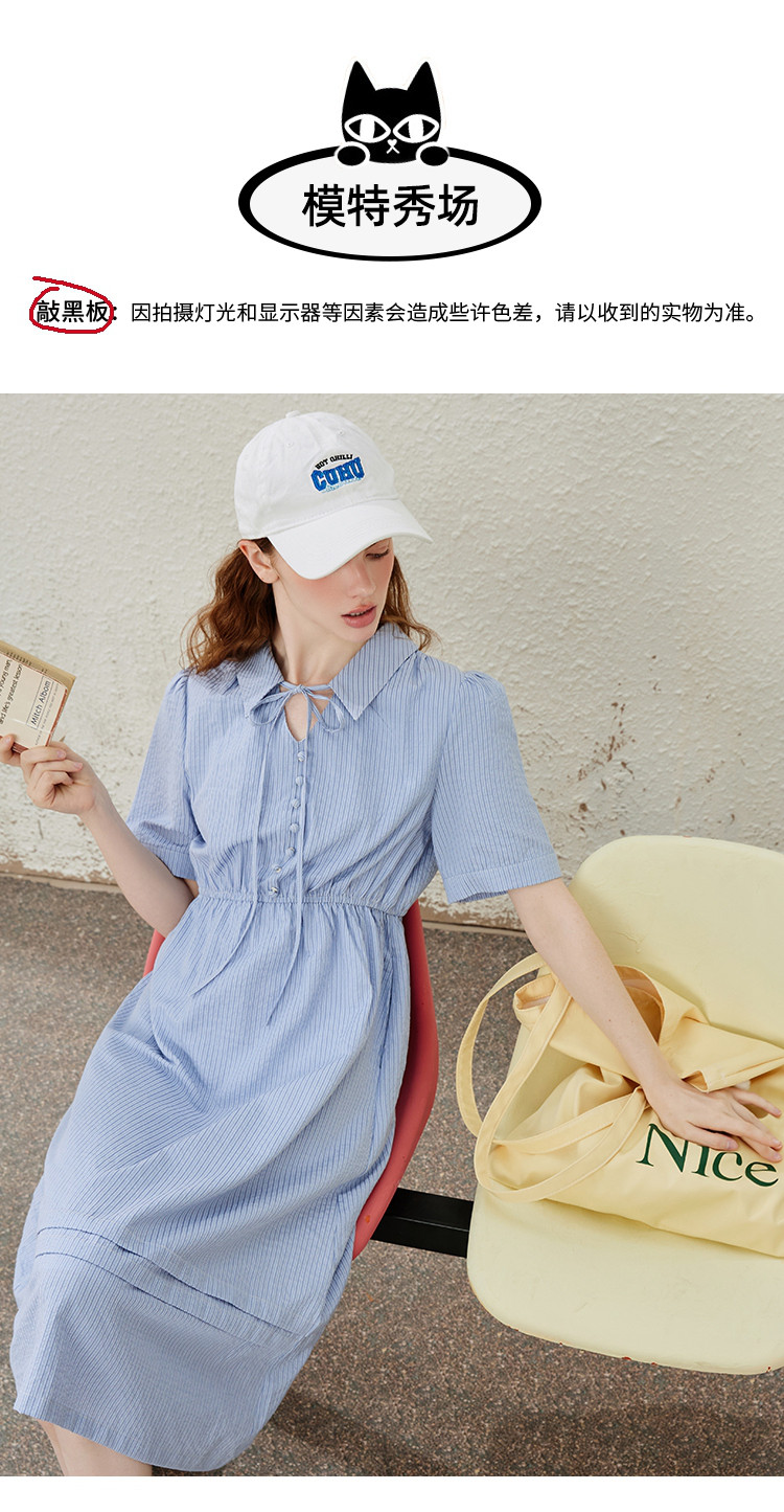 商品名称:条纹设计感收腰系带领小众长款连衣裙夏季休闲气质A字裙 535517