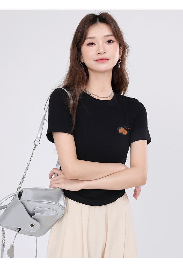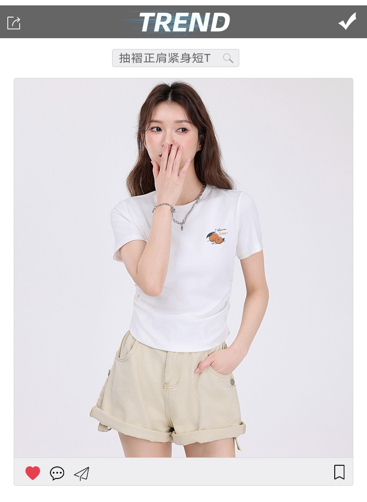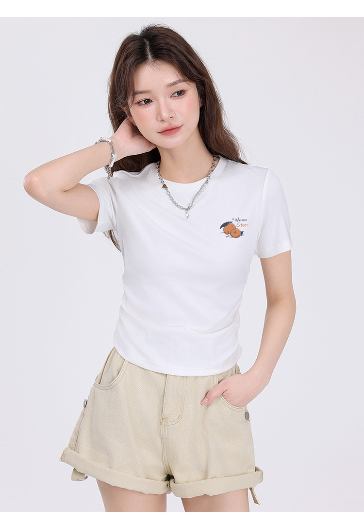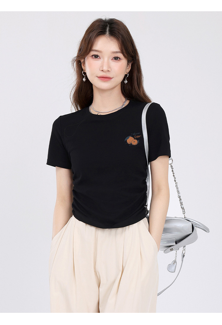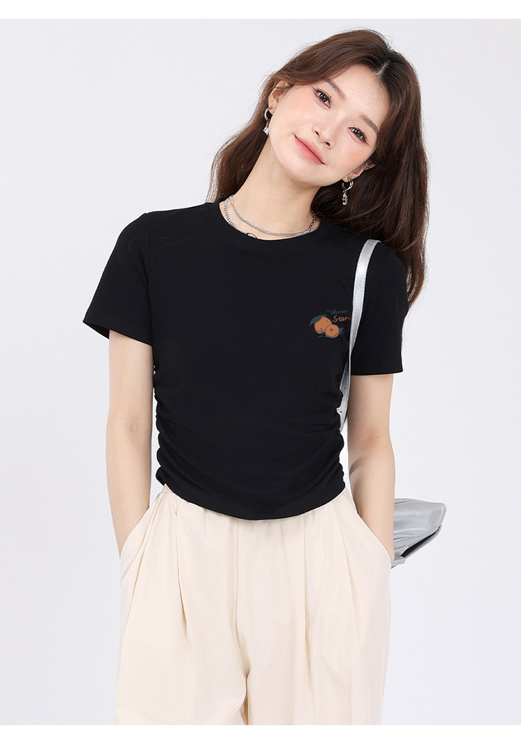 商品名称:【女装正肩】女式短款小个子T恤紧身显瘦夏季小众抽褶设计感短袖 257875