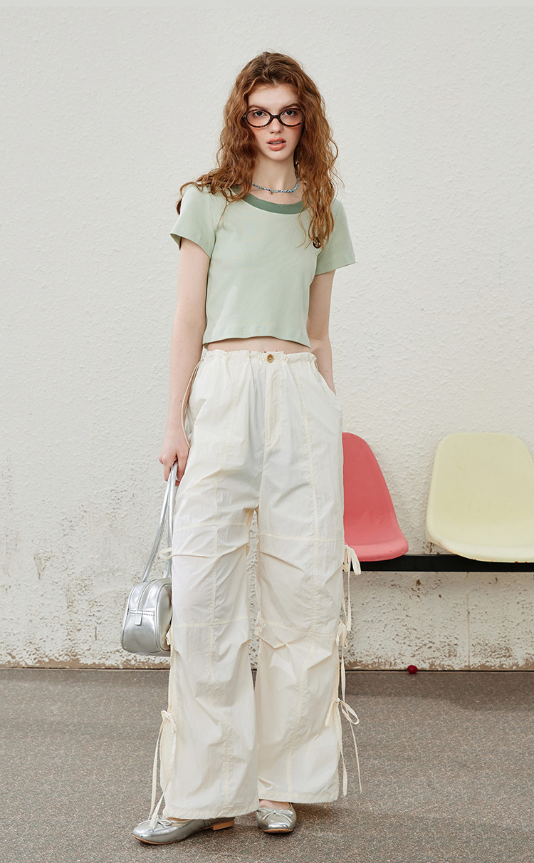 商品名称:甜酷风绑带设计个性少女束脚裤夏季高腰百搭女式休闲裤 035805