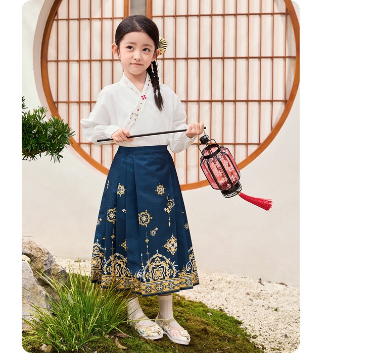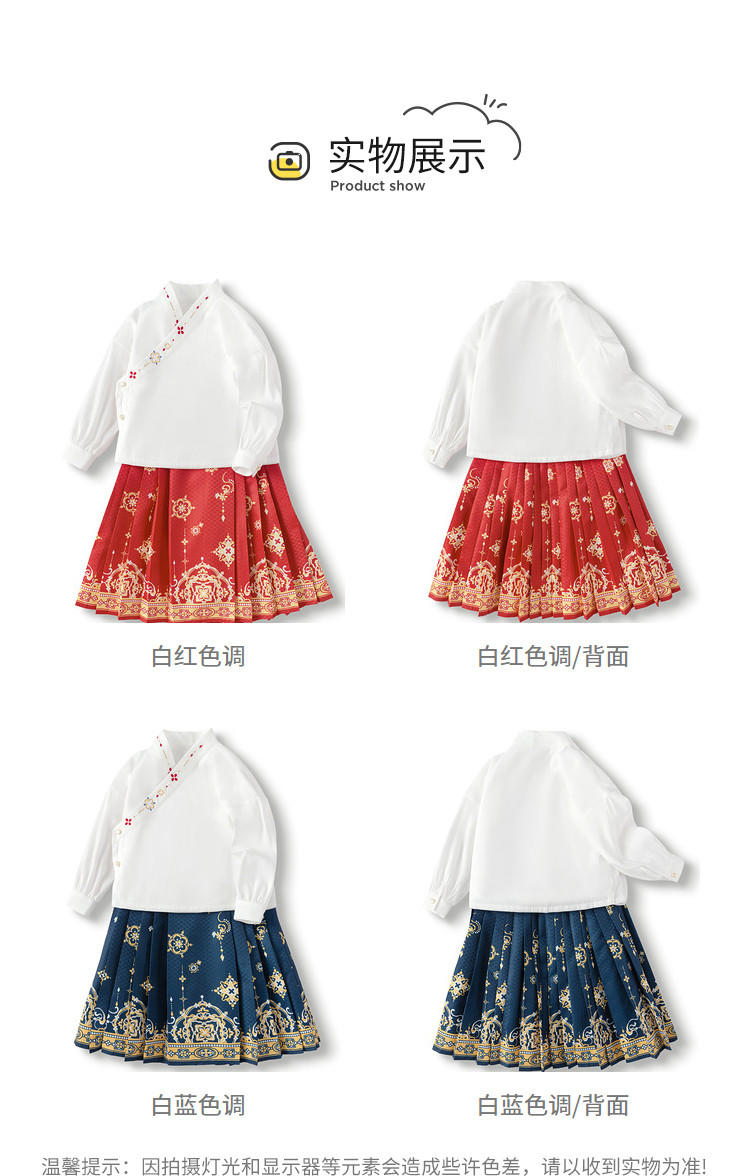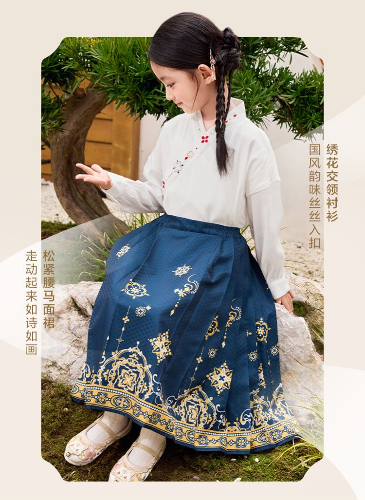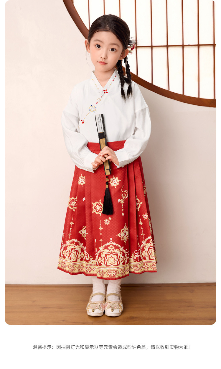 商品名称:国风两件套汉服马面裙儿童裙子长袖中大童套装春秋款古风女童裙子 209861