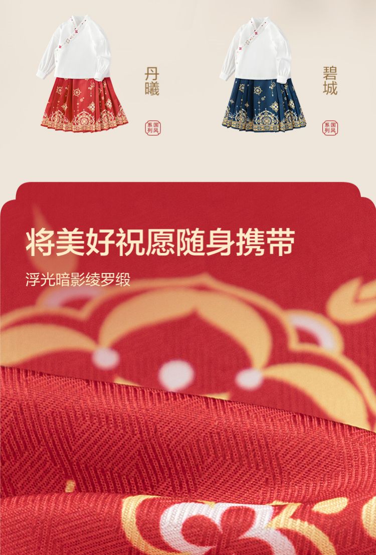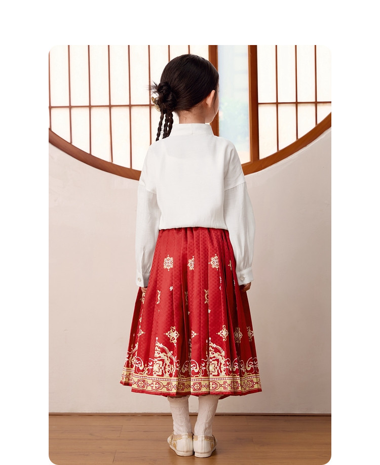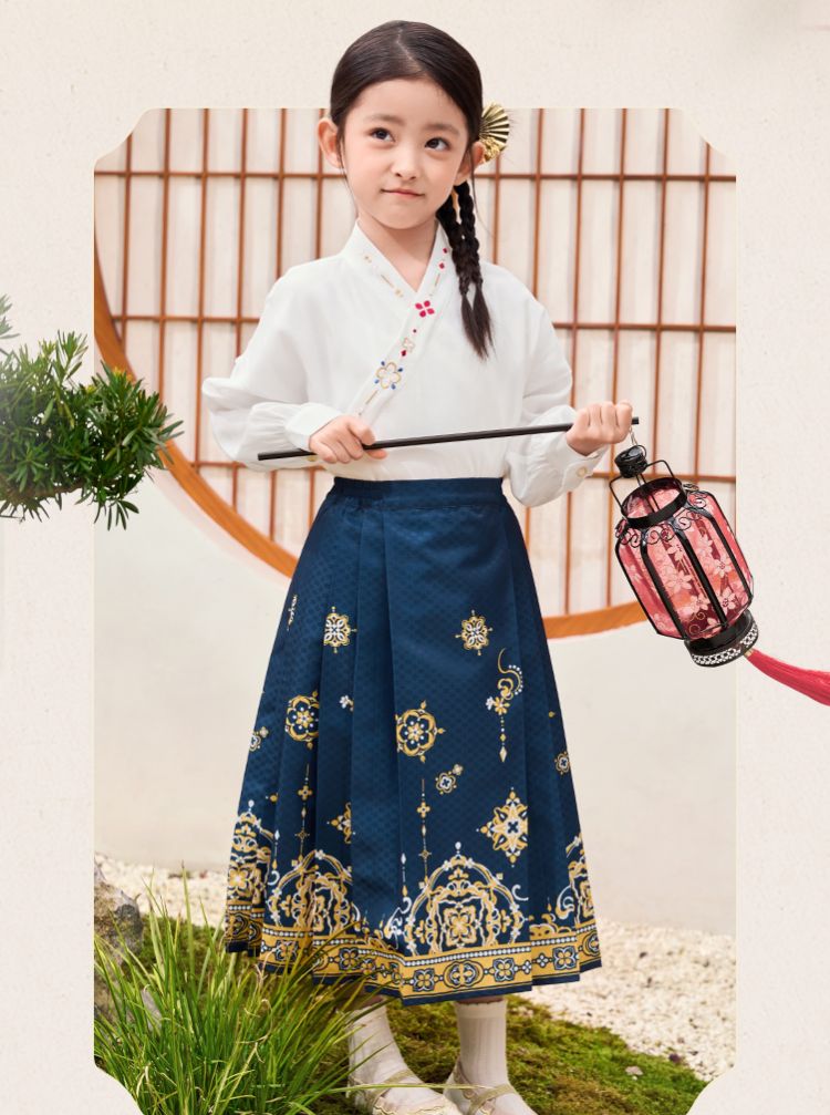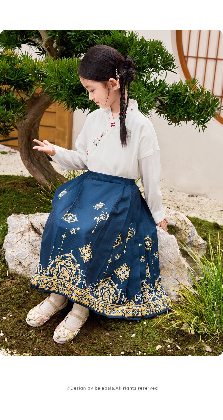 商品名称:国风两件套汉服马面裙儿童裙子长袖中大童套装春秋款古风女童裙子 209861