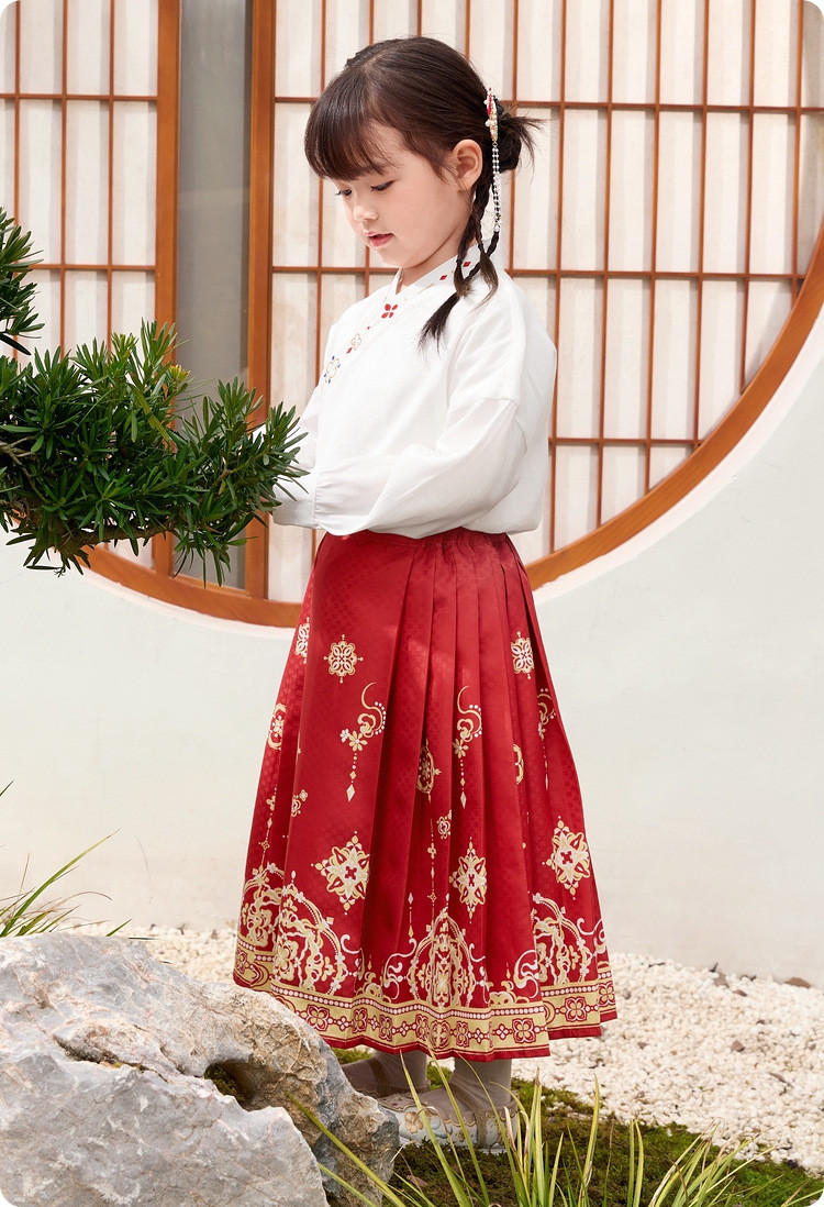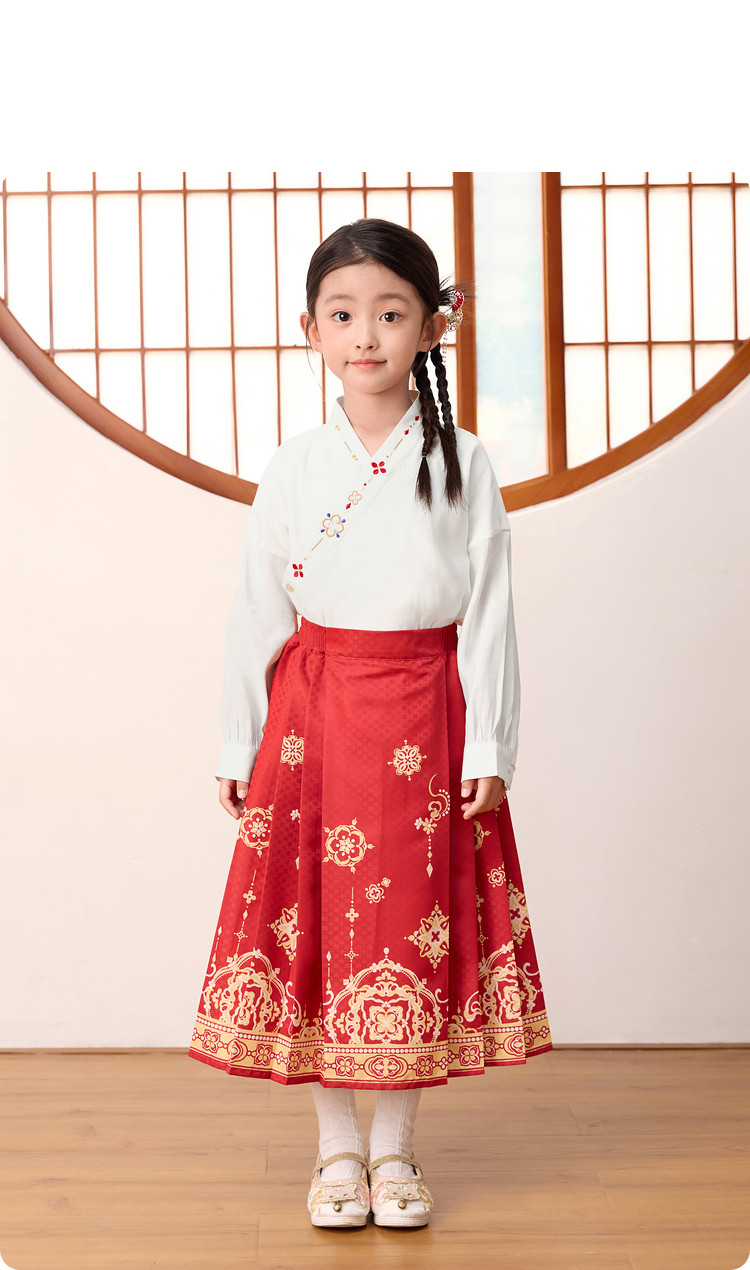 国风两件套汉服马面裙儿童裙子长袖中大童套装春秋款古风女童裙子 209861