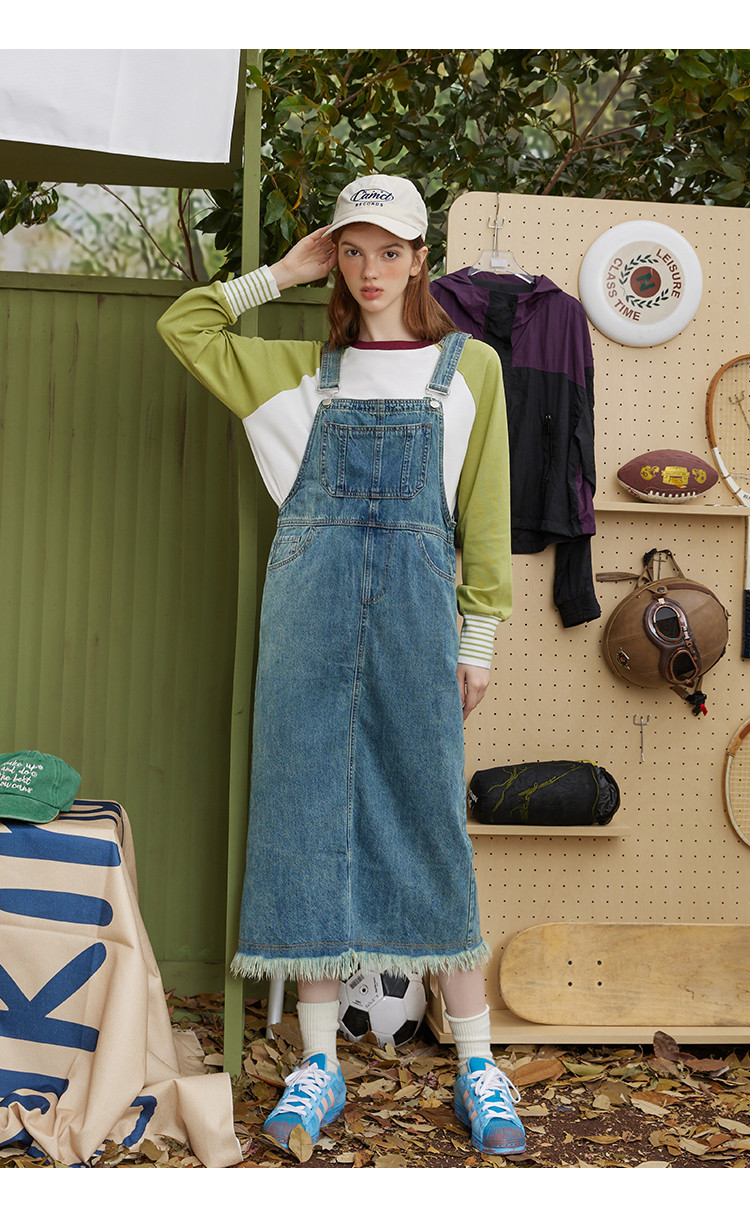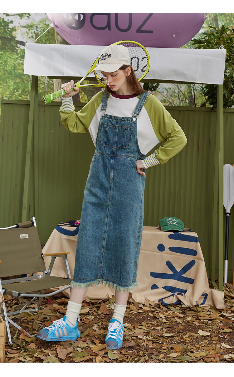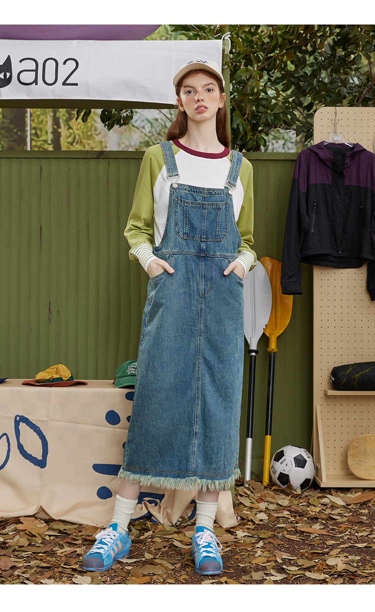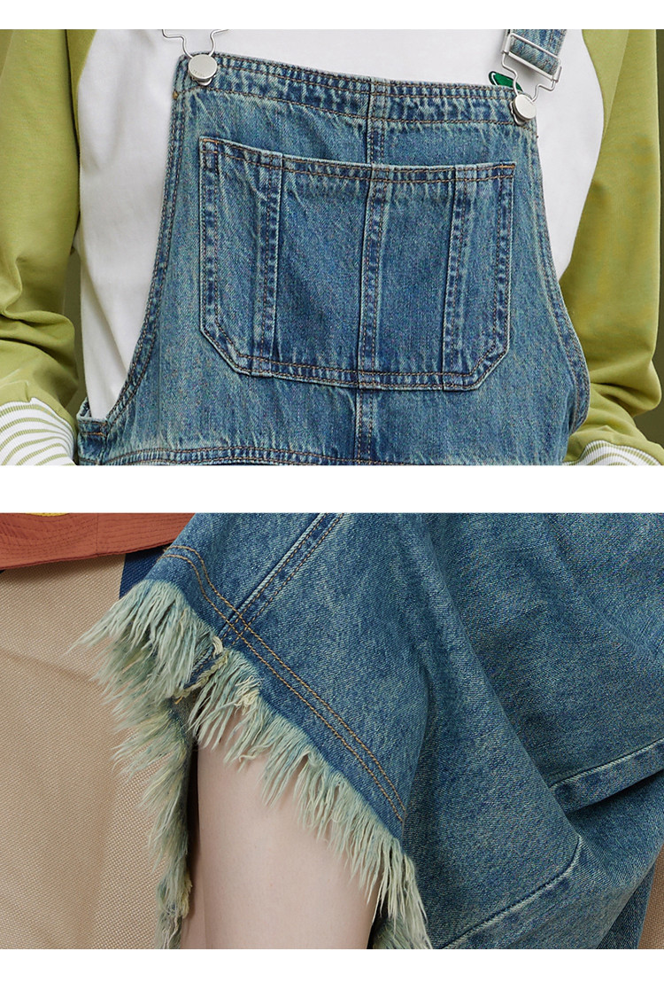 商品名称:多口袋流苏设计街头风背带裤夏季个性休闲百搭牛仔连衣裙 276381