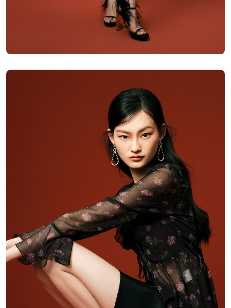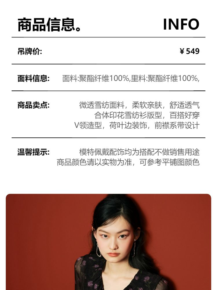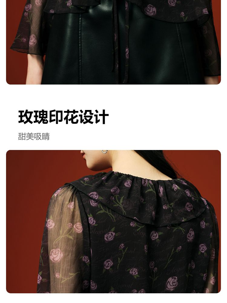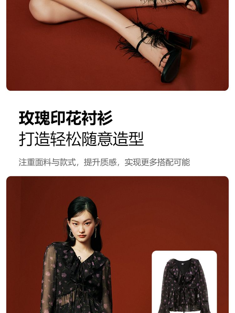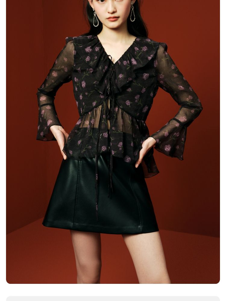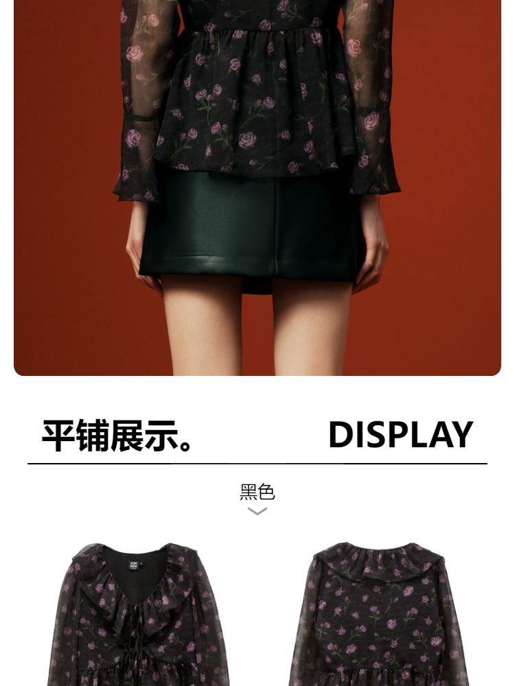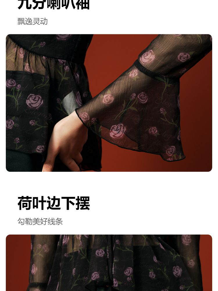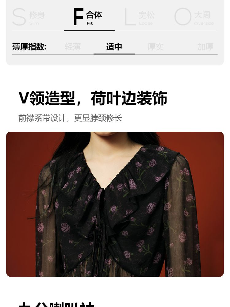 商品名称:【玫瑰印花】2024春夏新款碎花V领雪纺衫九分袖衬衫女 253073