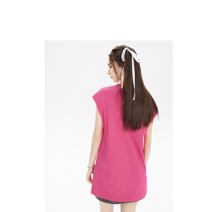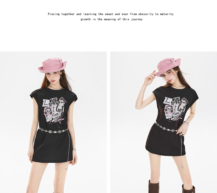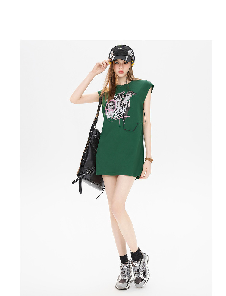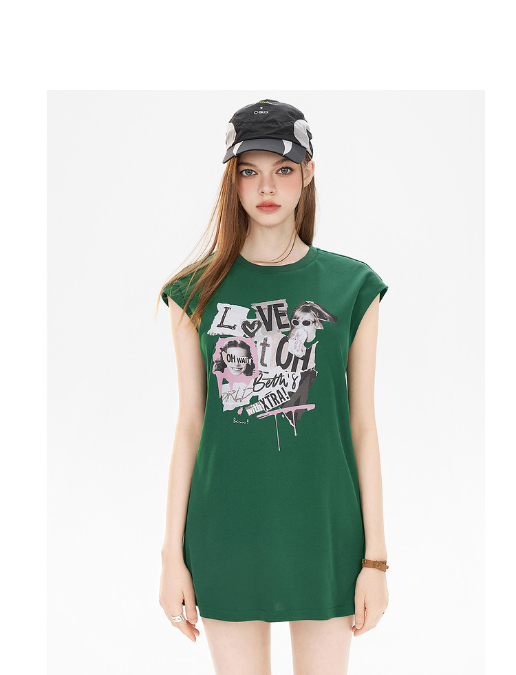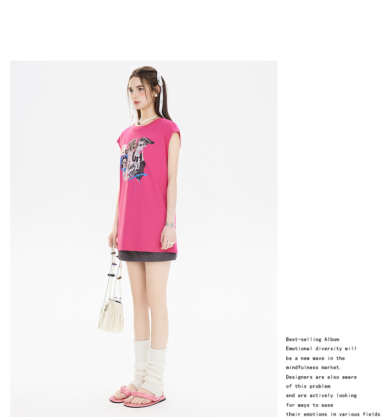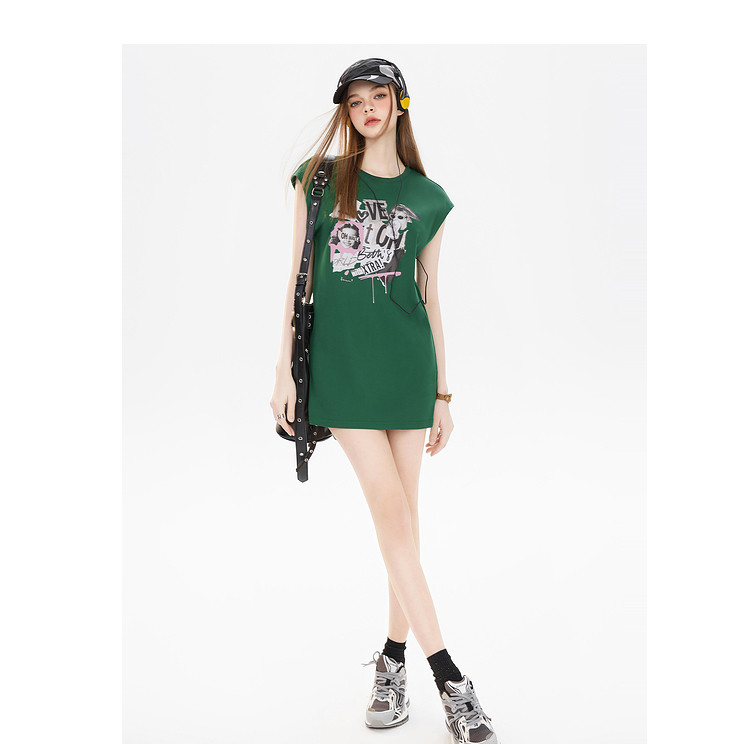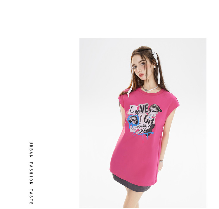 商品名称:夏装美式复古辣妹T恤女无袖印花拼接设计感上衣 483156