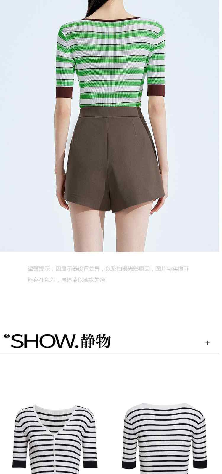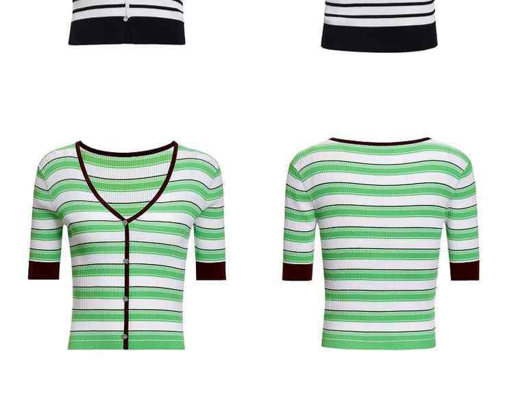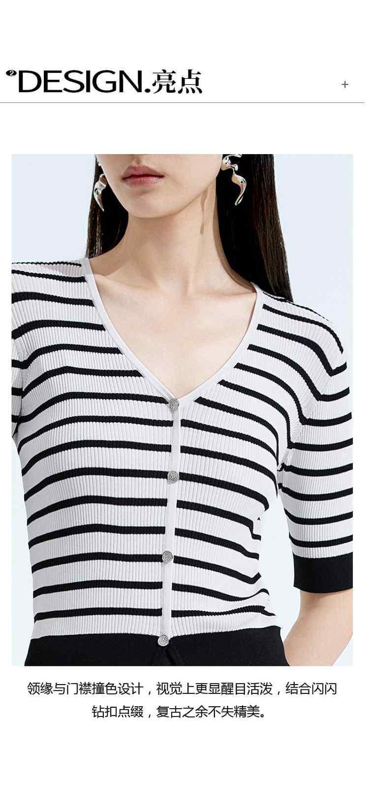 商品名称:黑标系列 夏季V领撞边条纹短款短袖针织衫女 252047