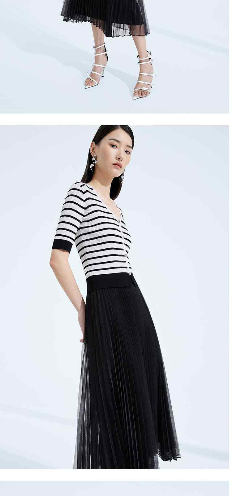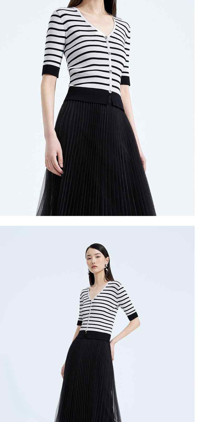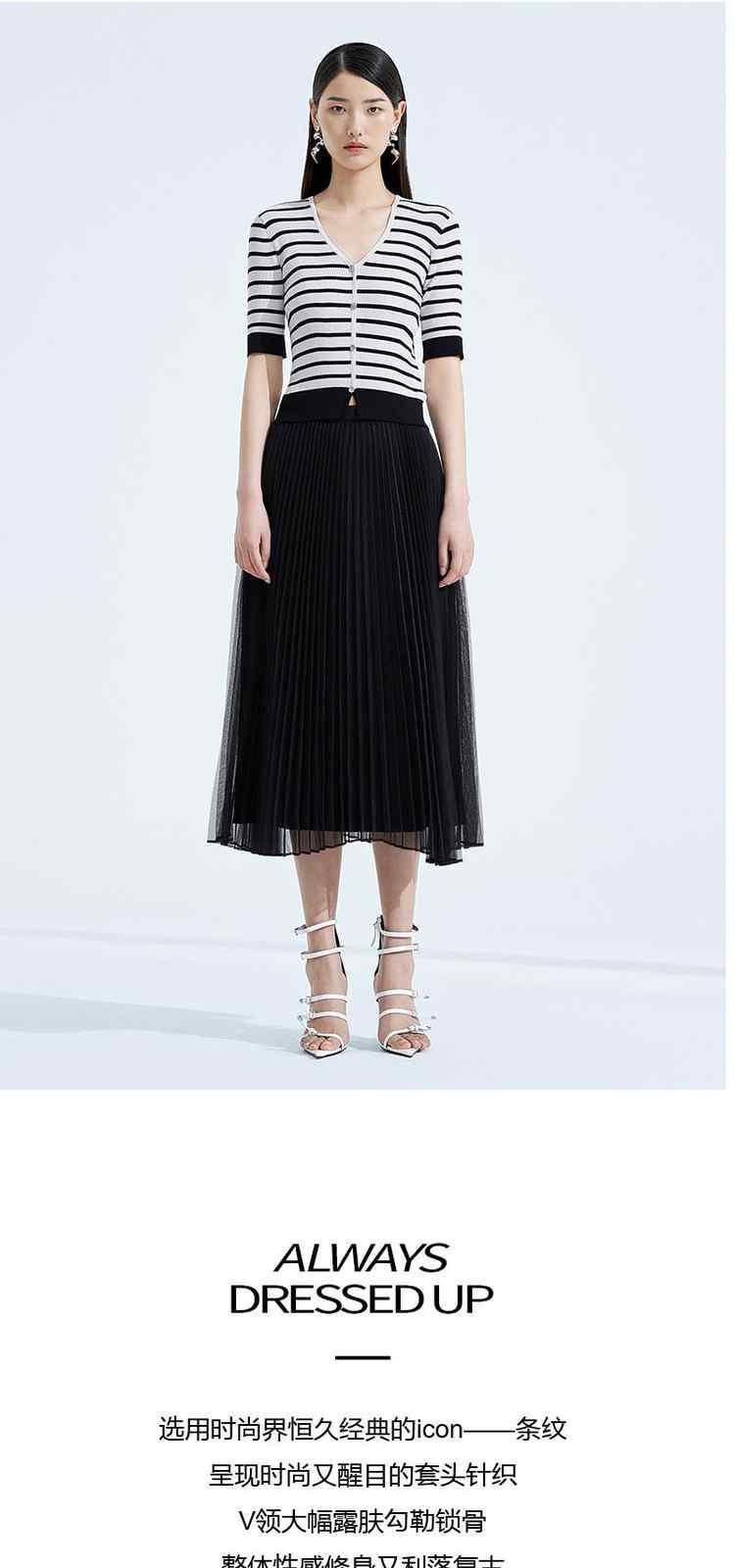 商品名称:黑标系列 夏季V领撞边条纹短款短袖针织衫女 252047