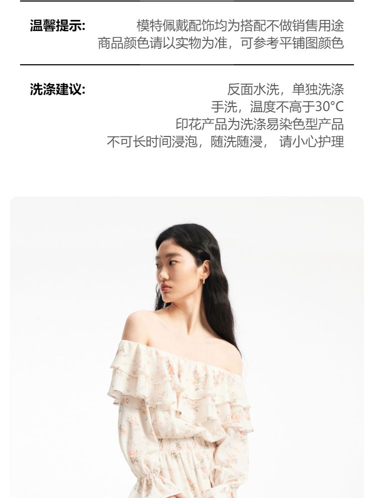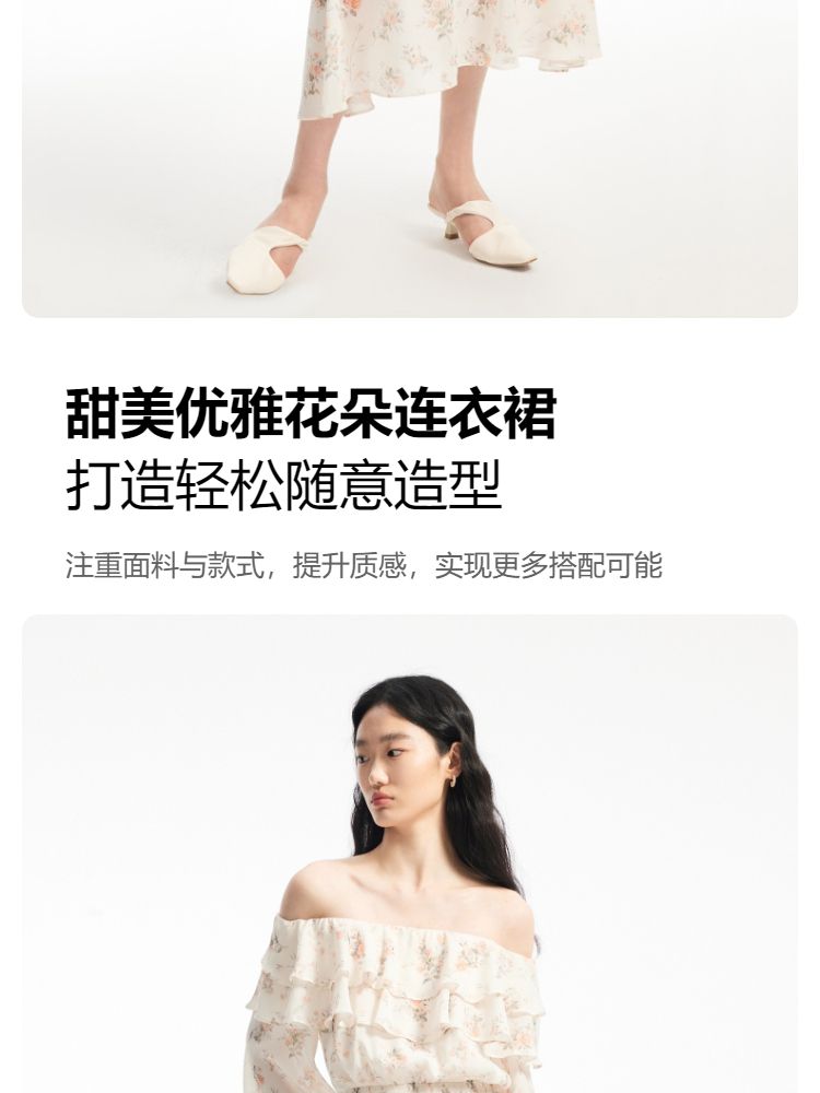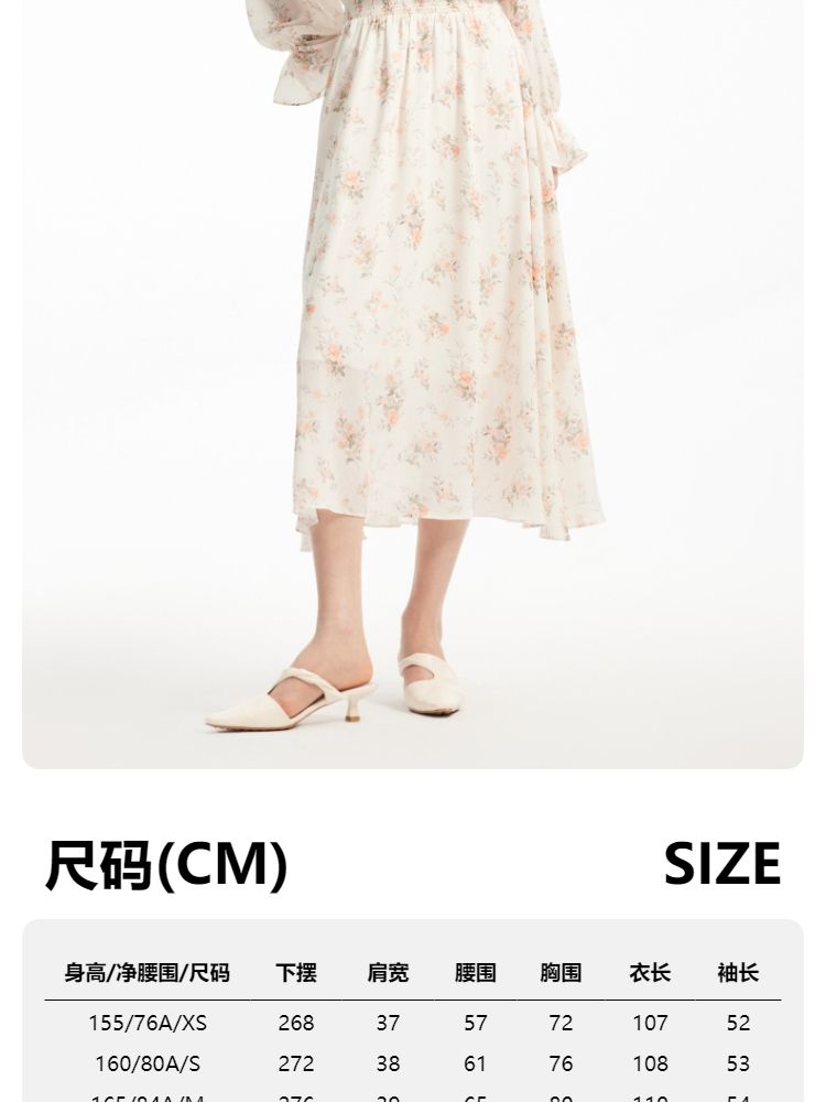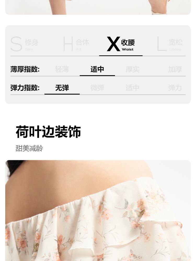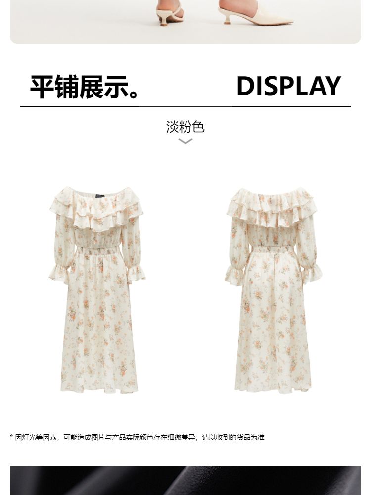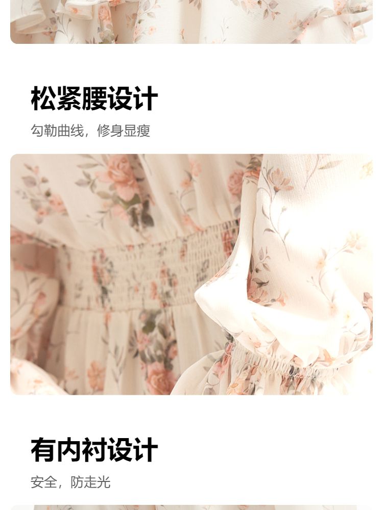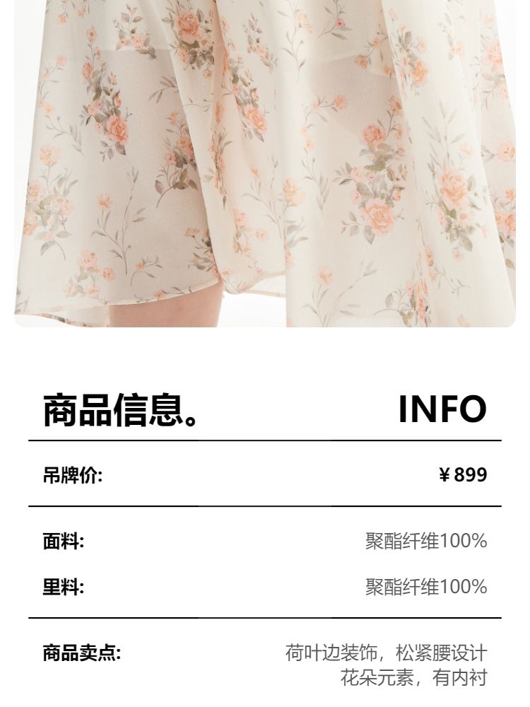 商品名称:【优雅花朵】荷叶边松紧腰有内衬时尚通勤连衣裙 077201