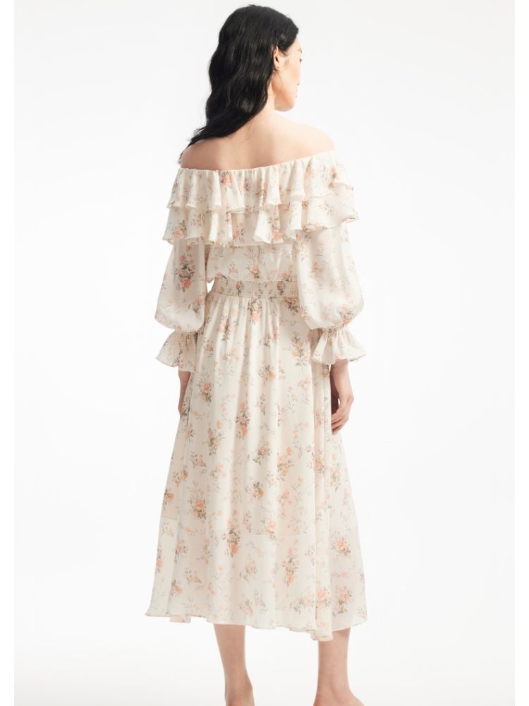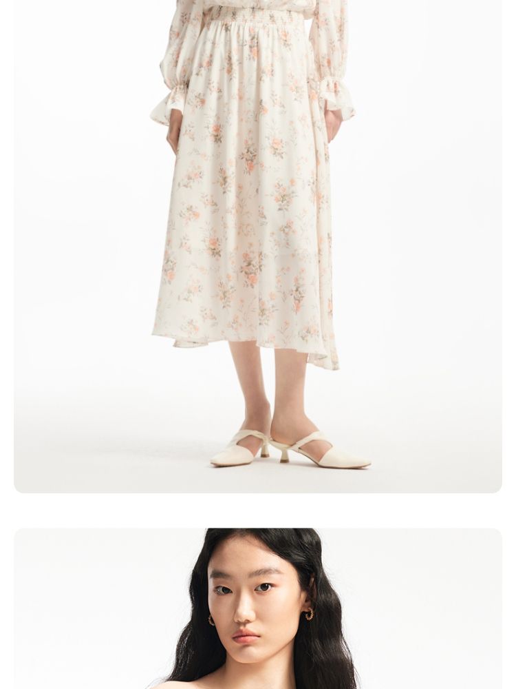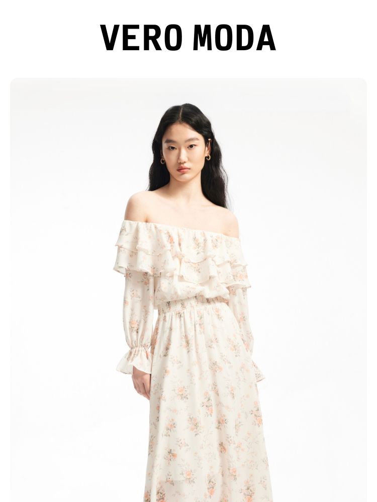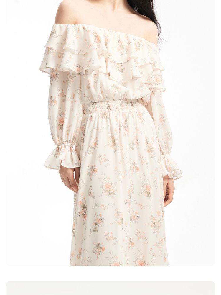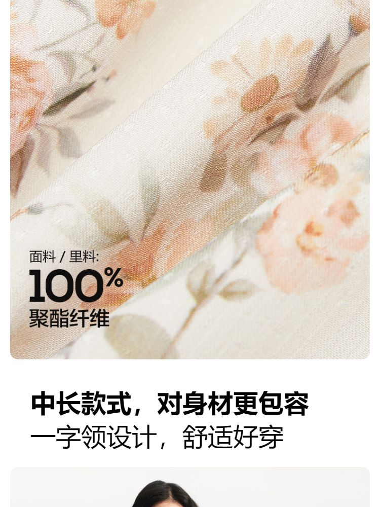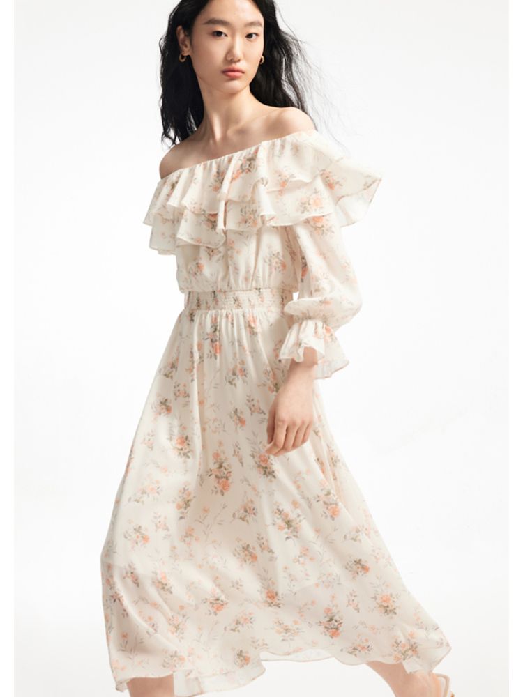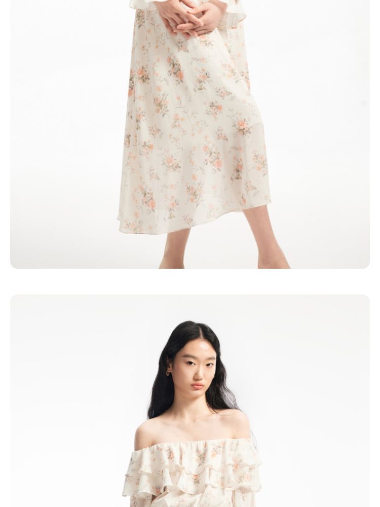 商品名称:【优雅花朵】荷叶边松紧腰有内衬时尚通勤连衣裙 077201