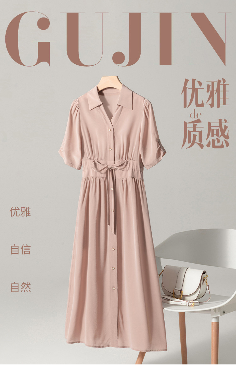 【100%桑蚕丝】衬衫裙系带真丝连衣裙女夏季薄款高级感裙子 590803