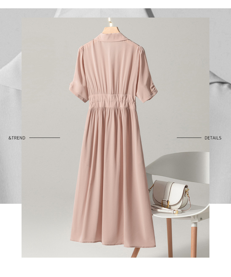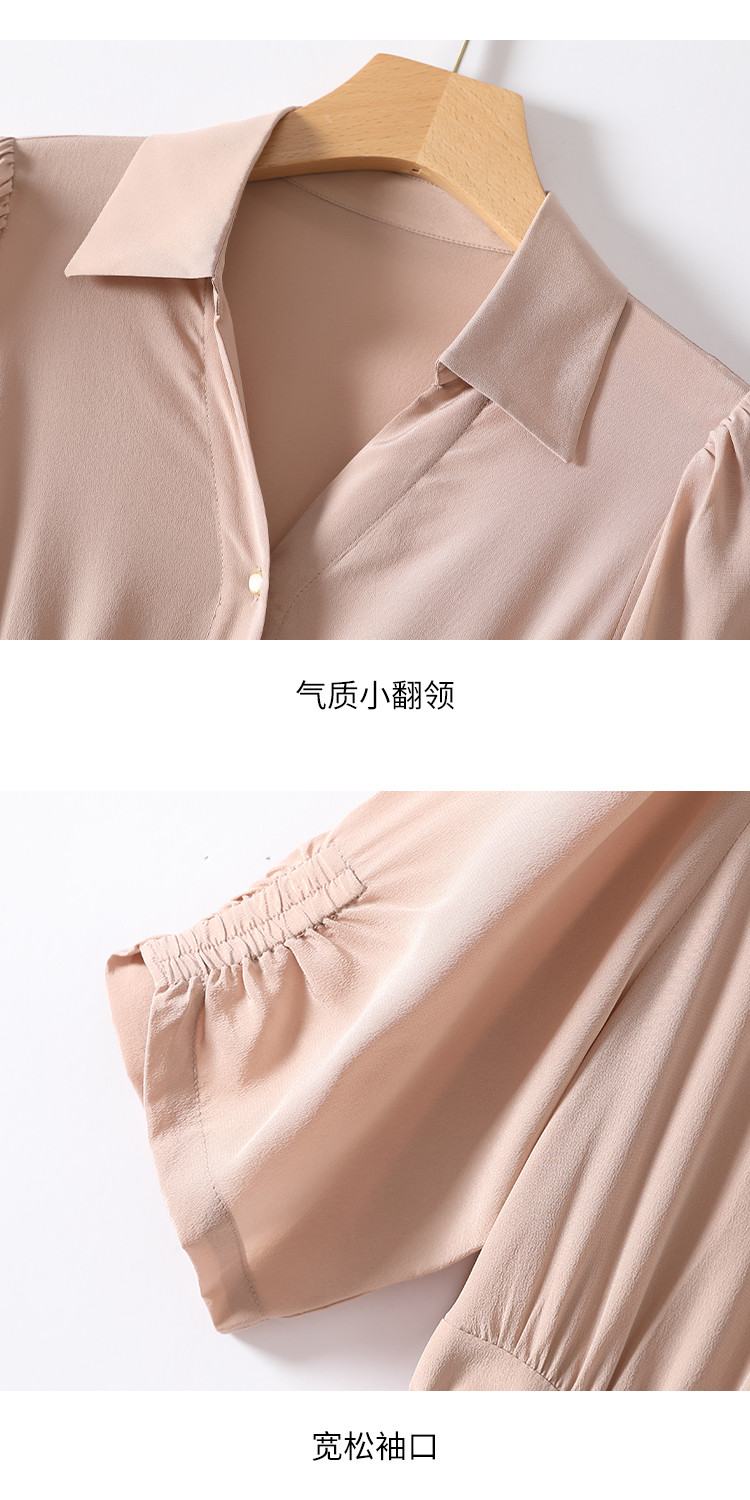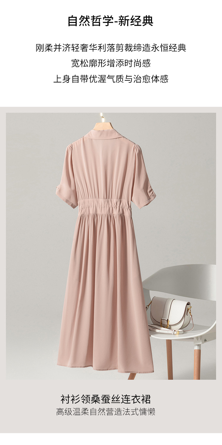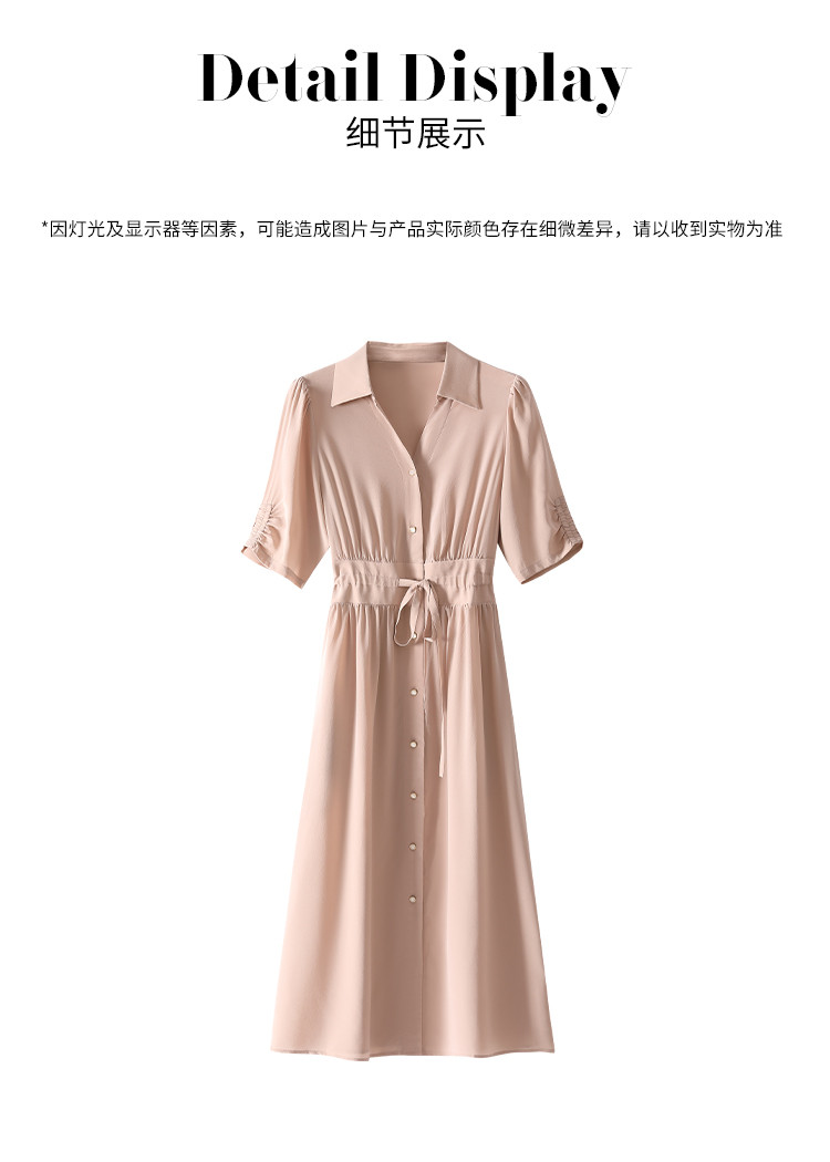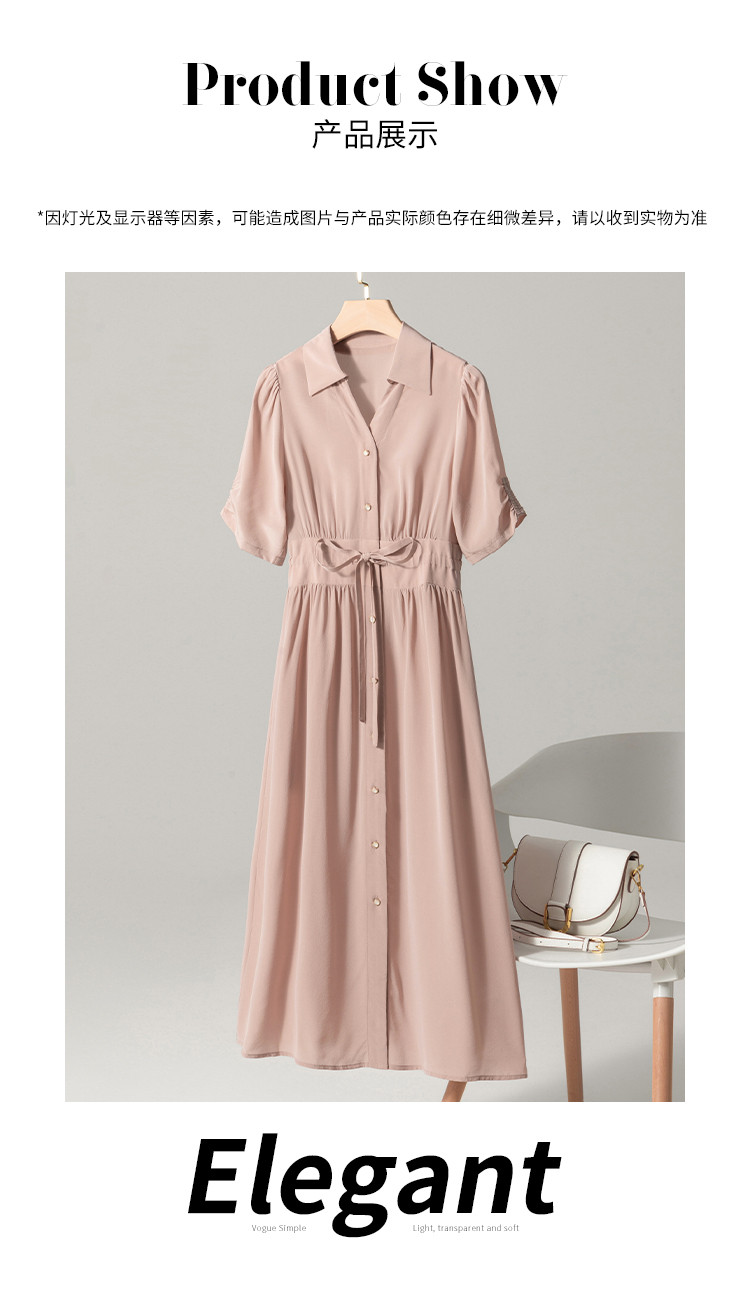 商品名称:【100%桑蚕丝】衬衫裙系带真丝连衣裙女夏季薄款高级感裙子 590803