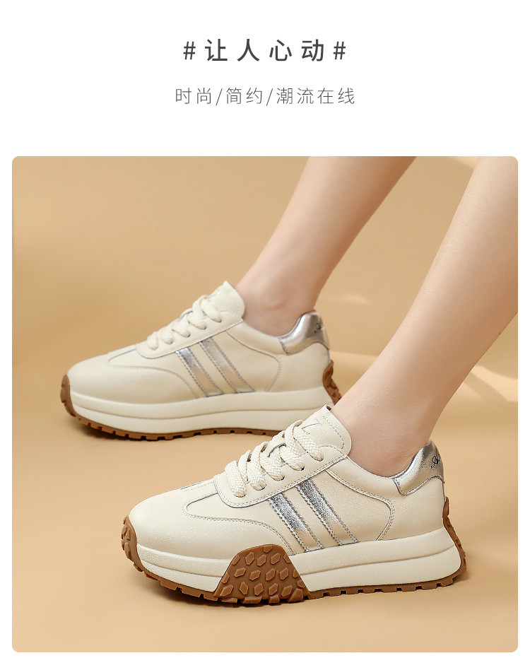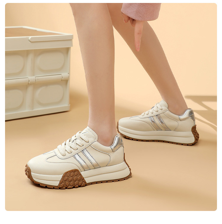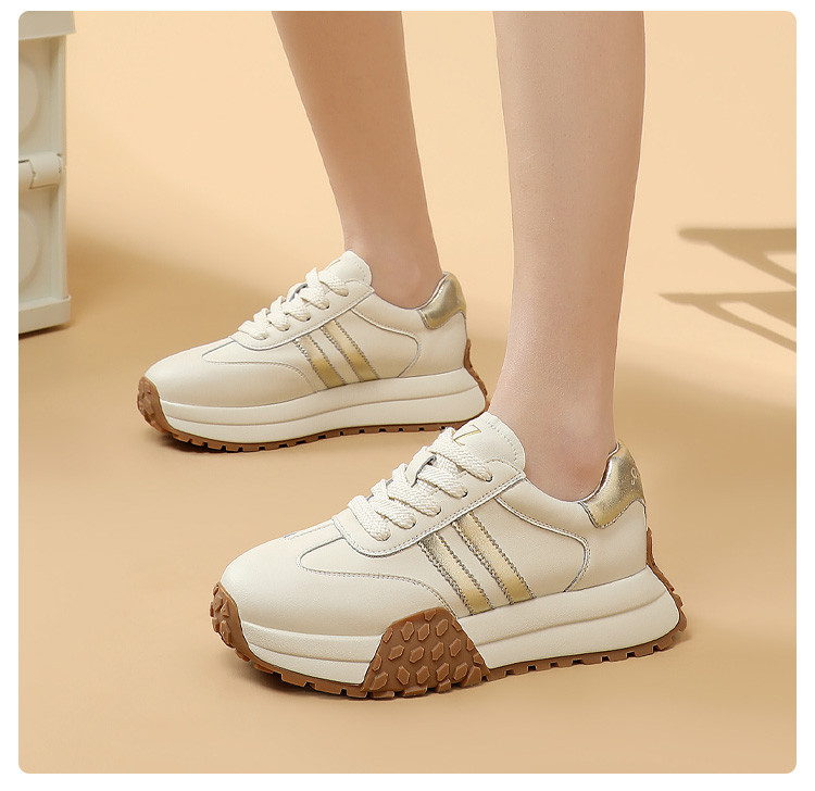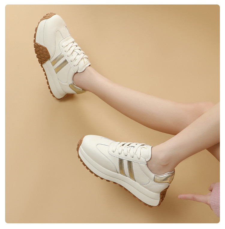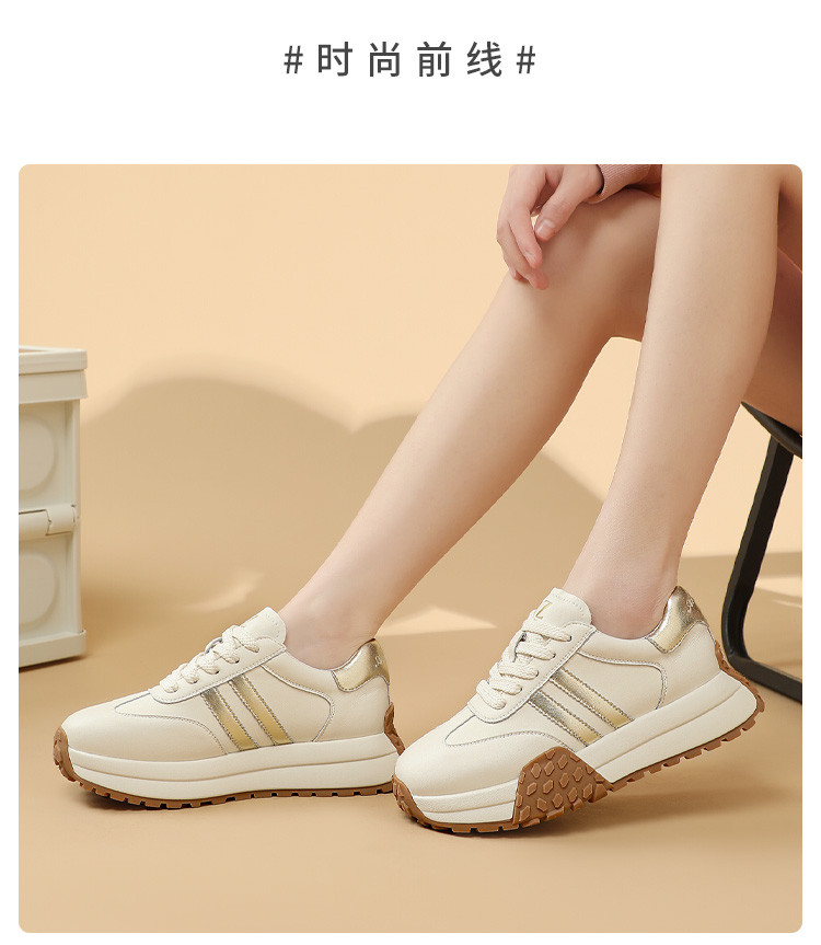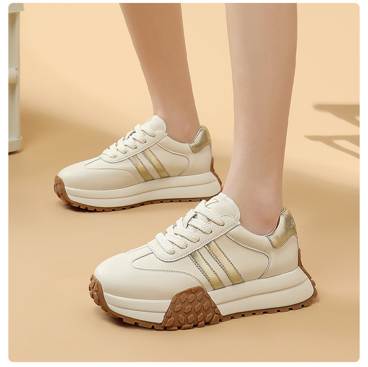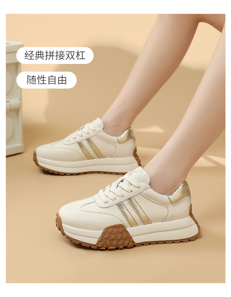 时尚经典个性潮流百搭厚底德训鞋女低帮休闲鞋增高舒适系带小白鞋 722508