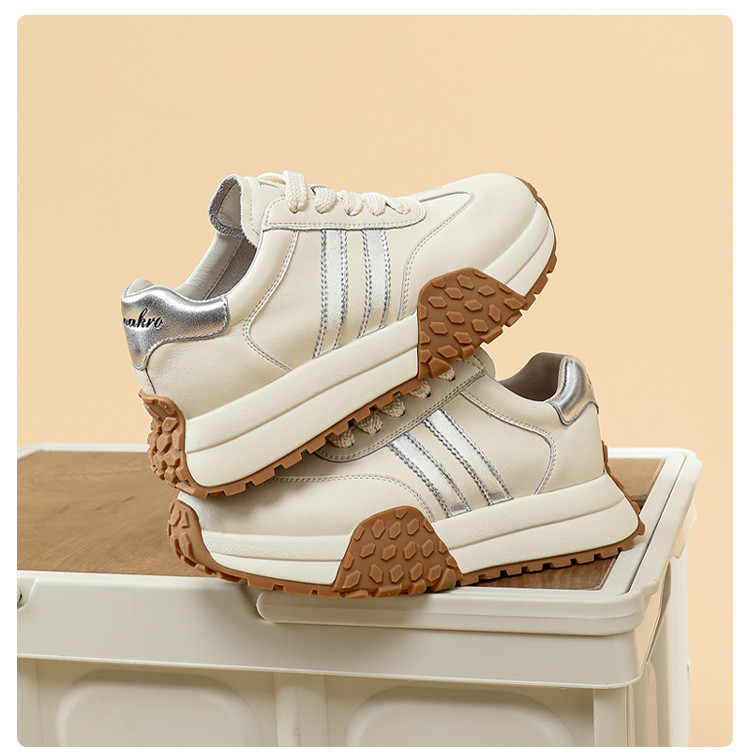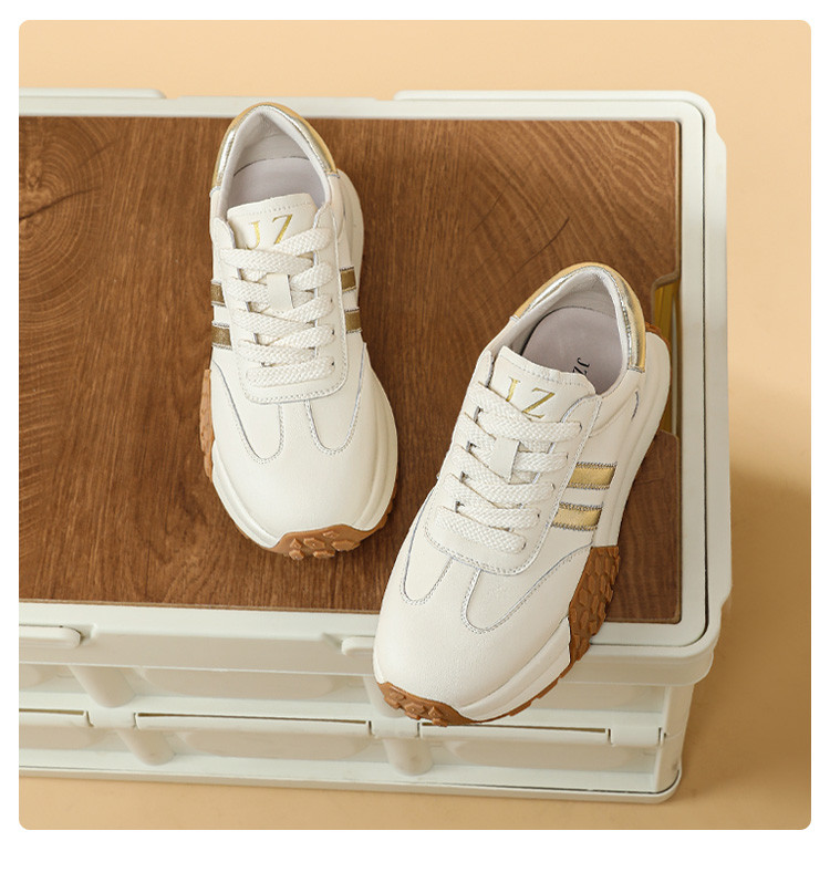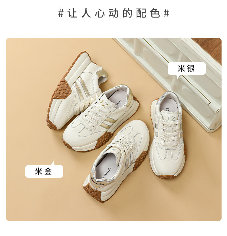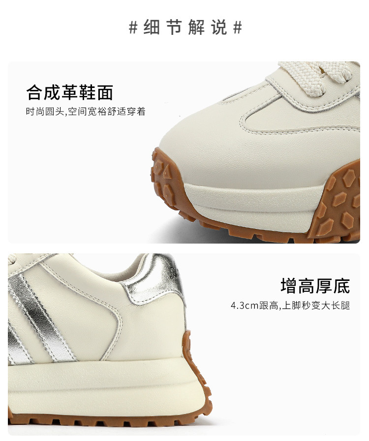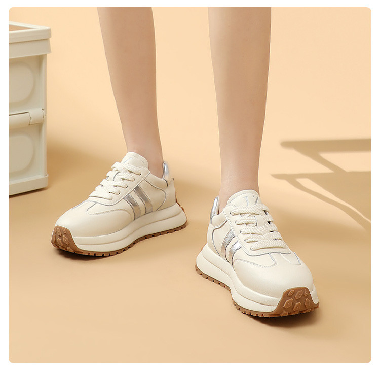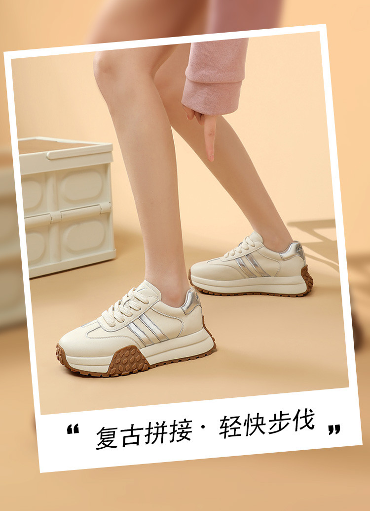 时尚经典个性潮流百搭厚底德训鞋女低帮休闲鞋增高舒适系带小白鞋 722508