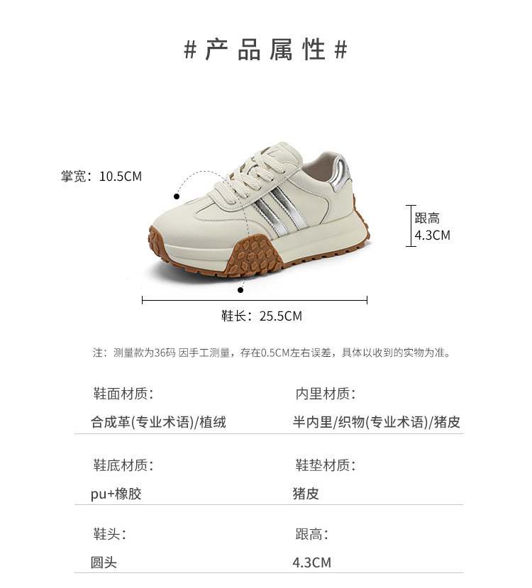 商品名称:时尚经典个性潮流百搭厚底德训鞋女低帮休闲鞋增高舒适系带小白鞋 722508