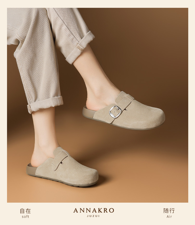 安娜蔻25夏季时尚舒适百搭勃肯鞋复古休闲平底拖鞋包头外穿女鞋 889356
