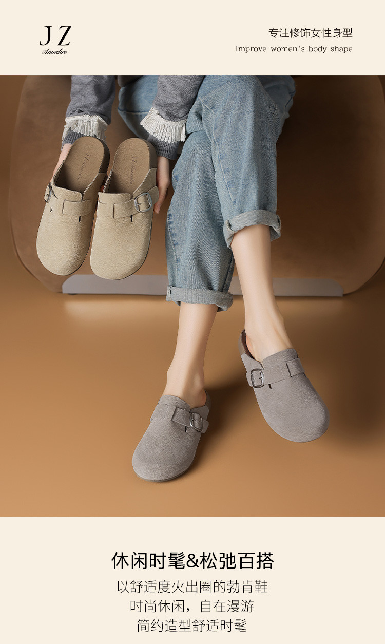 商品名称:安娜蔻25夏季时尚舒适百搭勃肯鞋复古休闲平底拖鞋包头外穿女鞋 889356