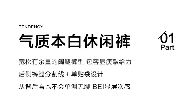 商品名称:【设计感休闲阔腿裤】夏款复古百搭分割线装饰慵懒感长裤 453122