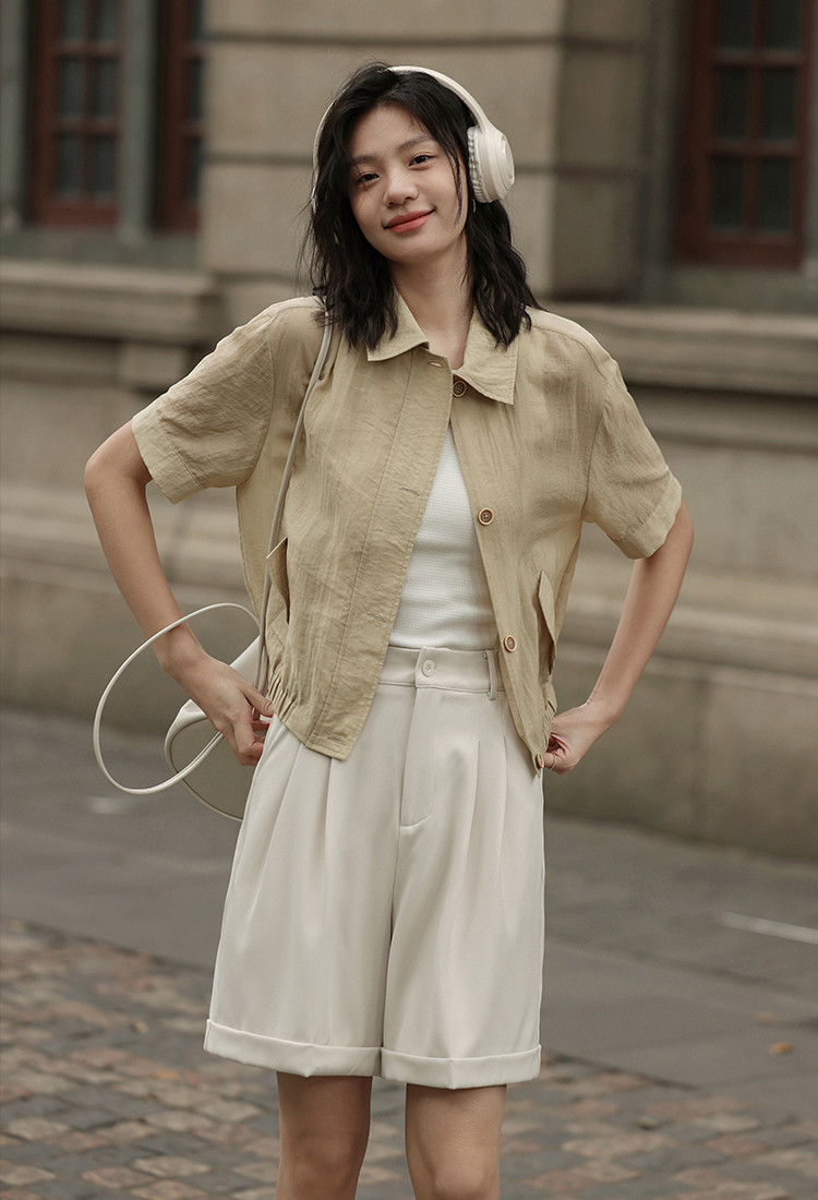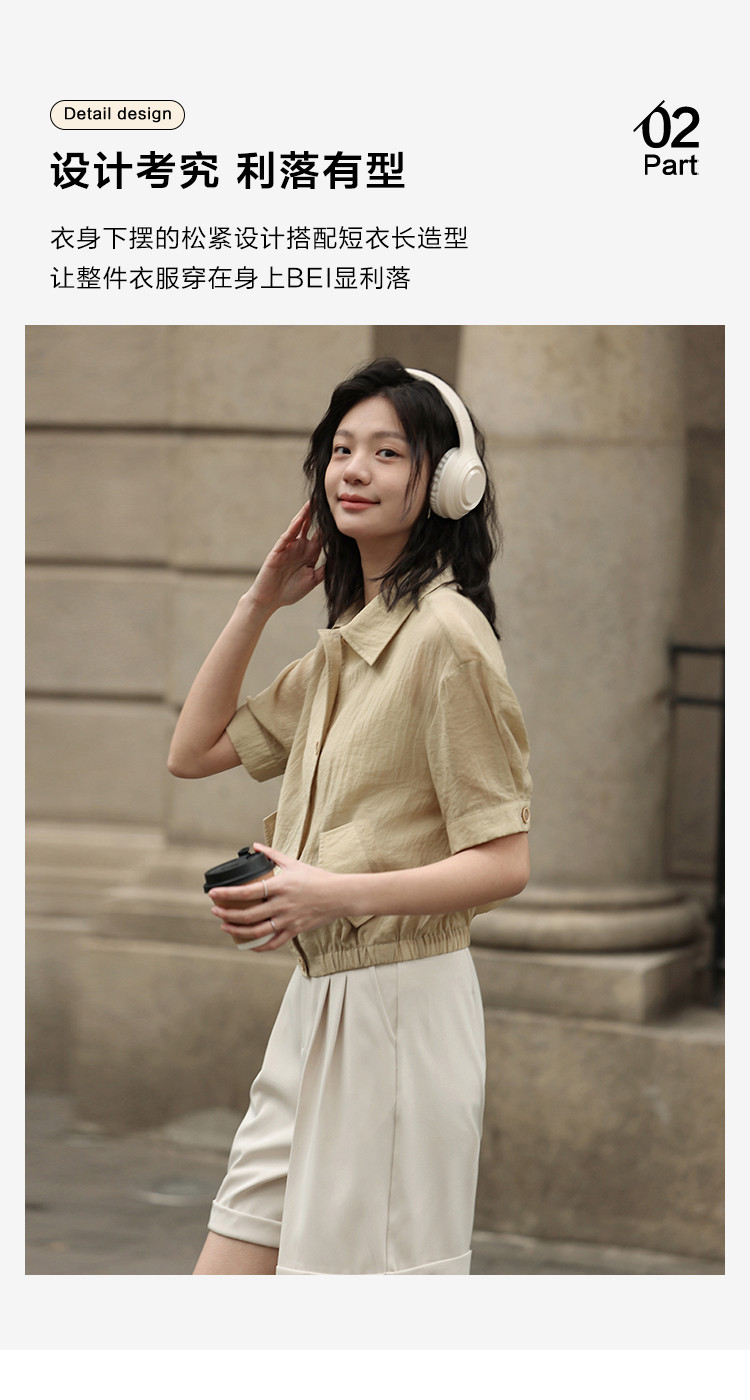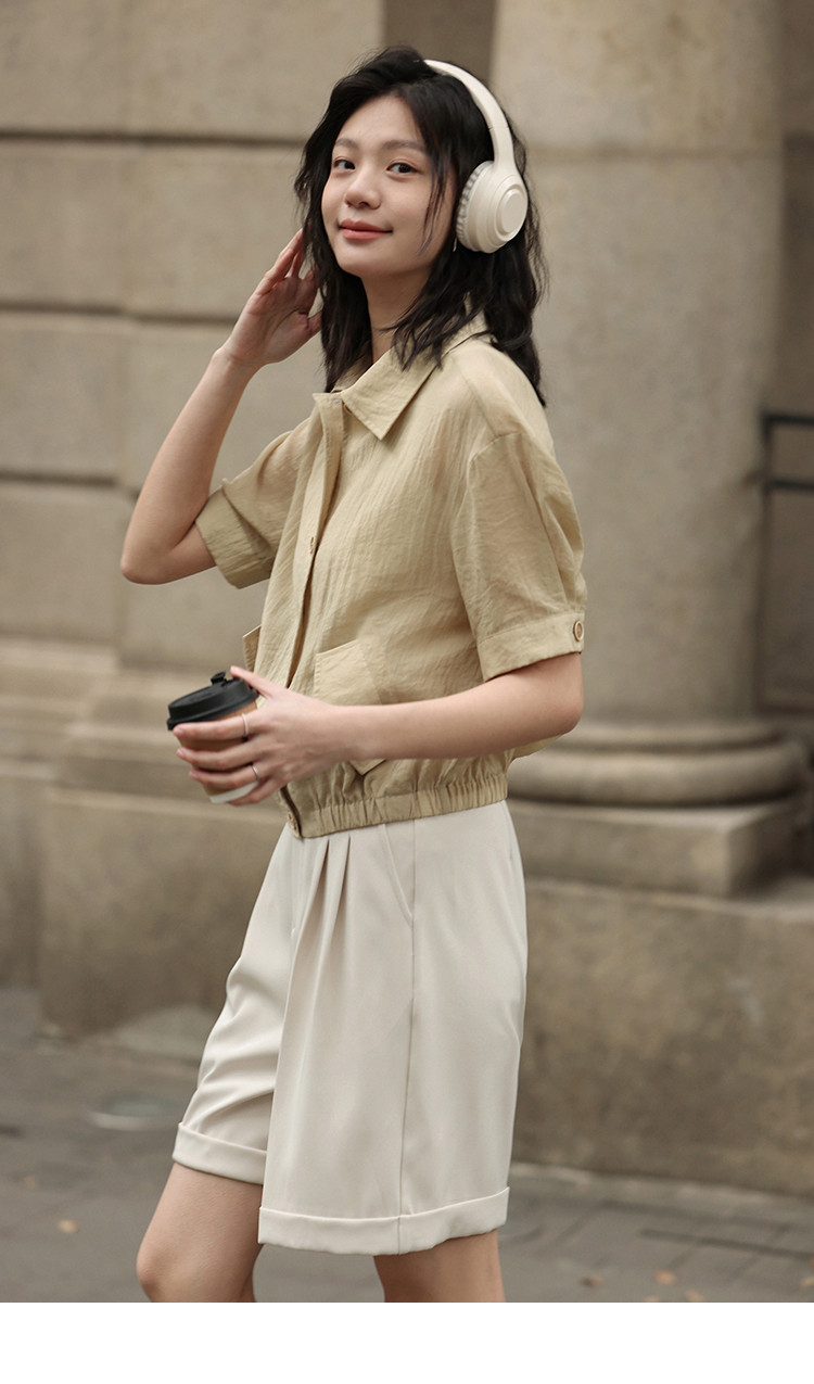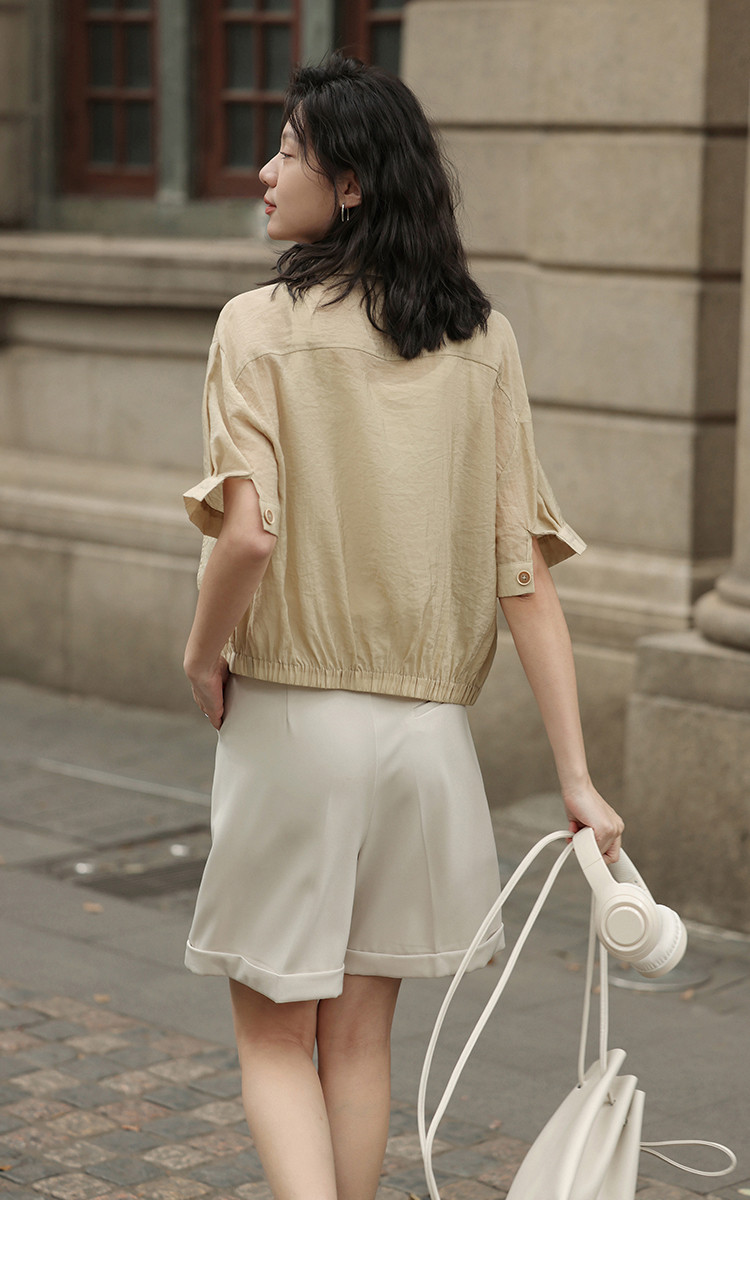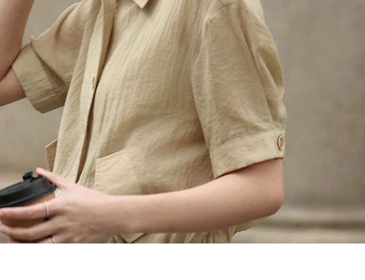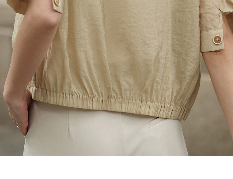 商品名称:【简约轻薄衬衫】夏款浅卡其百搭宽松休闲短袖轻薄上衣女 358914
