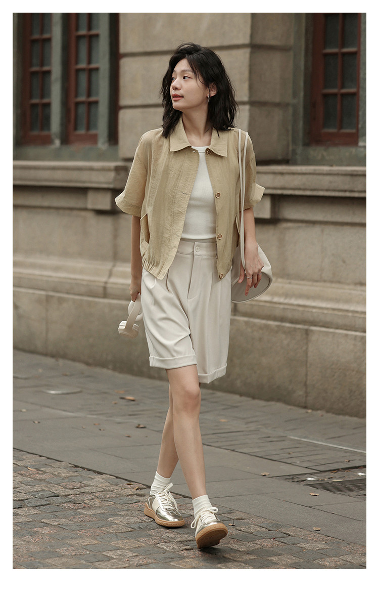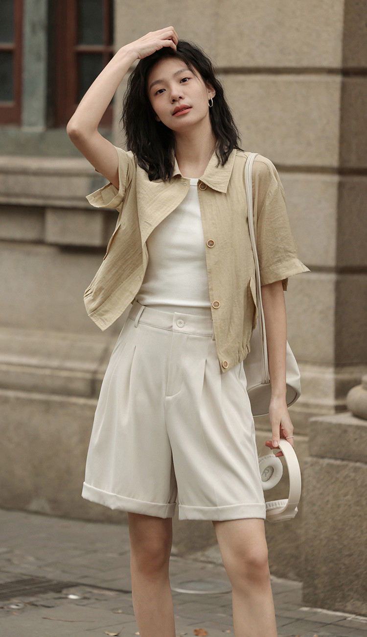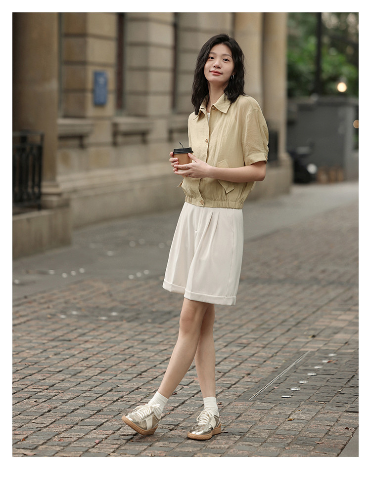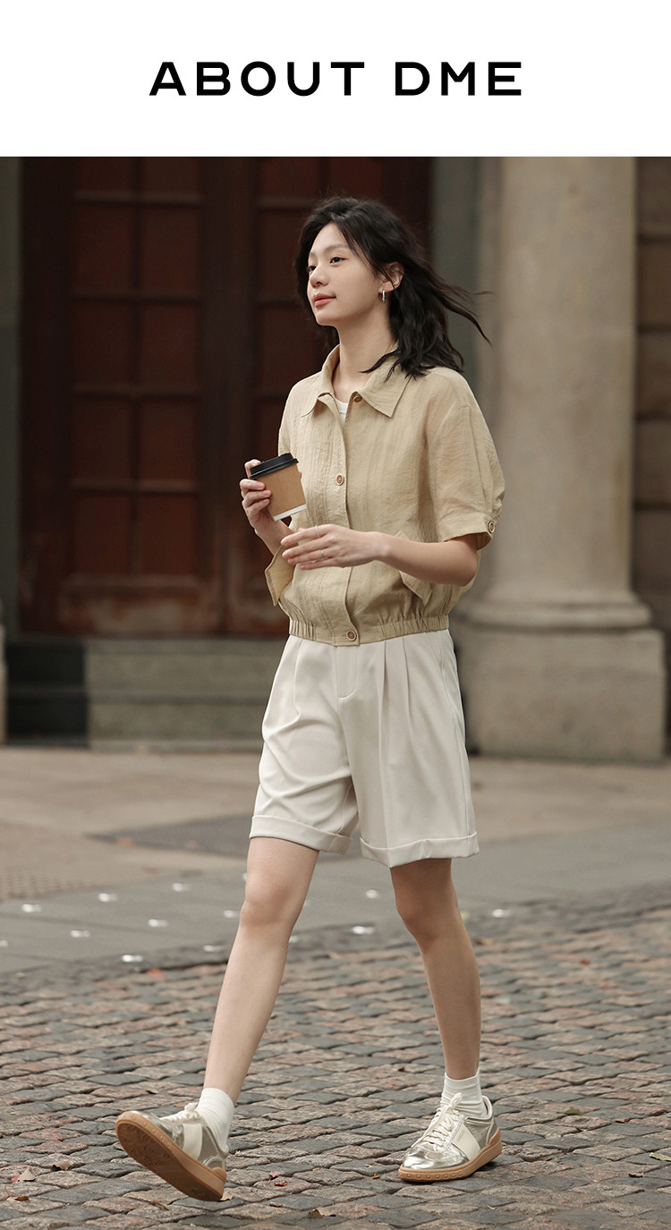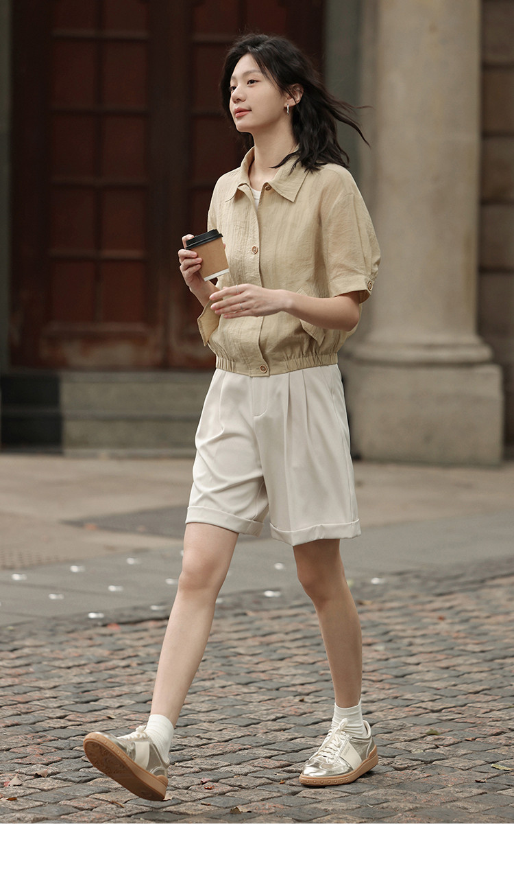 商品名称:【简约轻薄衬衫】夏款浅卡其百搭宽松休闲短袖轻薄上衣女 358914
