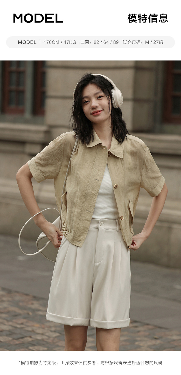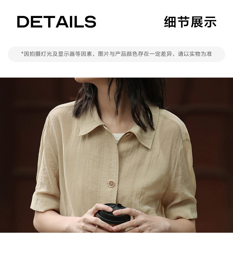 【简约轻薄衬衫】夏款浅卡其百搭宽松休闲短袖轻薄上衣女 358914