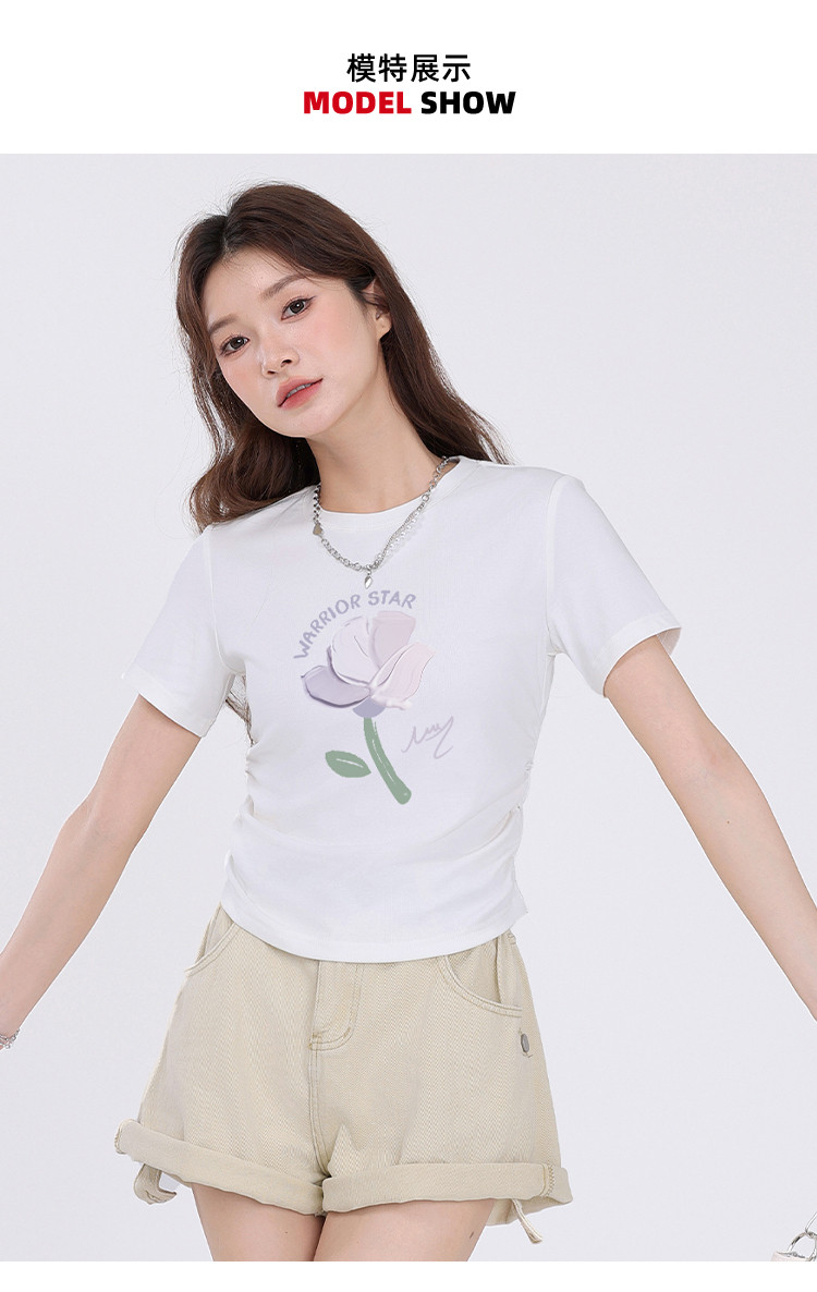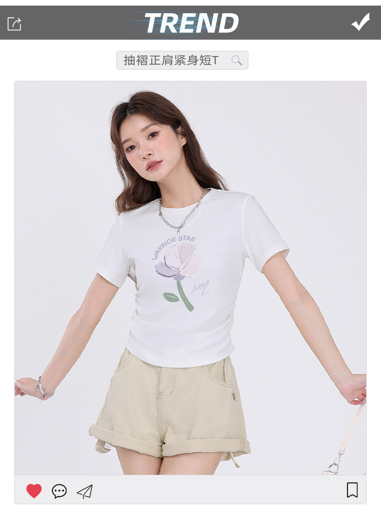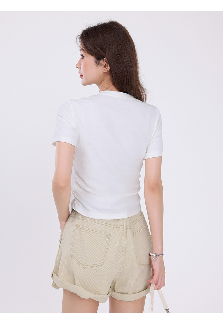 商品名称:【女装正肩】女式短款小个子T恤紧身显瘦夏季小众抽褶设计感短袖 356179