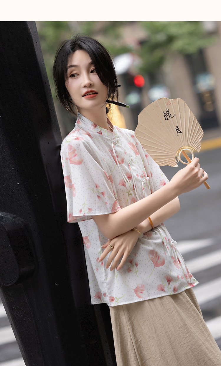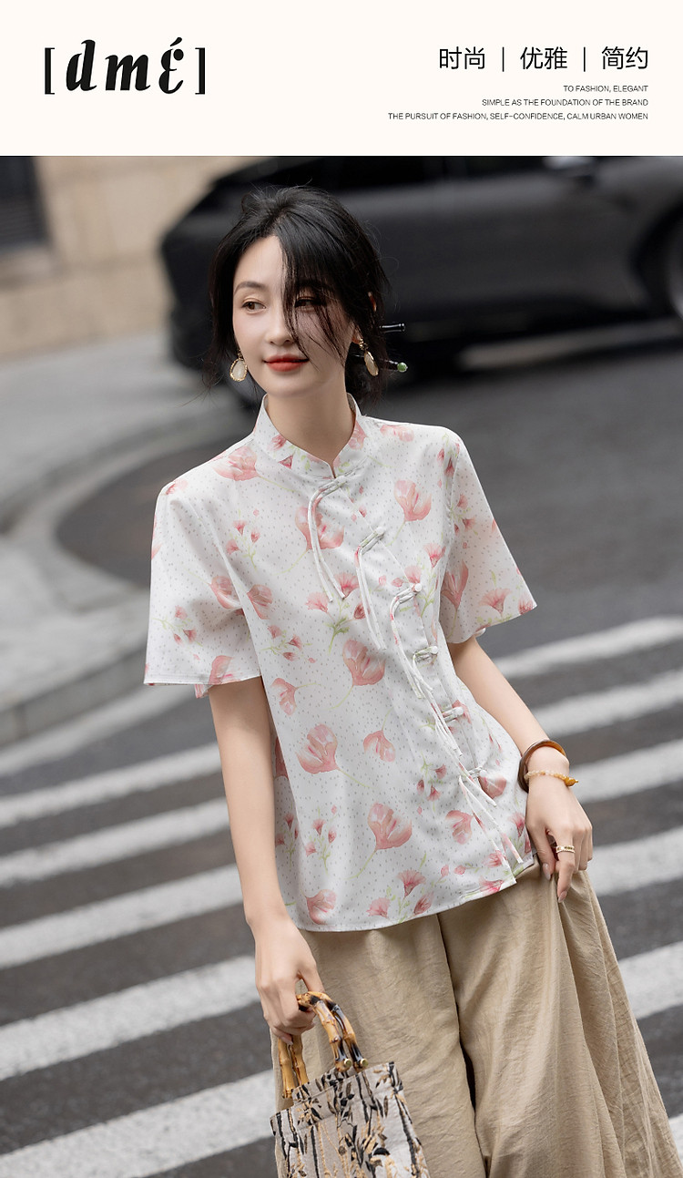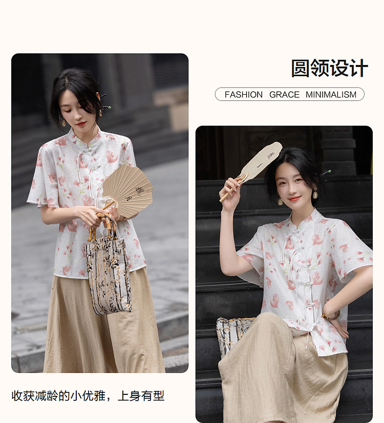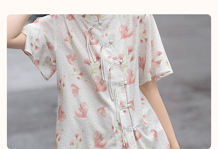 商品名称:【桃里桃气】夏国风新中式高清印花衬衫立领盘扣好搭衬衣女装上衣 245441