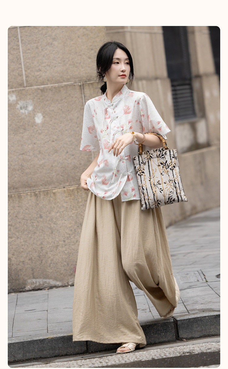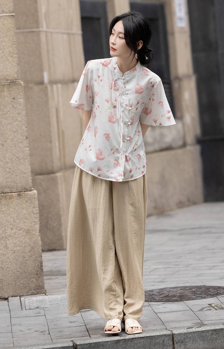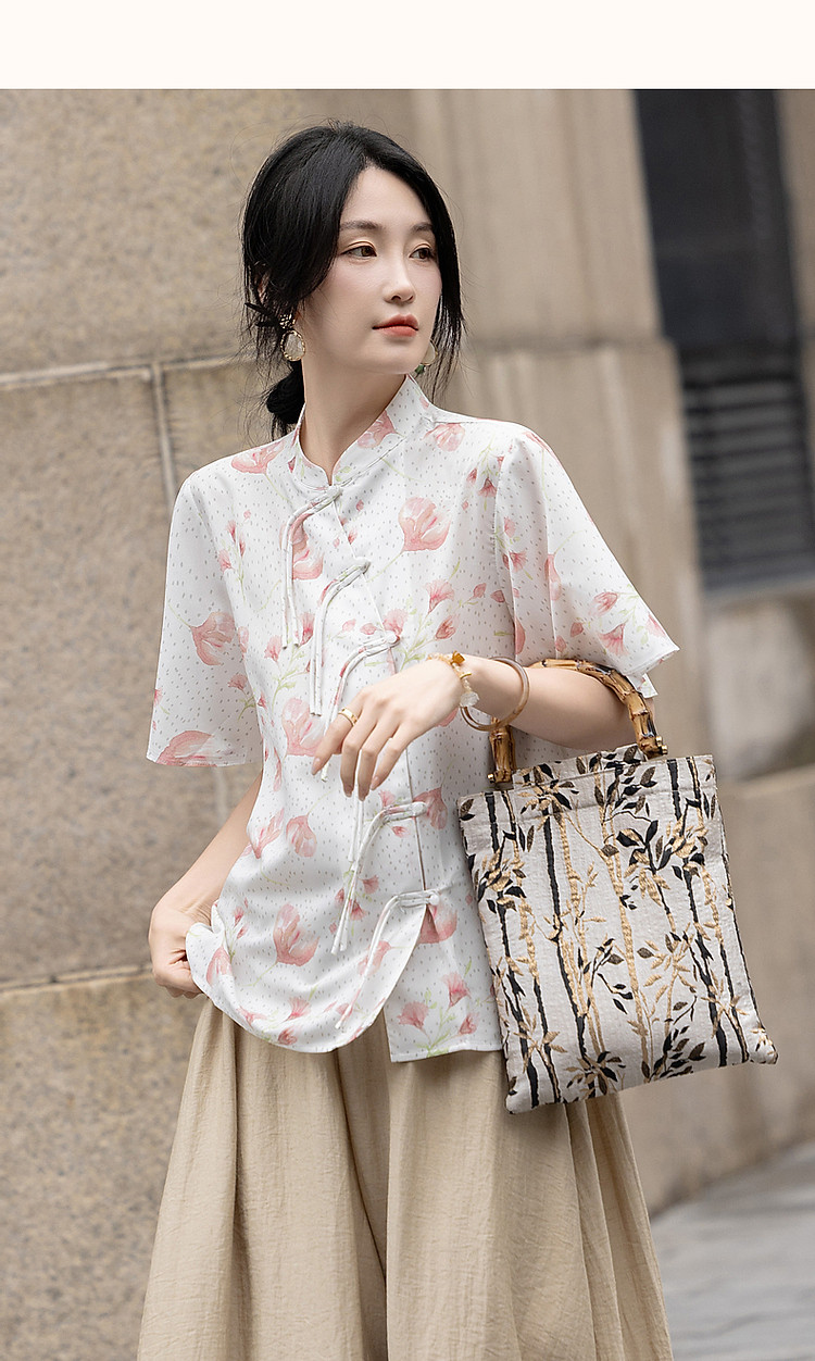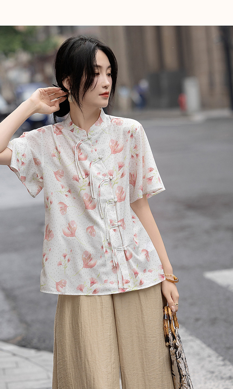 商品名称:【桃里桃气】夏国风新中式高清印花衬衫立领盘扣好搭衬衣女装上衣 245441