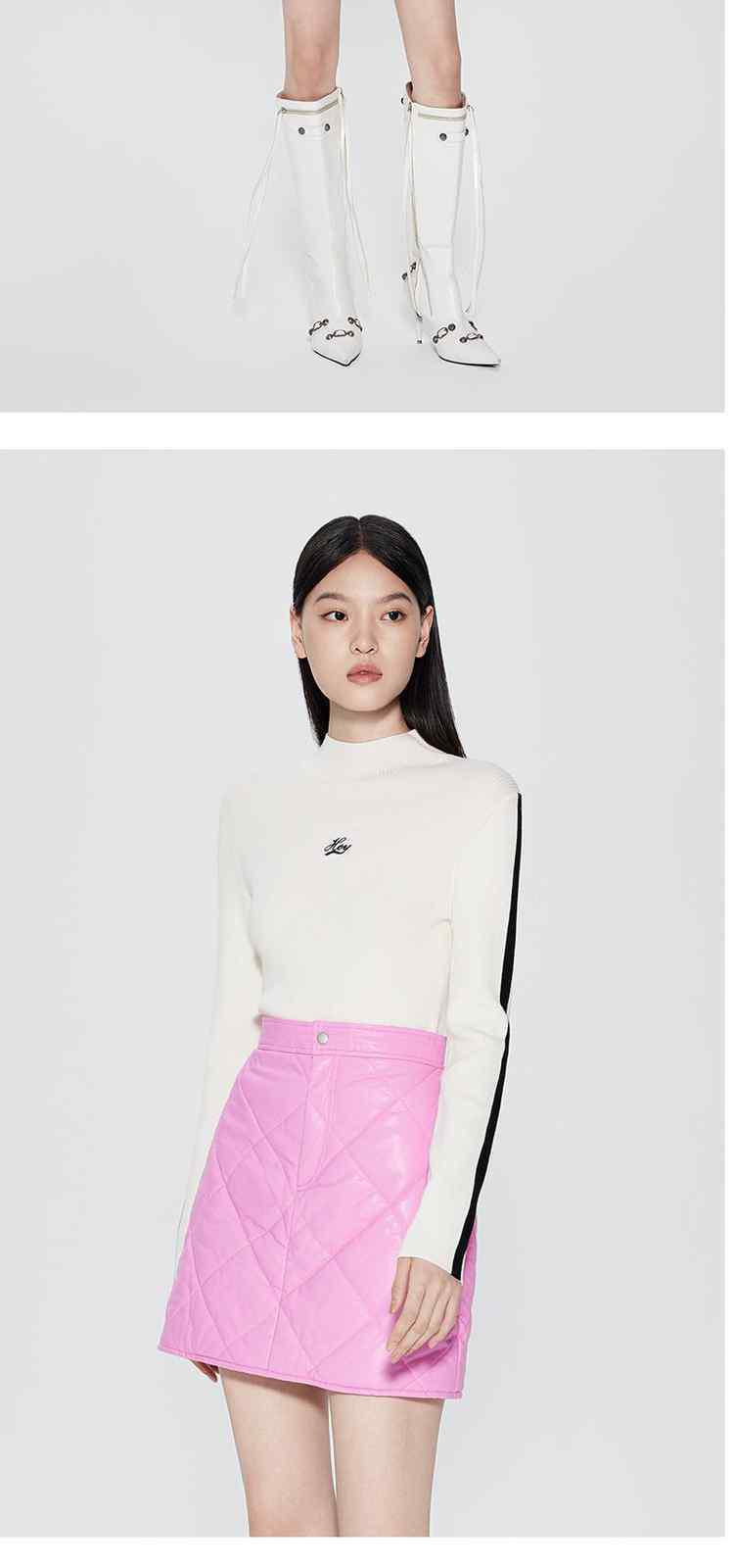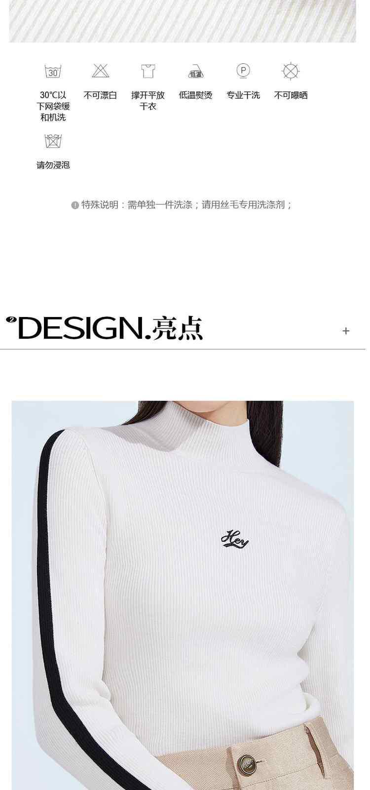 商品名称:春装 撞色烟管领进口可机洗羊毛毛衣女 310863