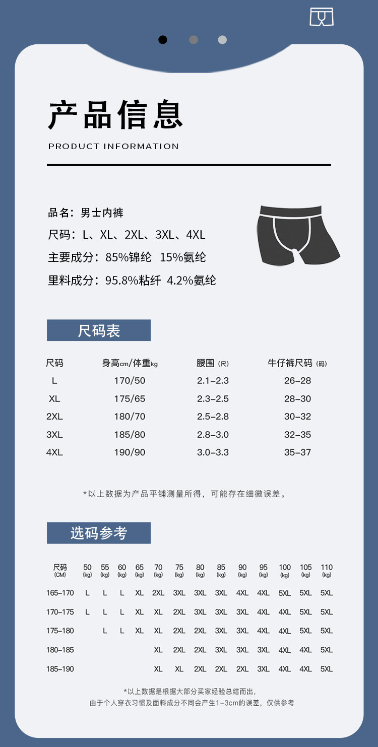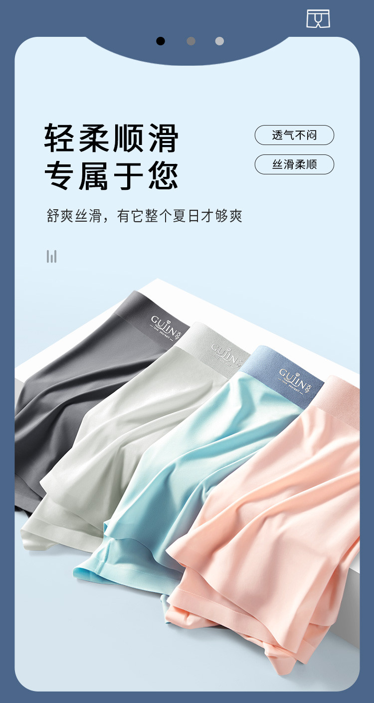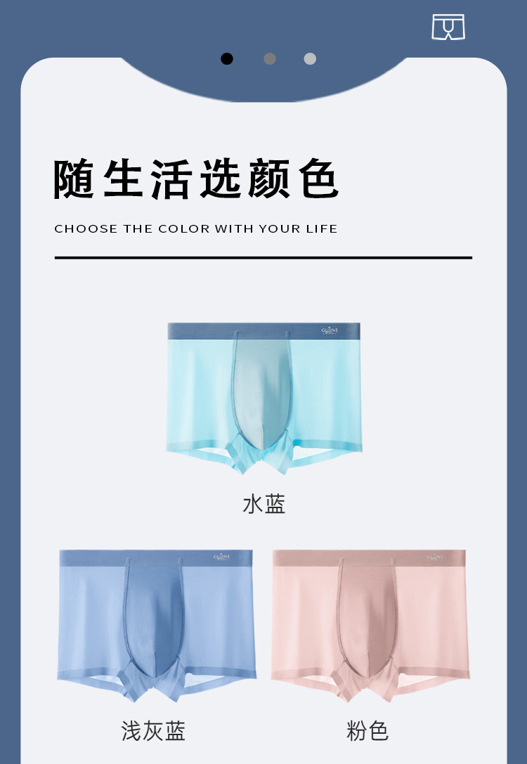 商品名称:[断码出清]3条装冰丝男士内裤四季款无痕裸感平角内裤抑菌底档 638731