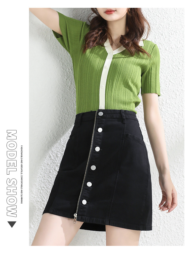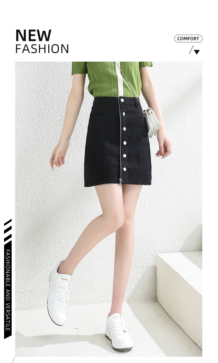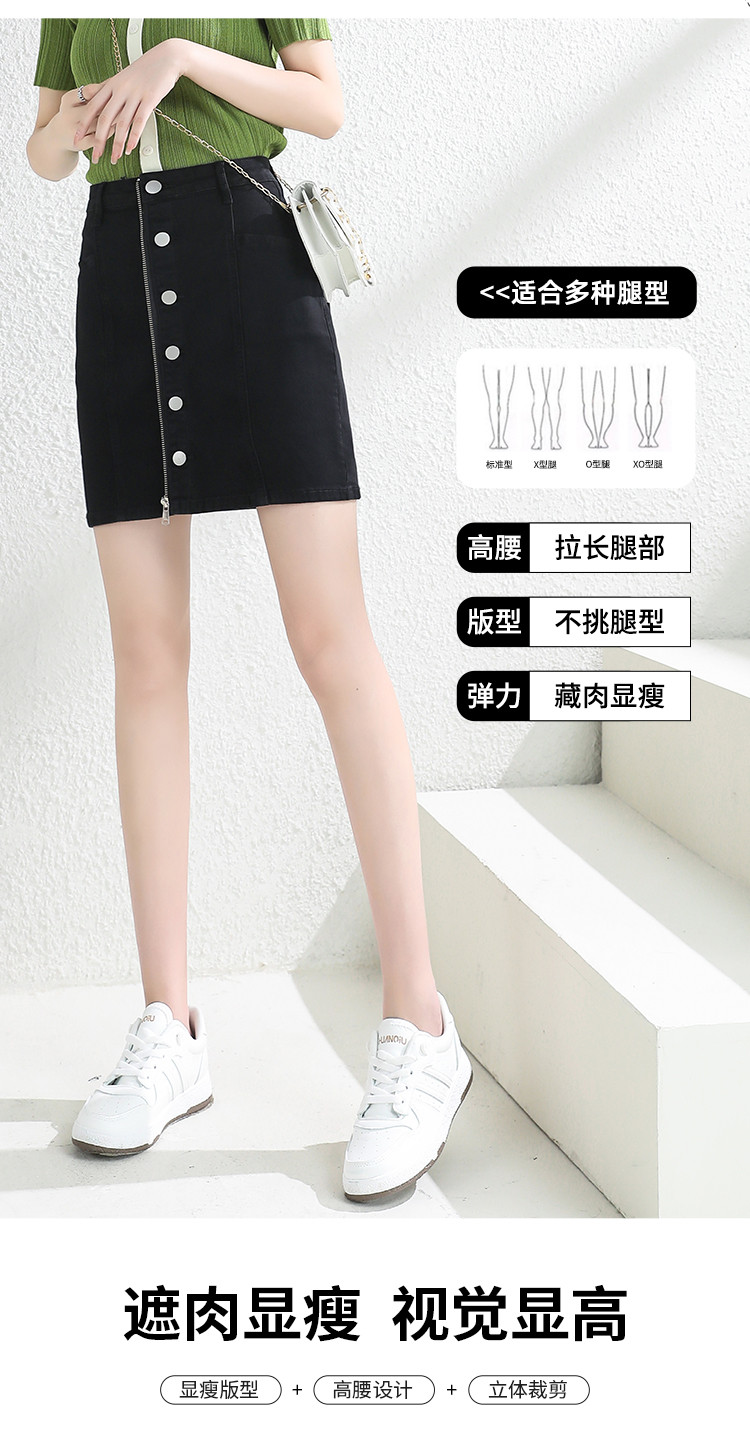 商品名称:【多纽扣设计】牛仔裙女年高腰显瘦休闲弹力A字裙女 326488