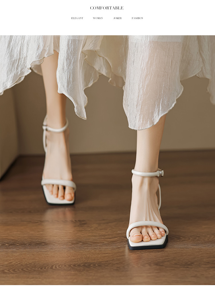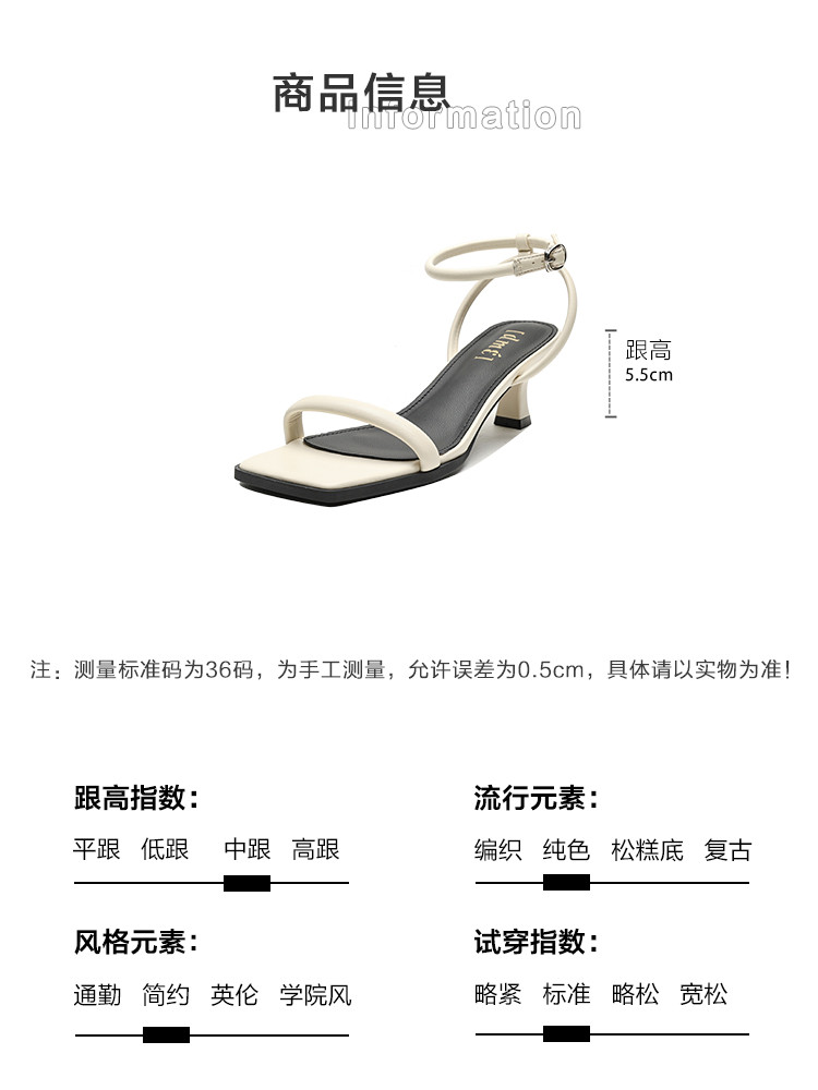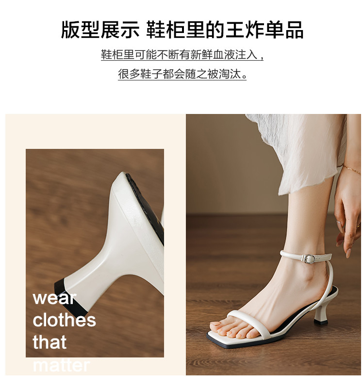 商品名称:夏季优雅简约气质高级感纯色条带酒杯跟一字带女凉鞋 808321