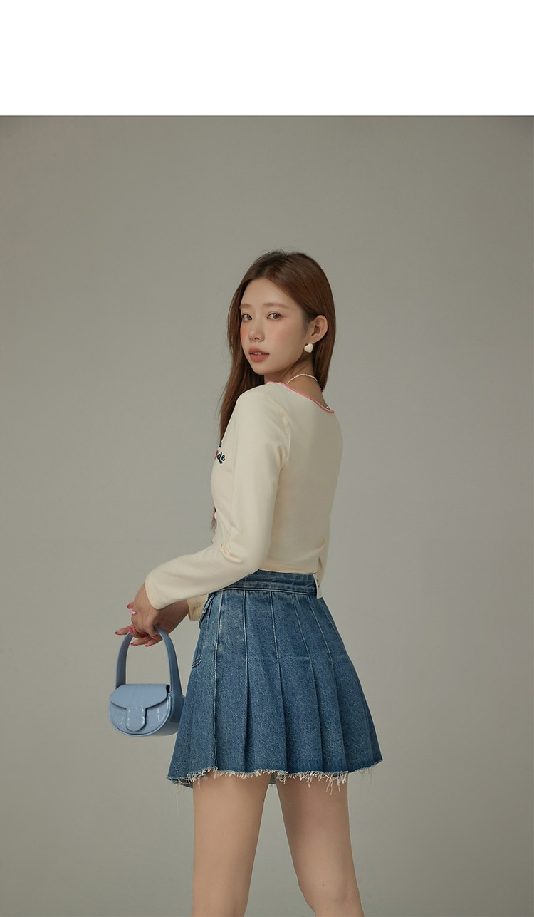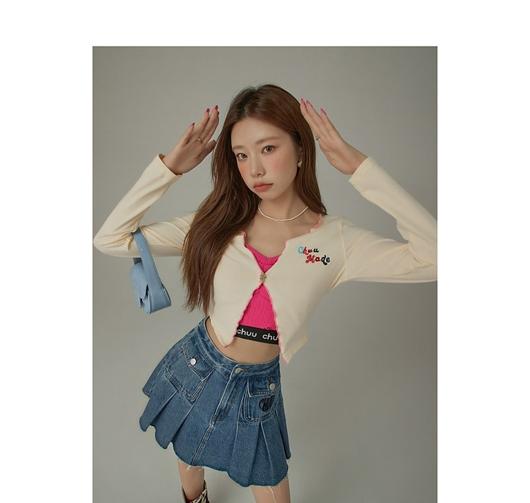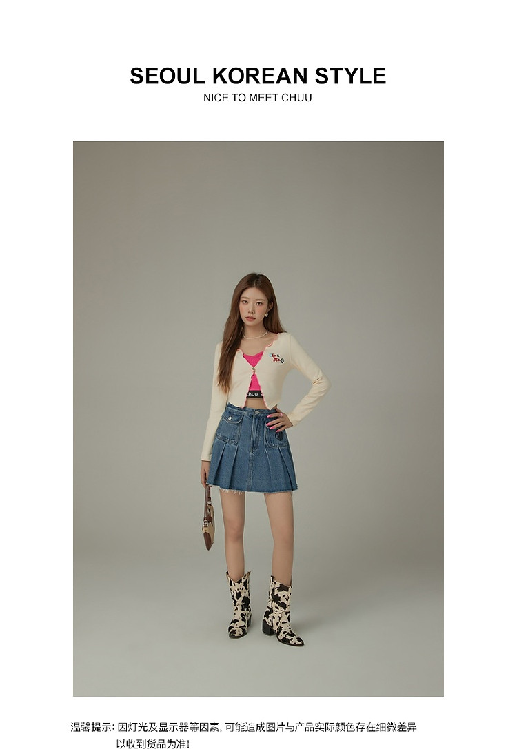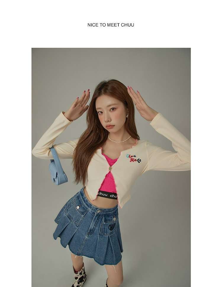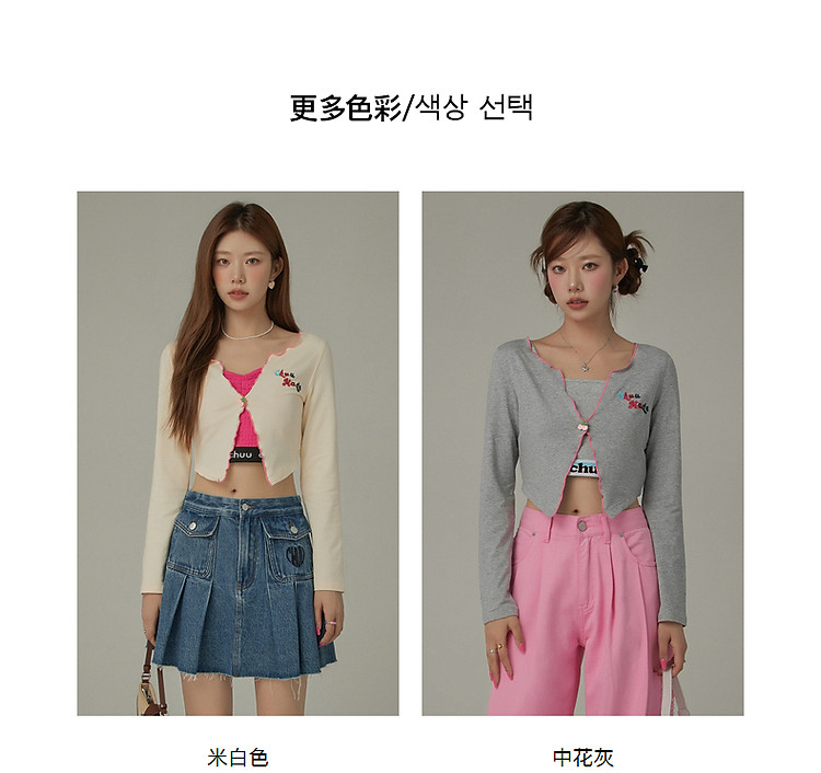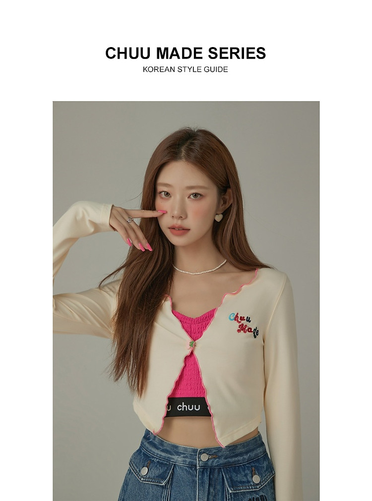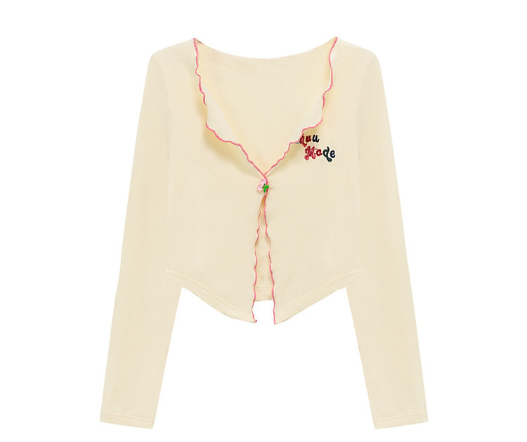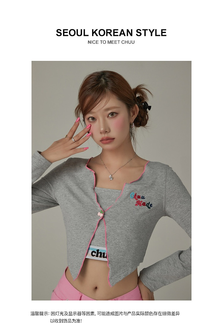 商品名称:CHUU刺绣字母外套女春秋撞色木耳边长袖开衫上衣 364499